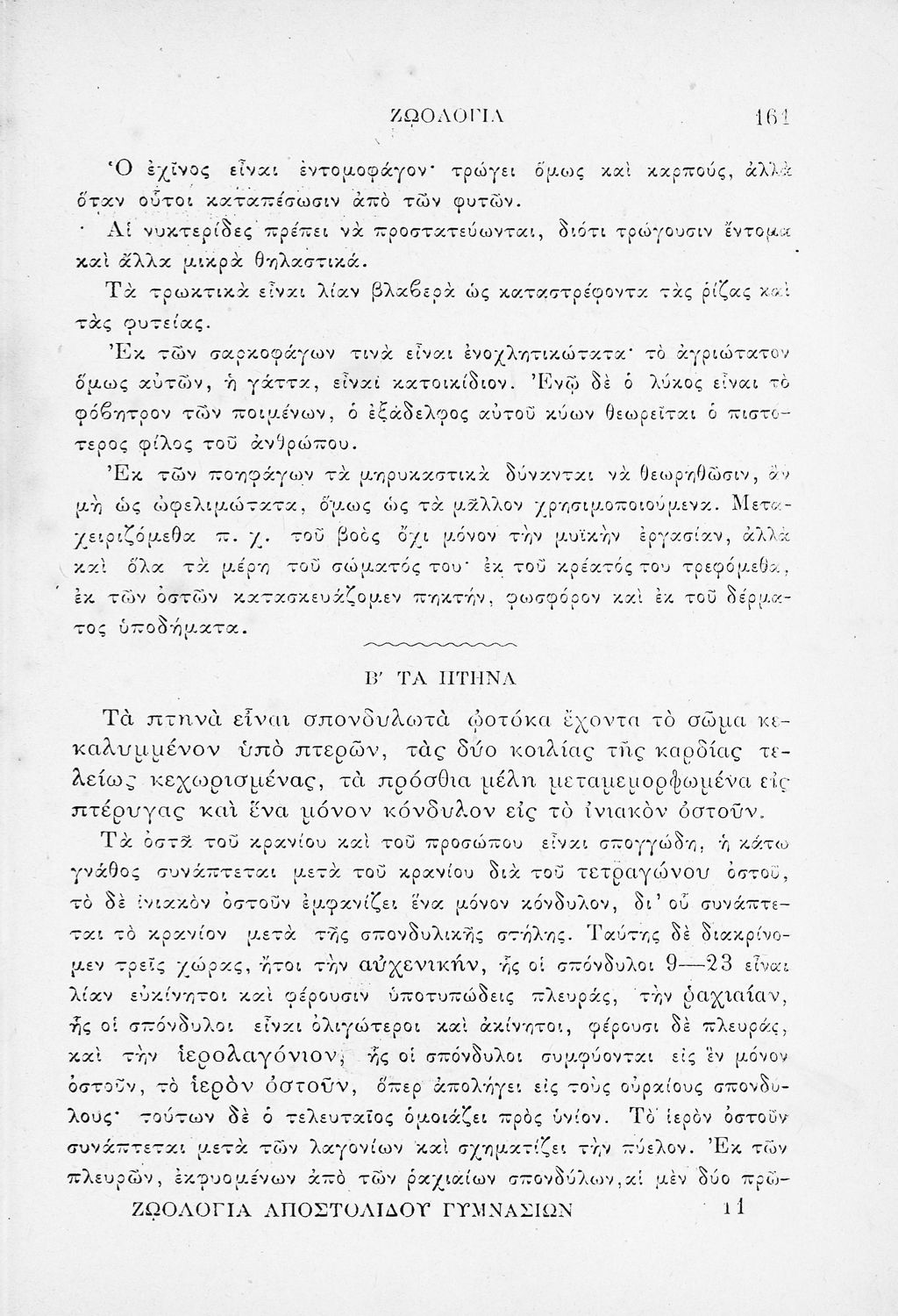 Μάθημα: Ζωολογία