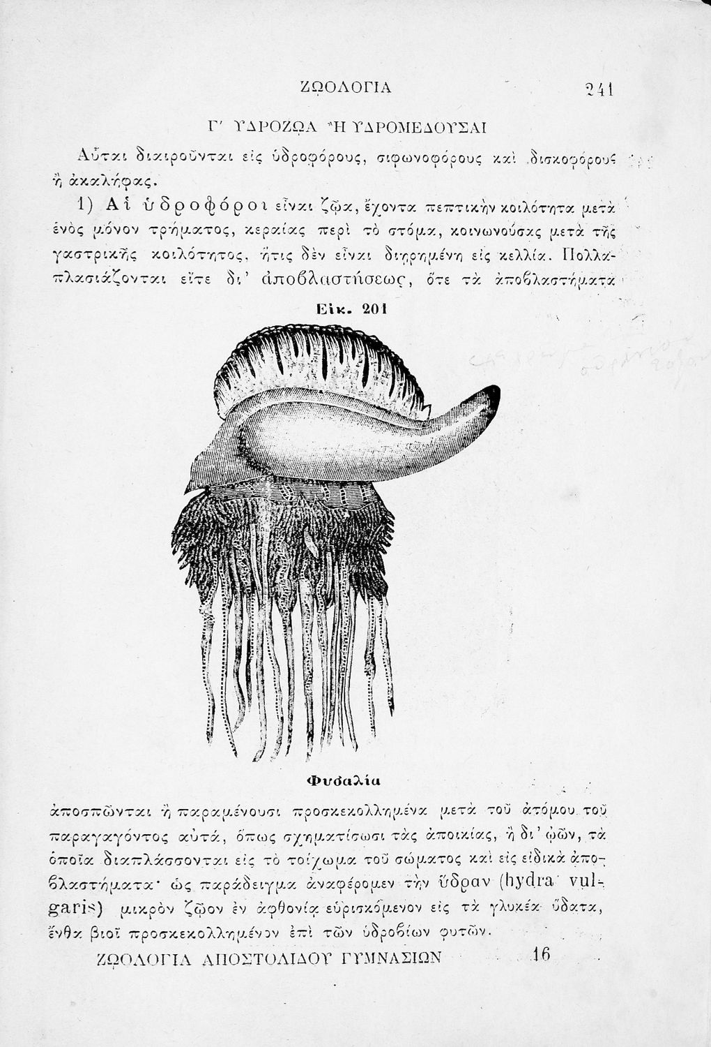 Σχολικό εγχειρίδιο Ζωολογίας για τα Γυμνάσια, τα Διδασκαλεία και τα Παρθεναγωγεία που εστιάζει στην ανθρώπινη φυσιολογία και ανατομία και παρουσιάζει τα διάφορα ζώα ανάλογα με την συνομοταξία στην οποία ...