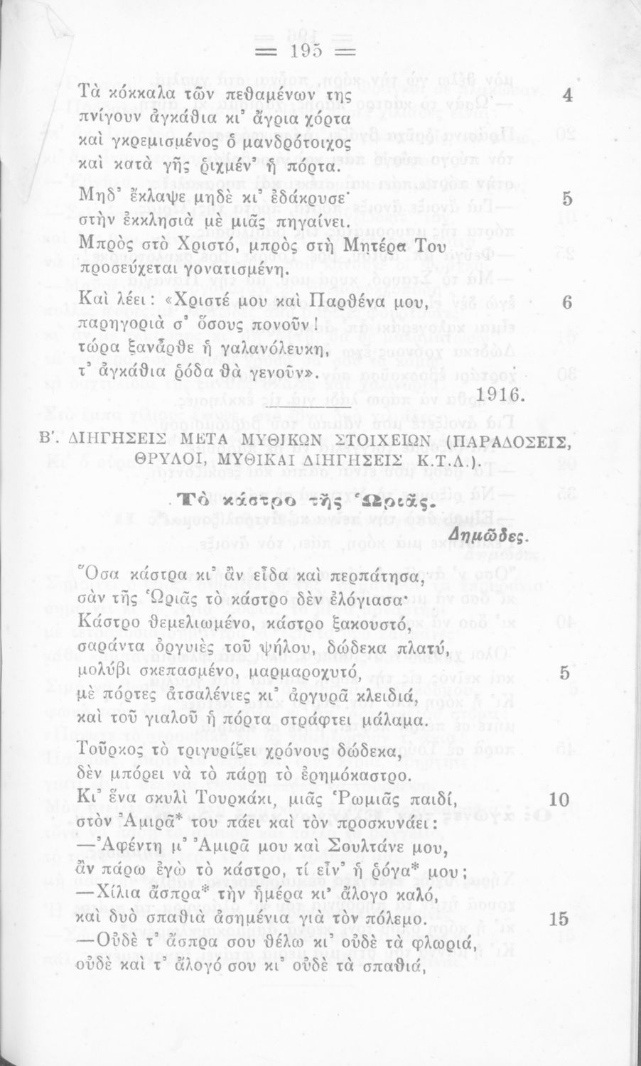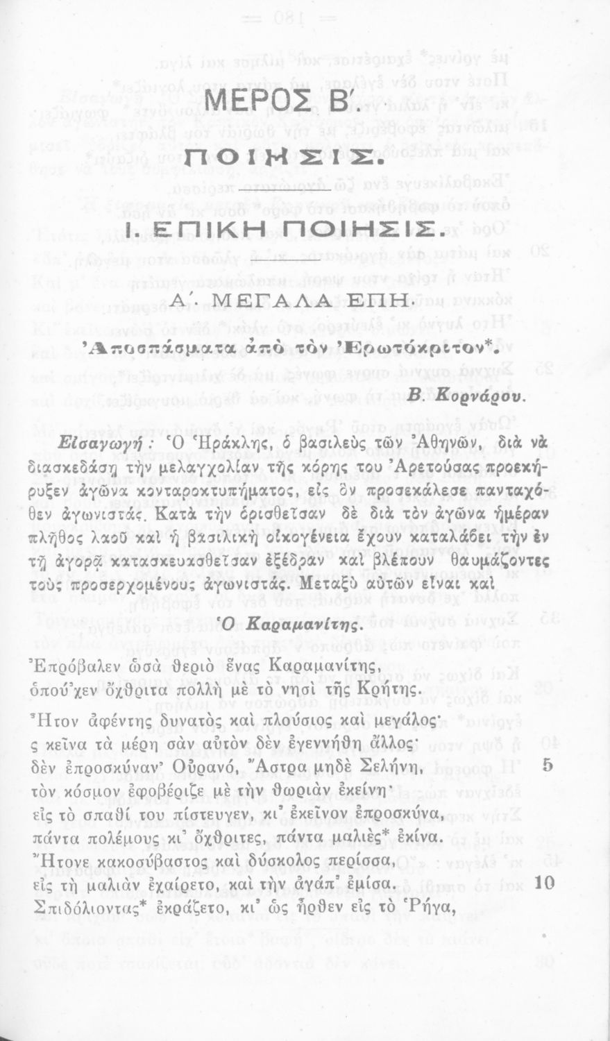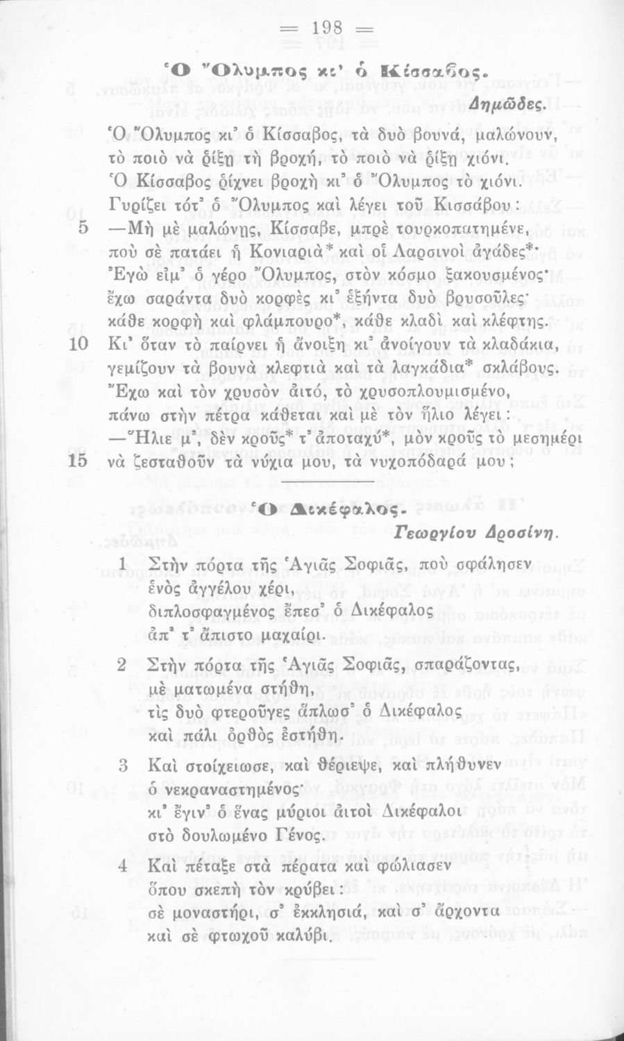 Σχολικό εγχειρίδιο για την Β΄ Γυμνασίου και την Γ΄ Αστικού Θηλέων για το μάθημα των Νέων Ελληνικών. Το εγχειρίδιο αποτελείται από κείμενα πεζού λόγου, επικολυρικά ποιήματα, ωδές, ηθογραφικά διηγήματα, ρητορικά
