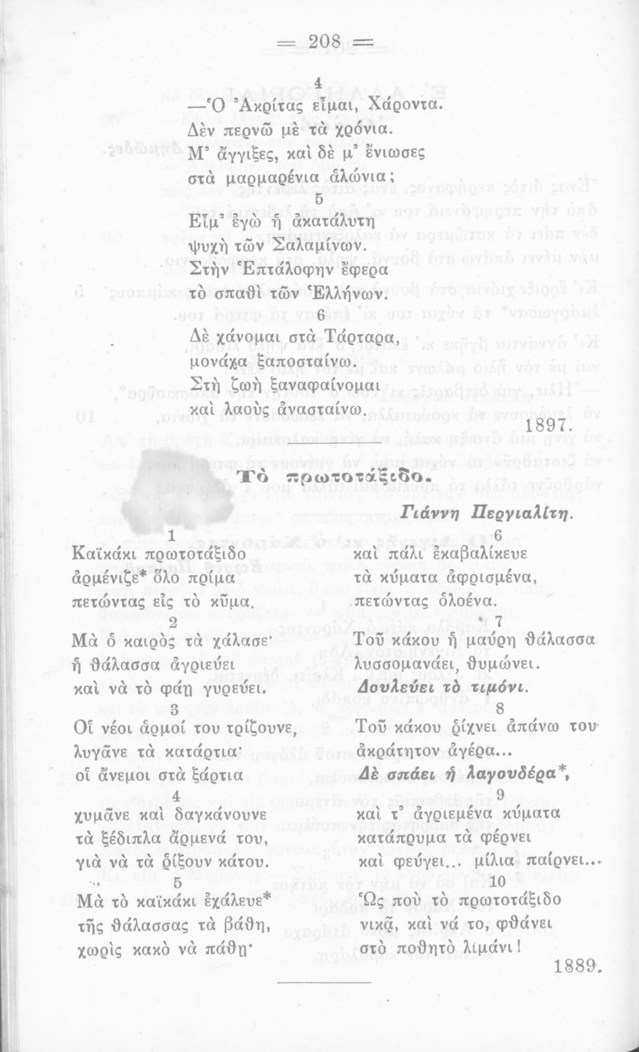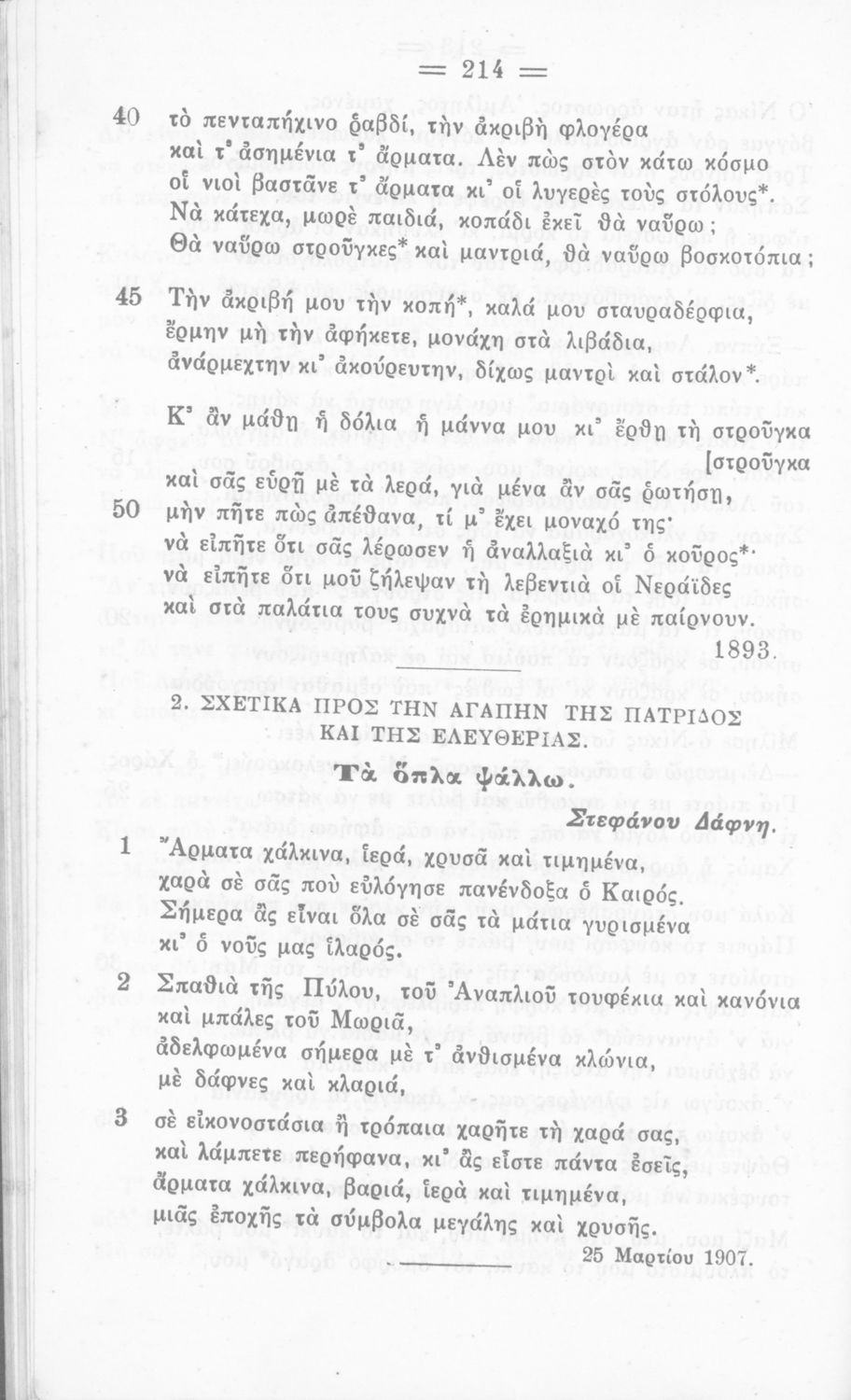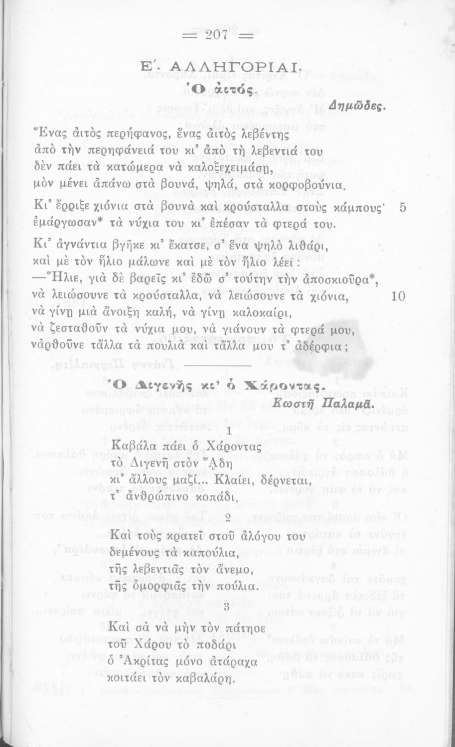 Σχολικό εγχειρίδιο Νέων Ελληνικών Β΄ Γυμνασίου που περιλαμβάνει ποιήματα και πεζά Ελλήνων συγγραφέων και δημοτικά τραγούδια εμπνευσμένα από την σύγχρονη ελληνική ιστορία, τη βυζαντινή ιστορία, την ελληνική φύση και τη ζωή στην ύπαιθρο, την οικογενειακή και κοινωνική ζωή και τη θρησκευτική παράδοση. Περιέχει και παράρτημα με βιογραφίες των συγγραφέων και λεξιλόγιο.
