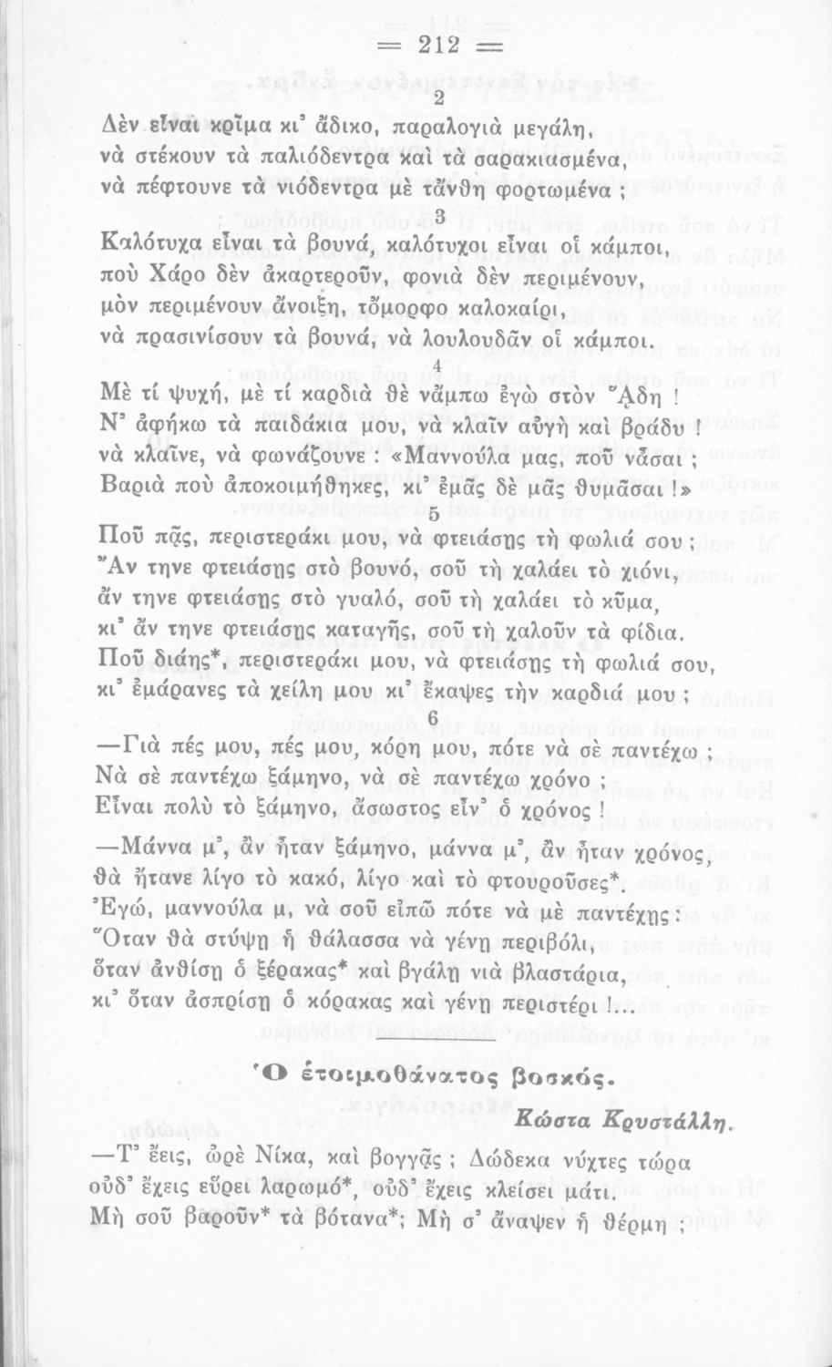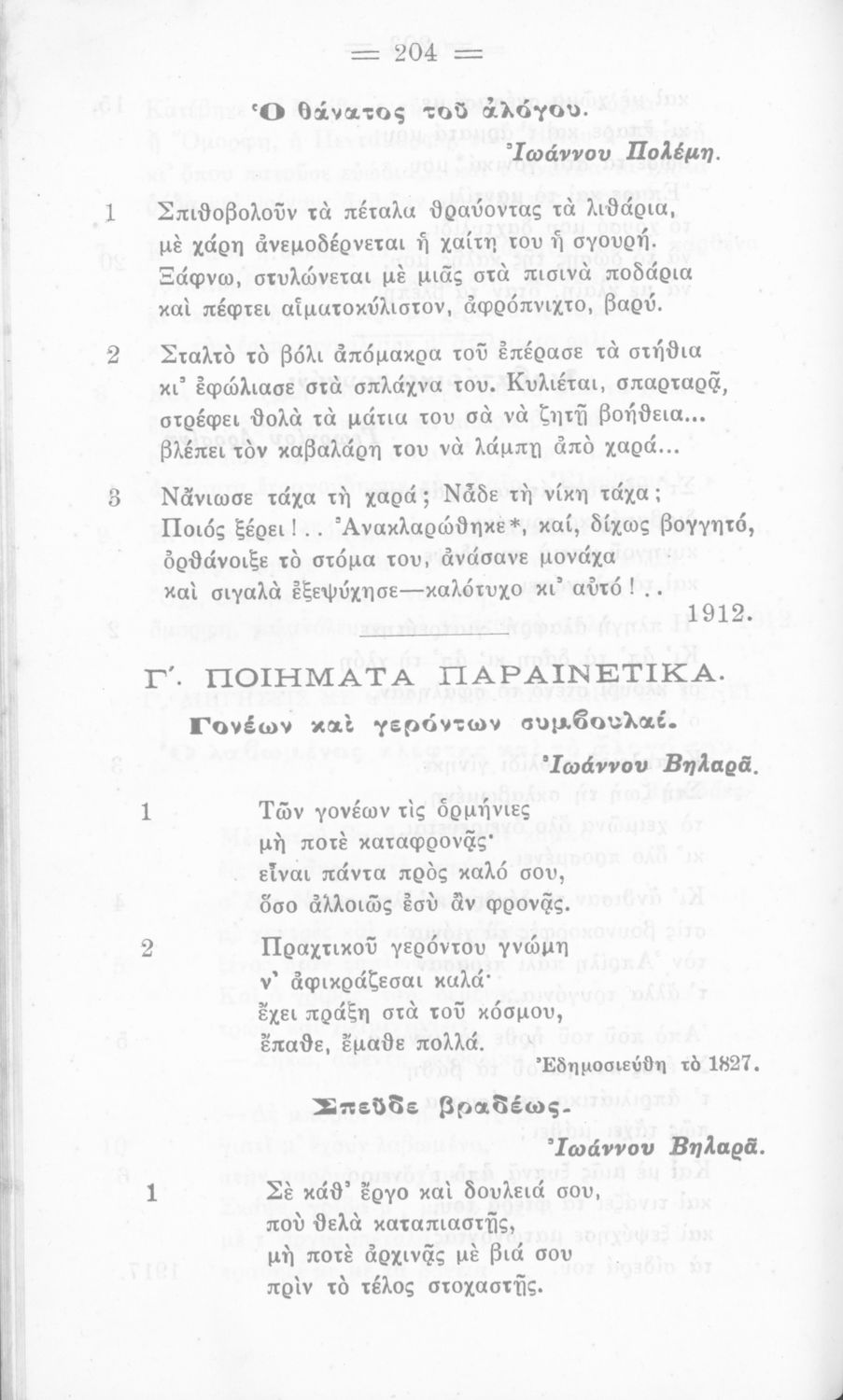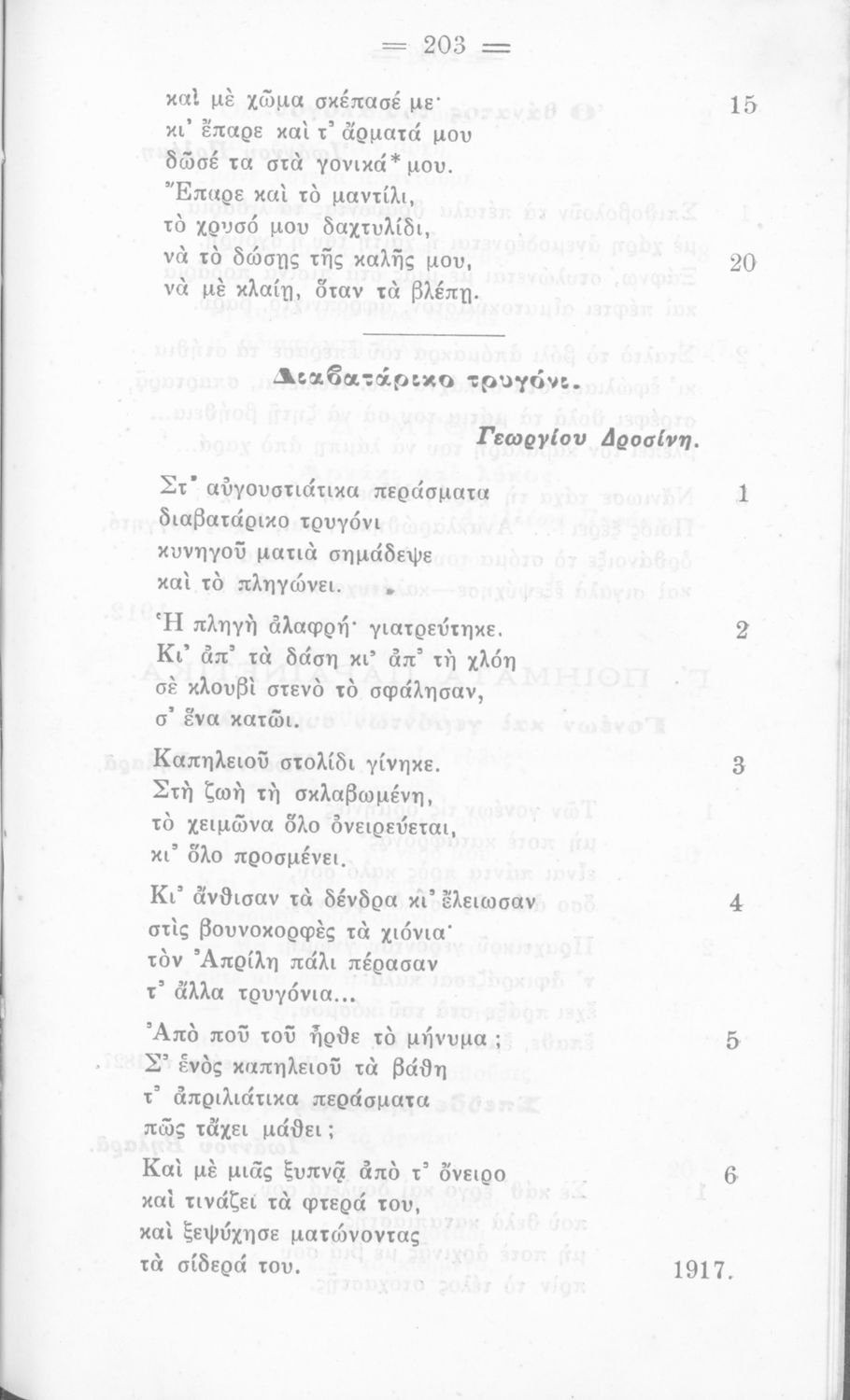 Σχολικό εγχειρίδιο Νέων Ελληνικών Β΄ Γυμνασίου που περιλαμβάνει ποιήματα και πεζά Ελλήνων συγγραφέων και δημοτικά τραγούδια εμπνευσμένα από την σύγχρονη ελληνική ιστορία, τη βυζαντινή ιστορία, την ελληνική φύση και τη ζωή στην ύπαιθρο, την οικογενειακή και κοινωνική ζωή και τη θρησκευτική παράδοση. Περιέχει και παράρτημα με βιογραφίες των συγγραφέων και λεξιλόγιο.