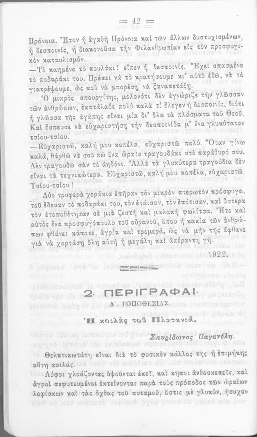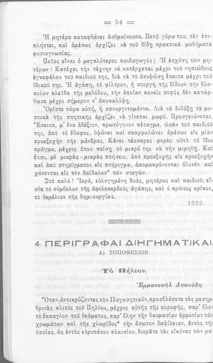 Σχολικό εγχειρίδιο για την Β΄ Γυμνασίου και την Γ΄ Αστικού Θηλέων για το μάθημα των Νέων Ελληνικών. Το εγχειρίδιο αποτελείται από κείμενα πεζού λόγου, επικολυρικά ποιήματα, ωδές, ηθογραφικά διηγήματα, ρητορικά