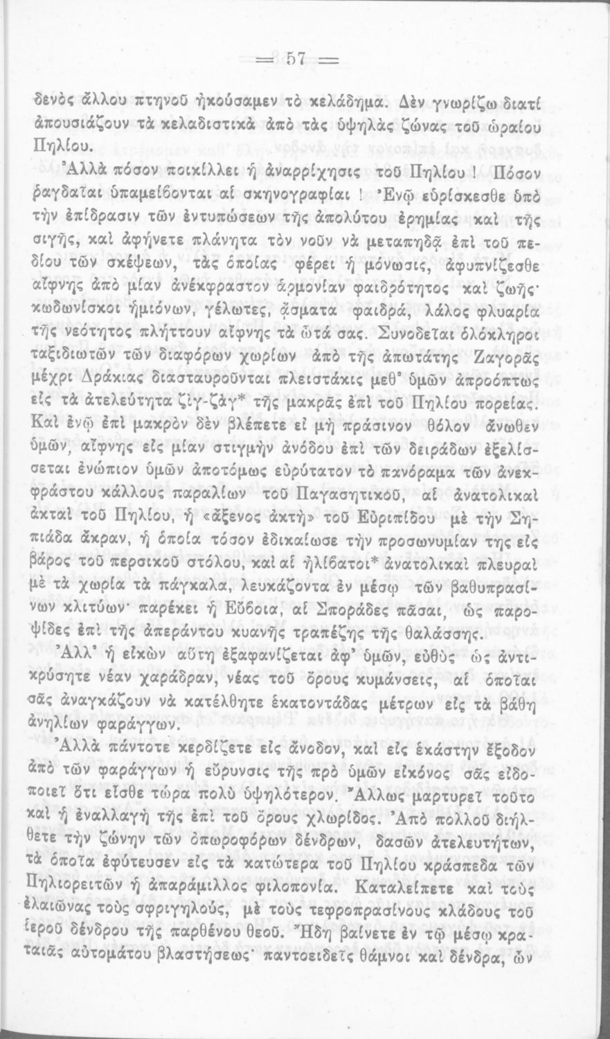 Σχολικό εγχειρίδιο για την Β΄ Γυμνασίου και την Γ΄ Αστικού Θηλέων για το μάθημα των Νέων Ελληνικών. Το εγχειρίδιο αποτελείται από κείμενα πεζού λόγου, επικολυρικά ποιήματα, ωδές, ηθογραφικά διηγήματα, ρητορικά