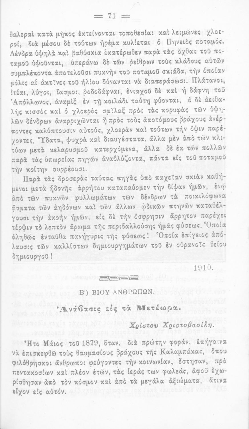 Σχολικό εγχειρίδιο Νέων Ελληνικών Β΄ Γυμνασίου που περιλαμβάνει ποιήματα και πεζά Ελλήνων συγγραφέων και δημοτικά τραγούδια εμπνευσμένα από την σύγχρονη ελληνική ιστορία, τη βυζαντινή ιστορία, την ελληνική φύση και τη ζωή στην ύπαιθρο, την οικογενειακή και κοινωνική ζωή και τη θρησκευτική παράδοση. Περιέχει και παράρτημα με βιογραφίες των συγγραφέων και λεξιλόγιο.