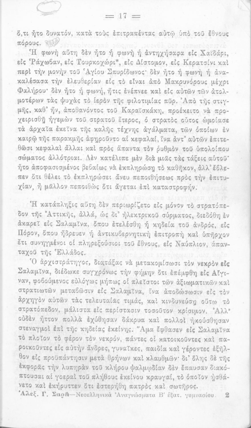Κωδικός αναγνώρισης: 01-17700 Τίτλος: Νεοελληνικά αναγνώσματα δια τους μαθητάς της Β΄ τάξεως των Εξαταξίων Γυμνασίων και Ημιγυμνασίων και της αντιστοίχου τάξεως των λοιπών σχολείων της Μέσης Εκπαιδεύσεως. Συγγραφέας: Αλέξανδρος Γ. Σαρής Μέγεθος και υπόστρωμα: Σχολικό εγχειρίδιο, 20εκ., σκληρό εξώφυλλο, 288 σελίδες. Εικόνες (ασπρόμαυρες), σκίτσα (ασπρόμαυρα). |