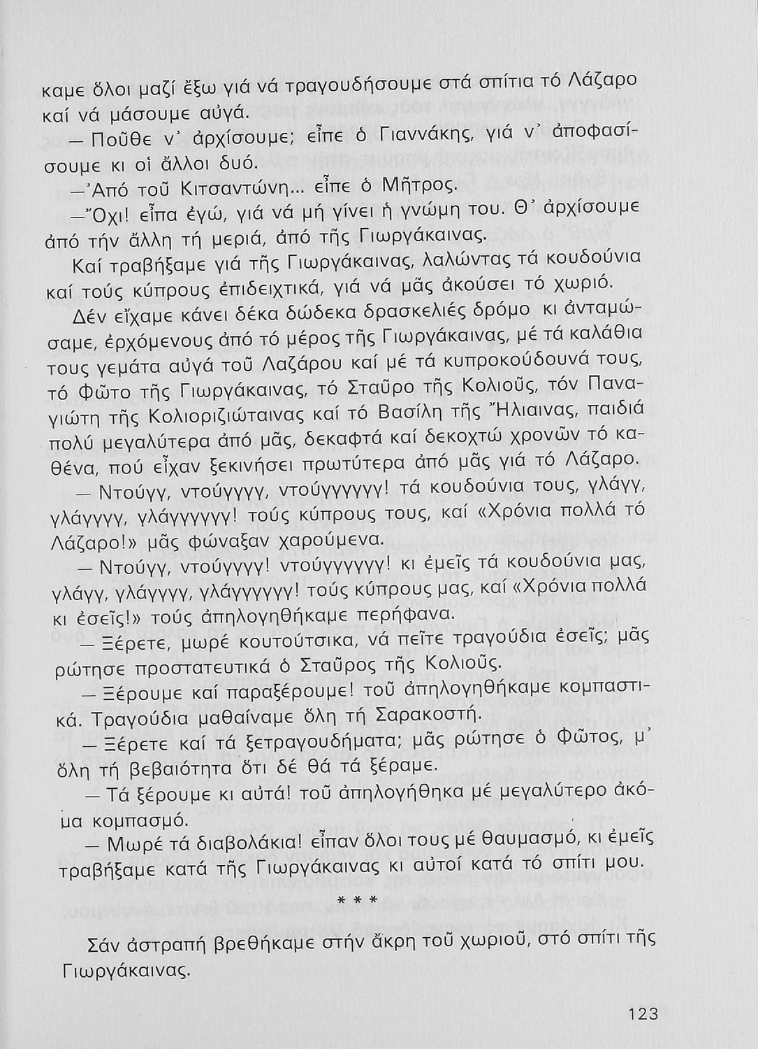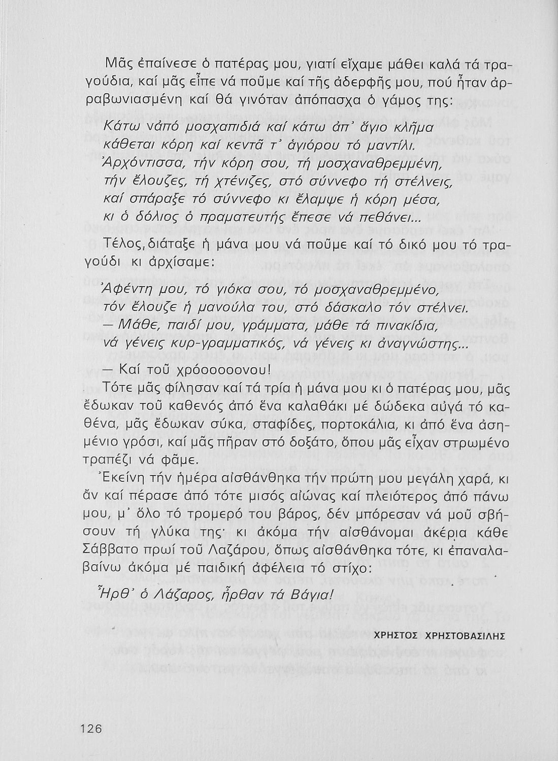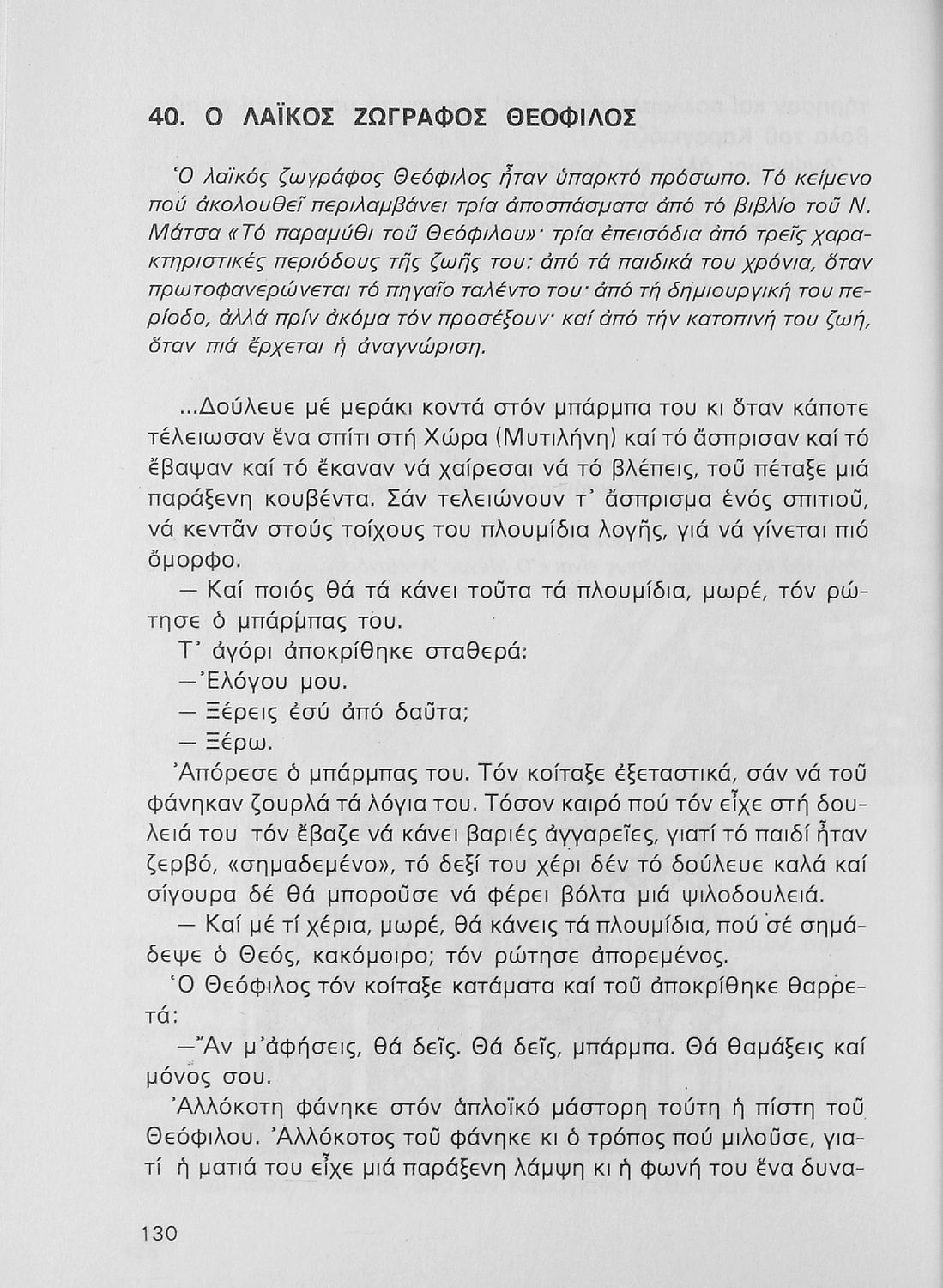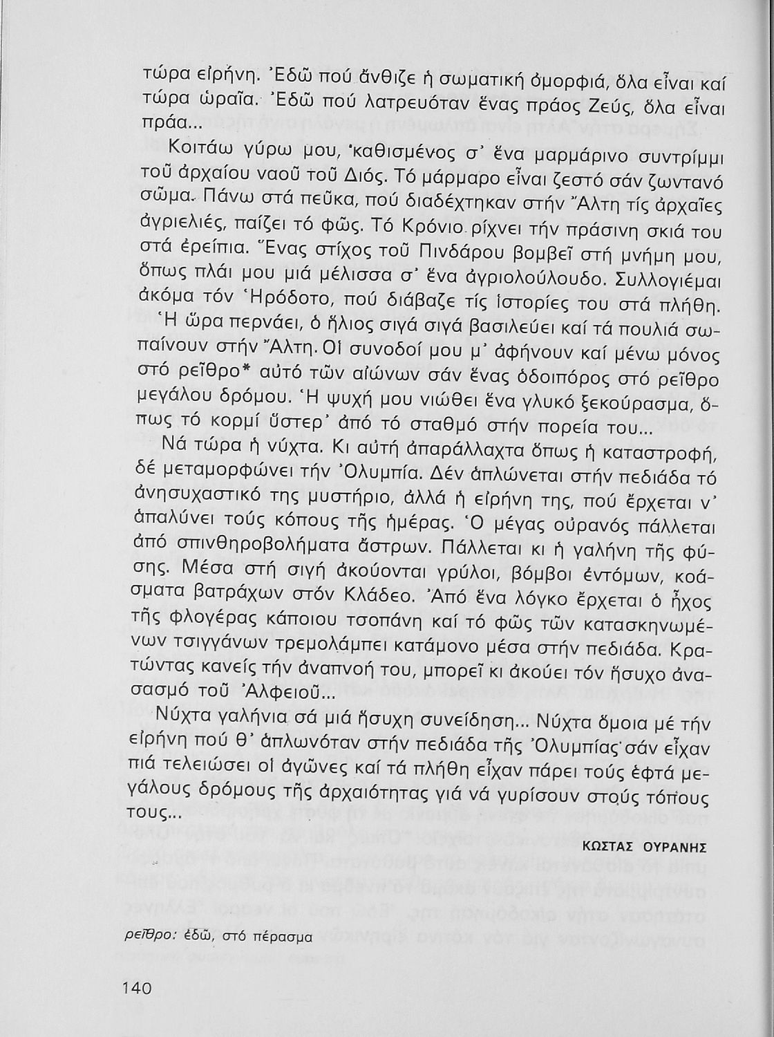 Αναγνωστικό ΣΤ΄ Δημοτικού που περιέχει πεζά και ποιήματα εμπνευσμένα από την κοινωνική, θρησκευτική και εθνική ζωή, την πολιτιστική κληρονομιά και τα ολυμπιακά ιδεώδη καθώς και από τις ασχολίες των ανθρώπων και τα προβλήματά τους.