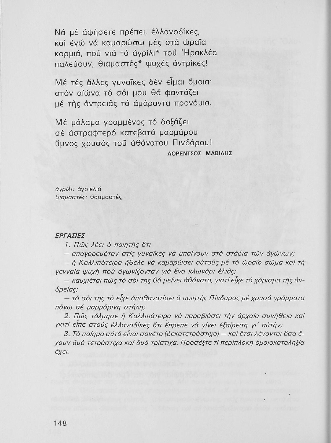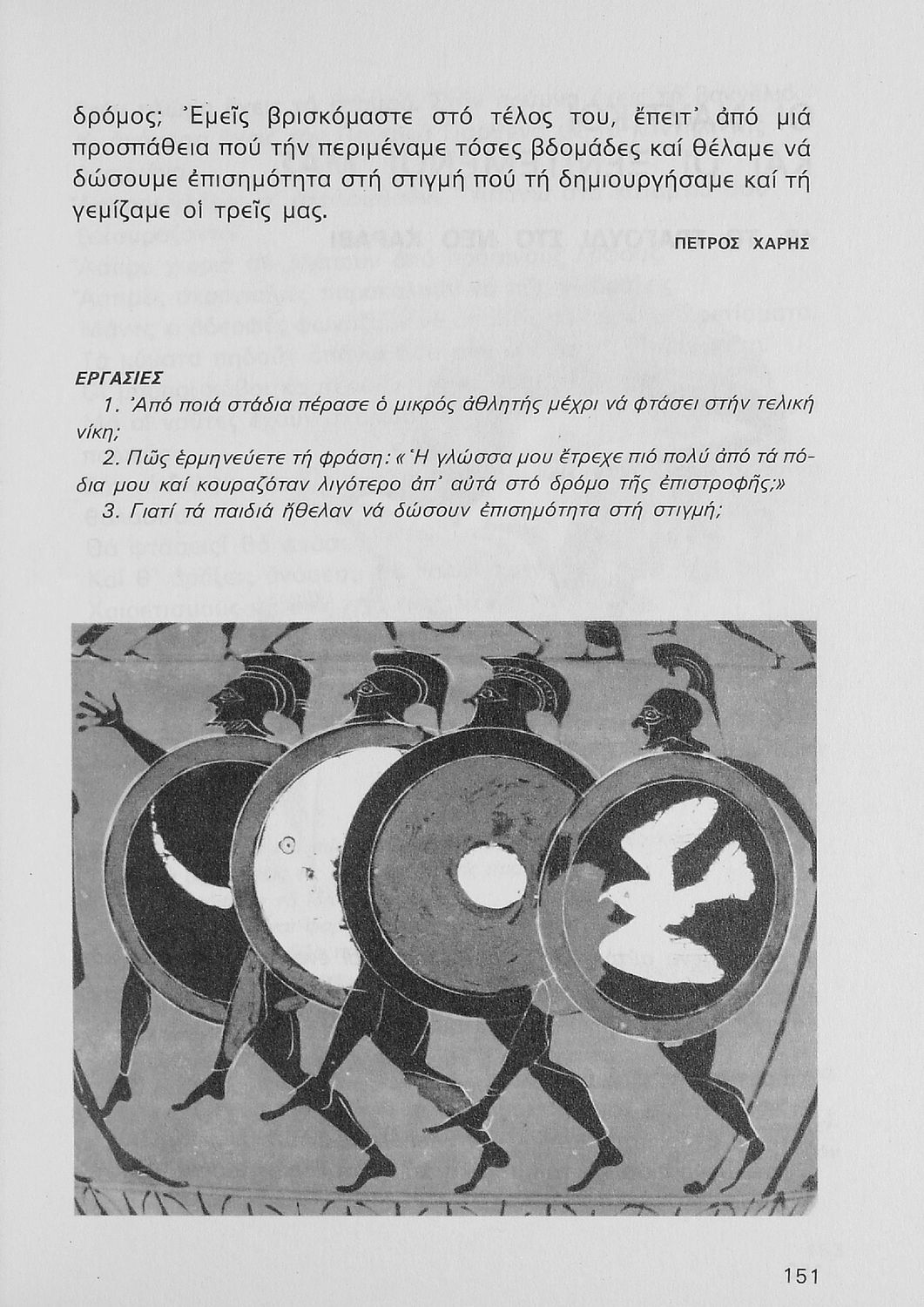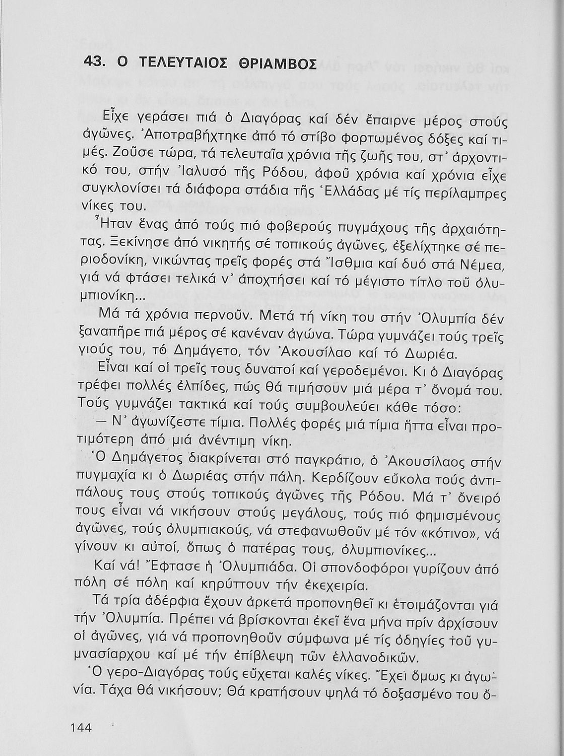Αναγνωστικό ΣΤ΄ Δημοτικού που περιέχει πεζά και ποιήματα εμπνευσμένα από την κοινωνική, θρησκευτική και εθνική ζωή, την πολιτιστική κληρονομιά και τα ολυμπιακά ιδεώδη καθώς και από τις ασχολίες των ανθρώπων και τα προβλήματά τους.