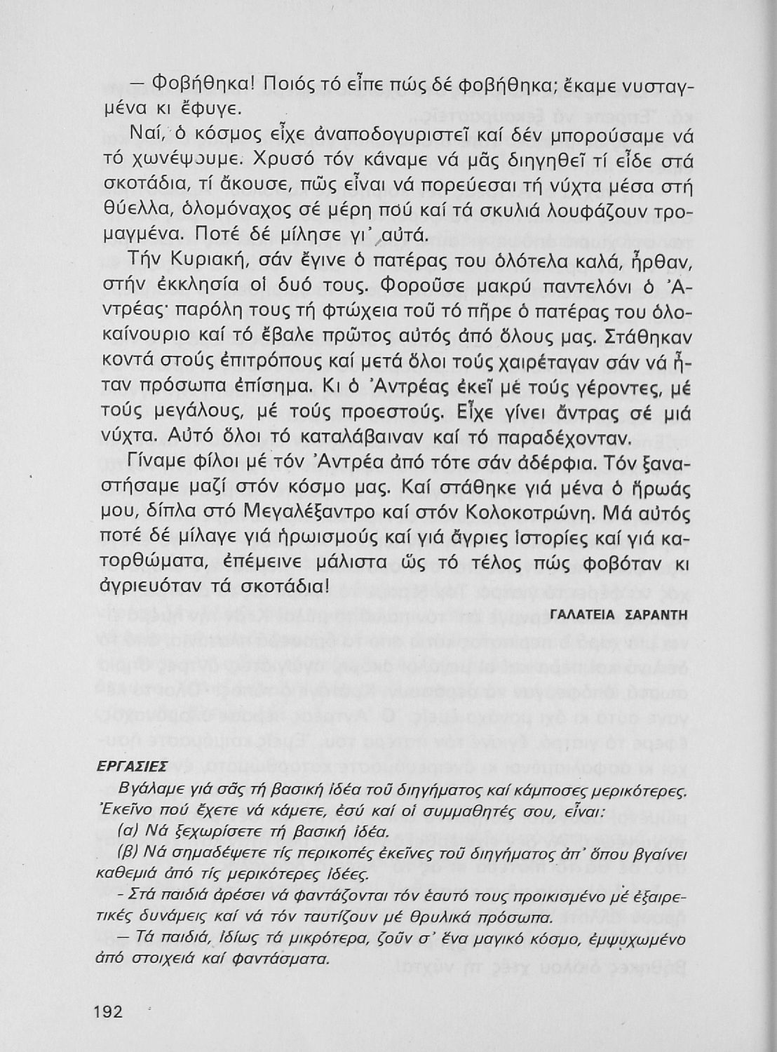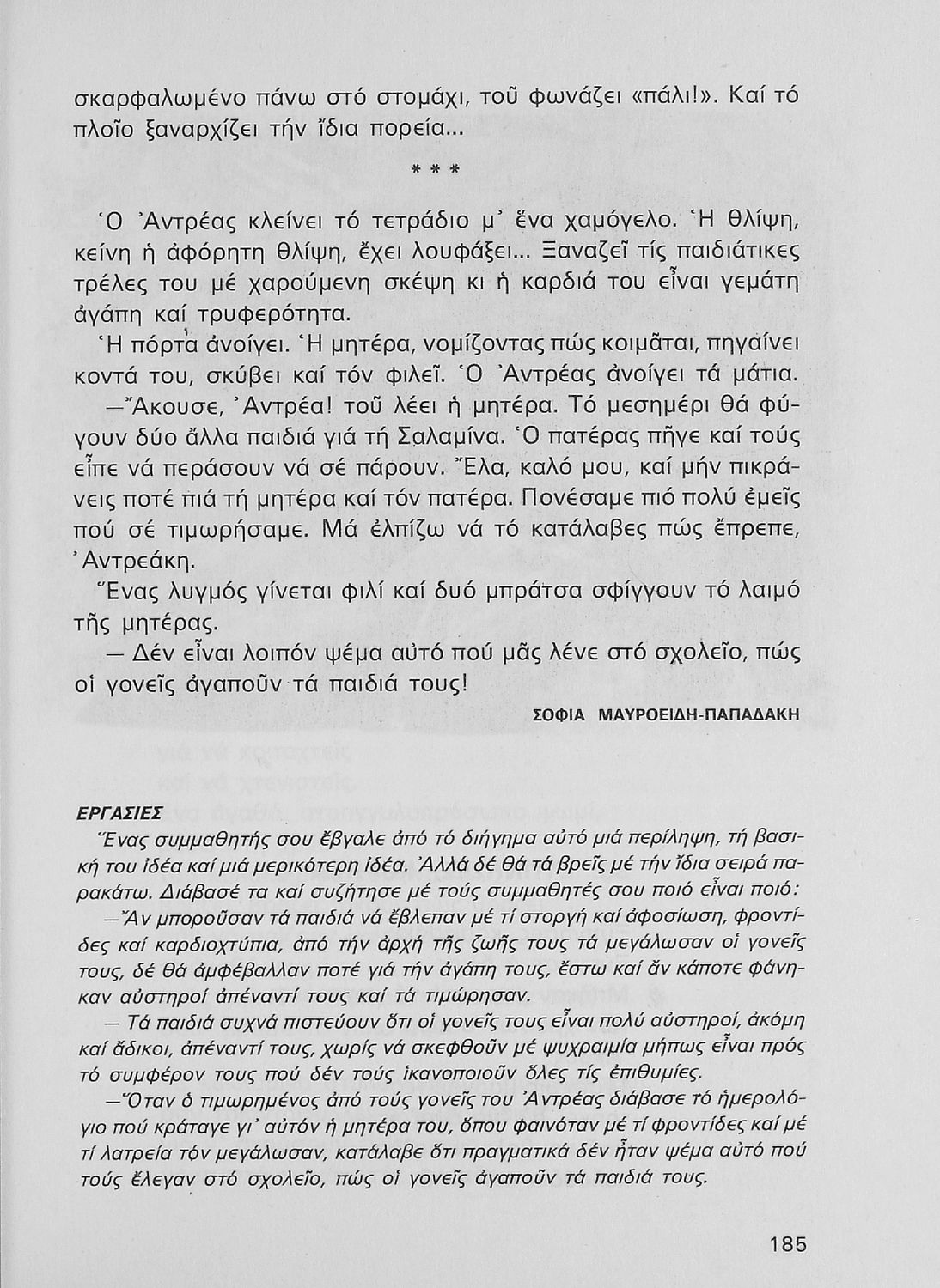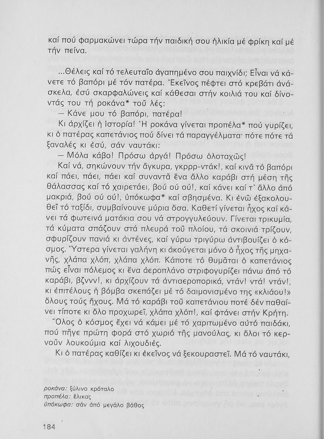 Αναγνωστικό ΣΤ΄ Δημοτικού που περιέχει πεζά και ποιήματα εμπνευσμένα από την κοινωνική, θρησκευτική και εθνική ζωή, την πολιτιστική κληρονομιά και τα ολυμπιακά ιδεώδη καθώς και από τις ασχολίες των ανθρώπων και τα προβλήματά τους.