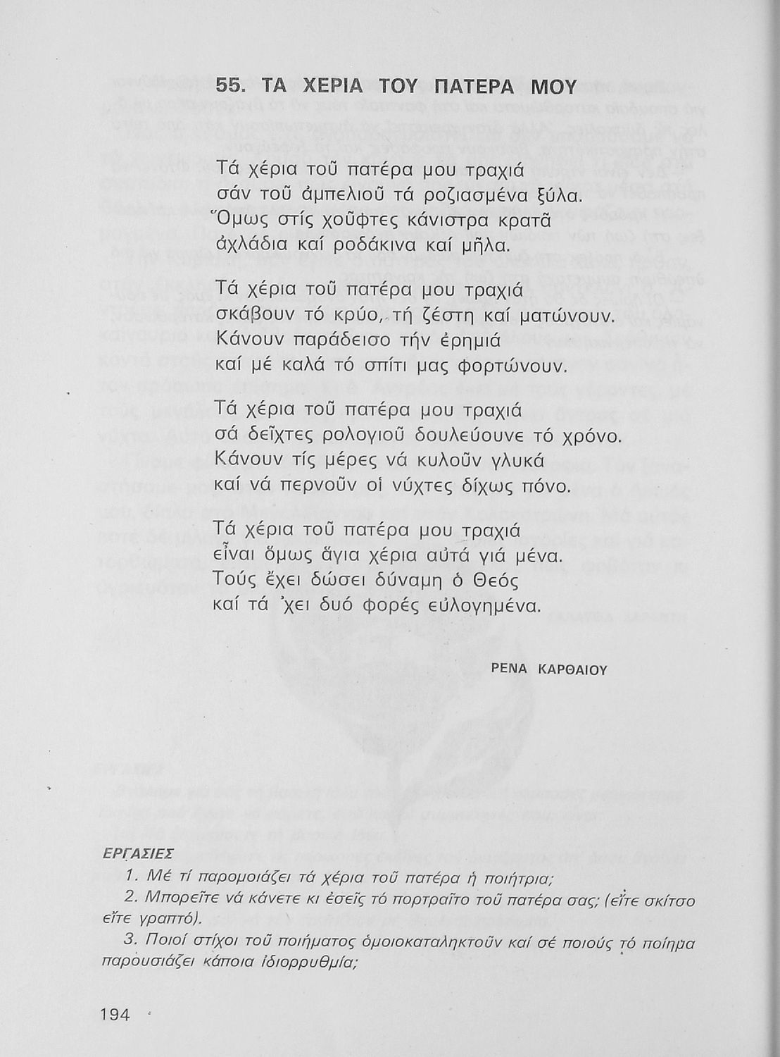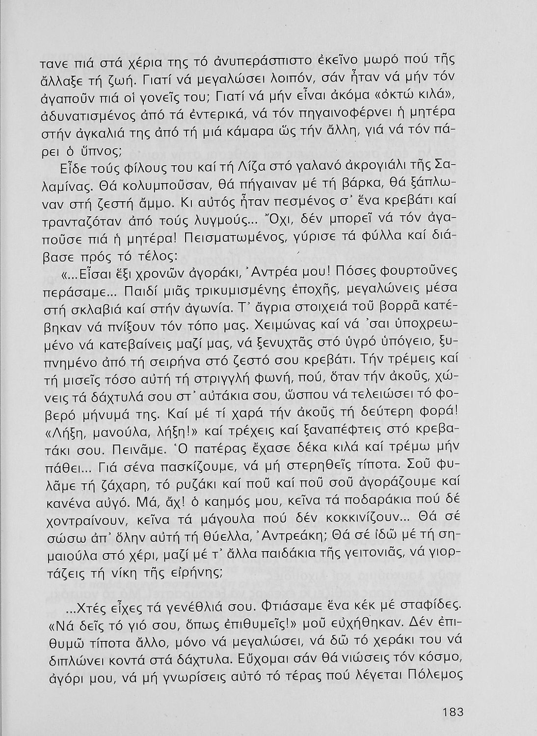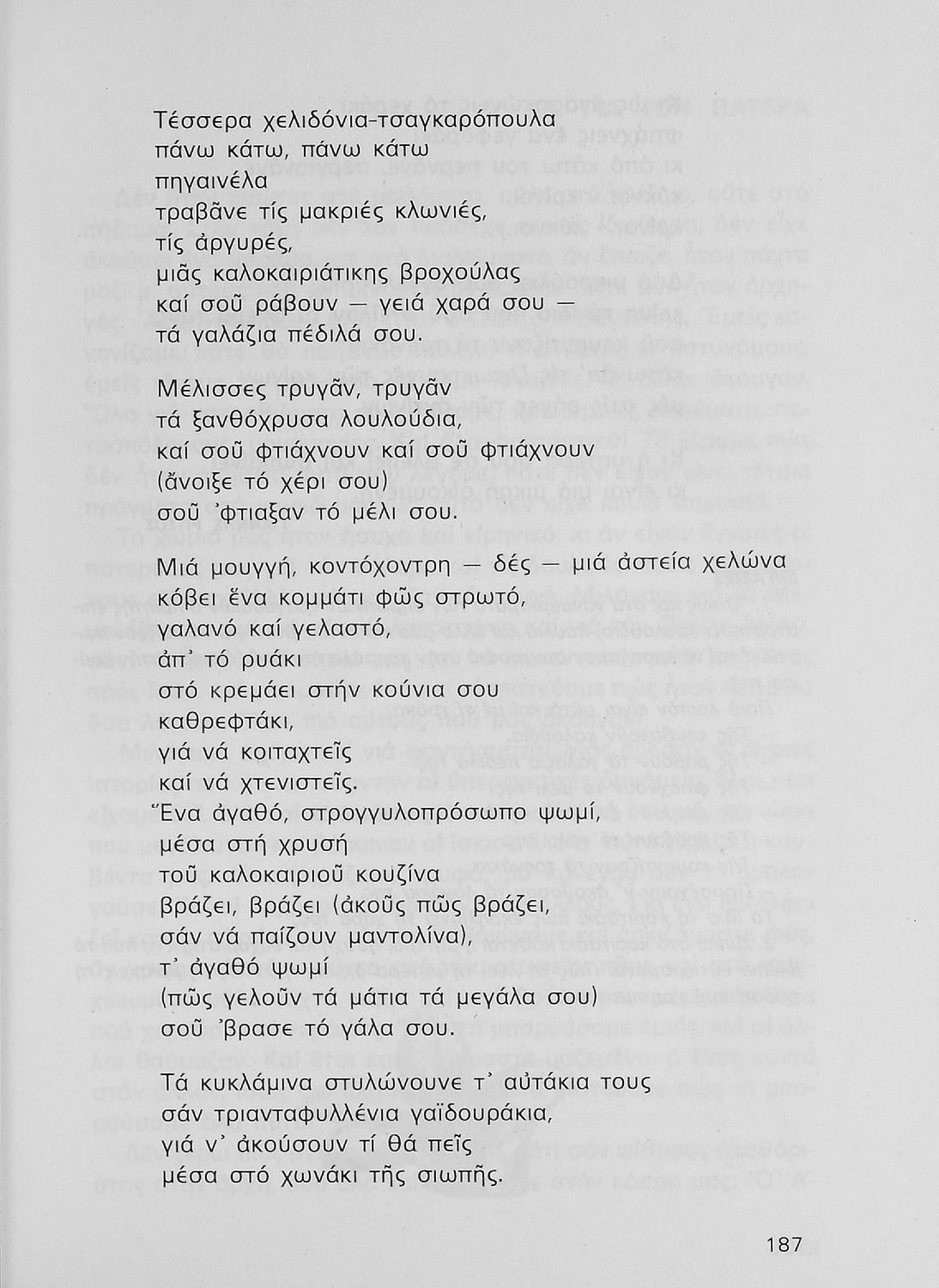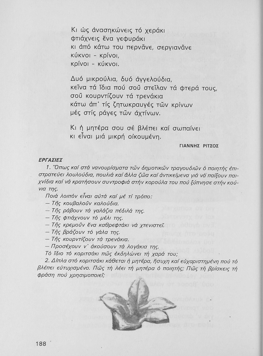 Αναγνωστικό ΣΤ΄ Δημοτικού που περιέχει πεζά και ποιήματα εμπνευσμένα από την κοινωνική, θρησκευτική και εθνική ζωή, την πολιτιστική κληρονομιά και τα ολυμπιακά ιδεώδη καθώς και από τις ασχολίες των ανθρώπων και τα προβλήματά τους.