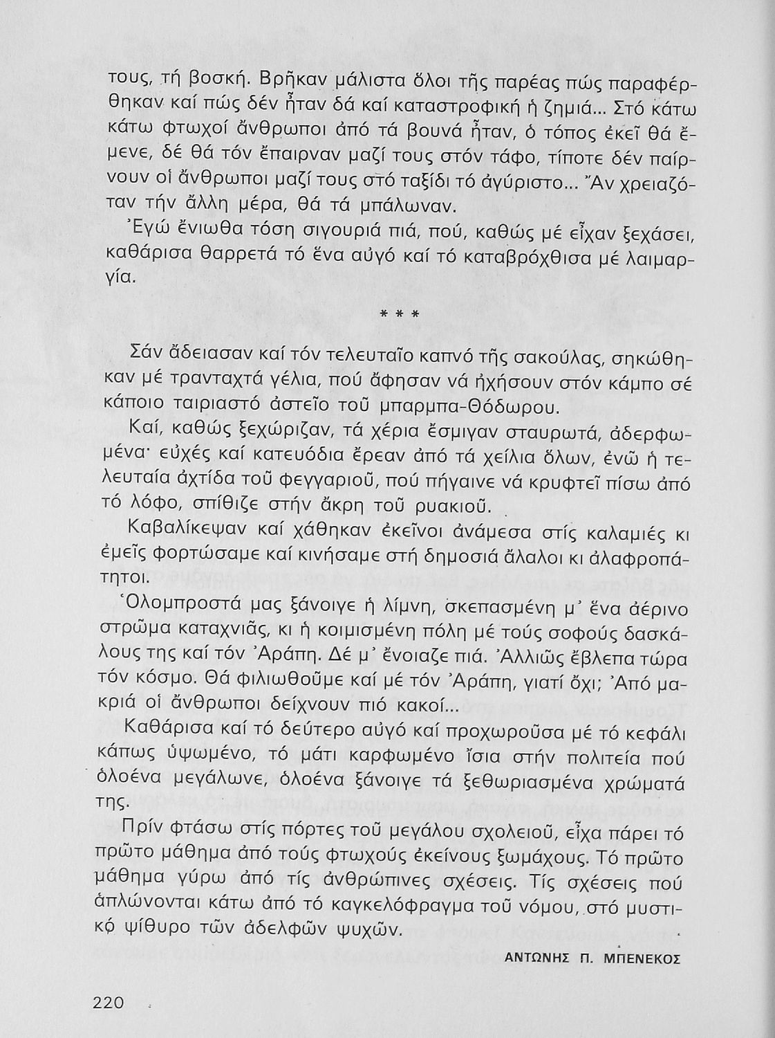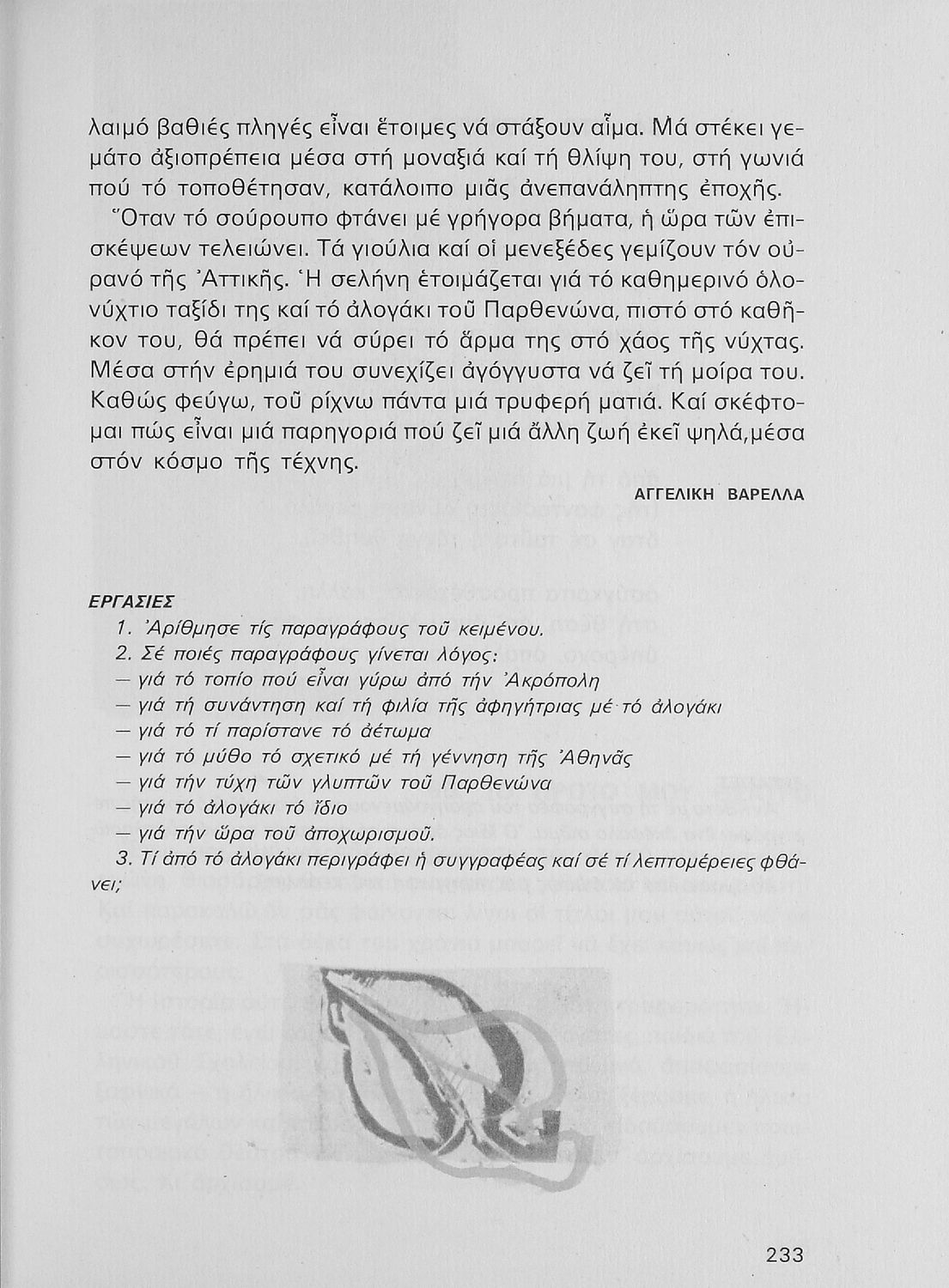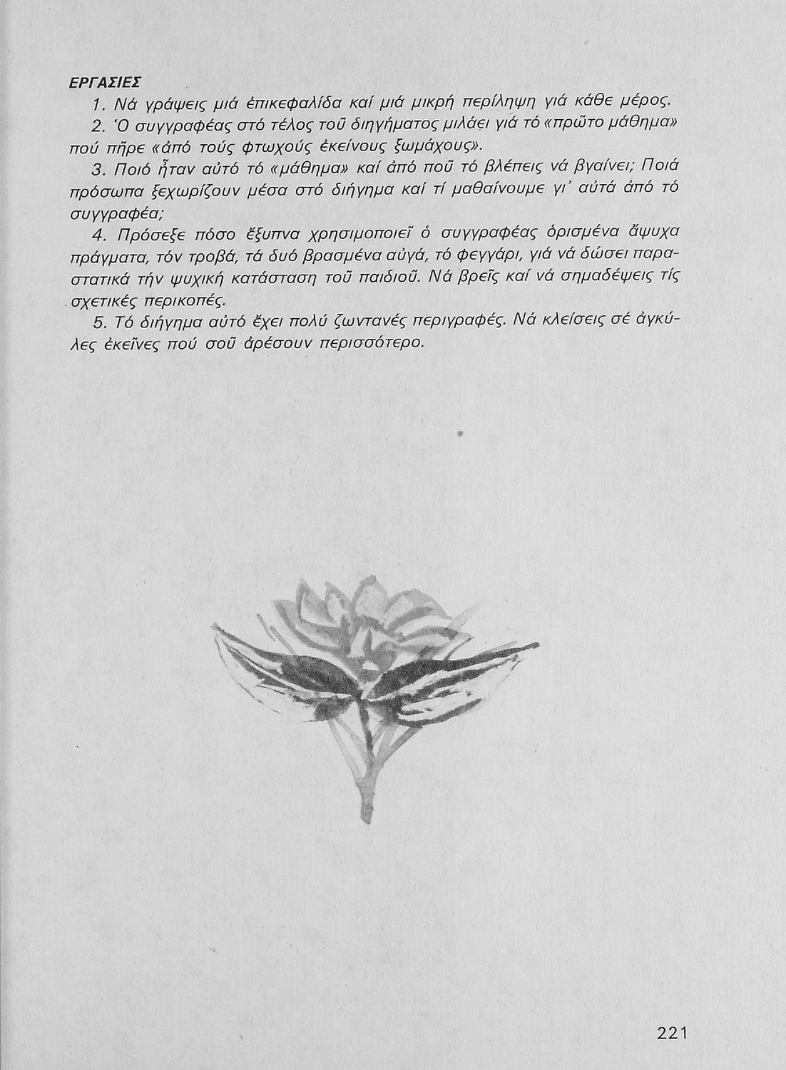 Αναγνωστικό ΣΤ΄ Δημοτικού που περιέχει πεζά και ποιήματα εμπνευσμένα από την κοινωνική, θρησκευτική και εθνική ζωή, την πολιτιστική κληρονομιά και τα ολυμπιακά ιδεώδη καθώς και από τις ασχολίες των ανθρώπων και τα προβλήματά τους.