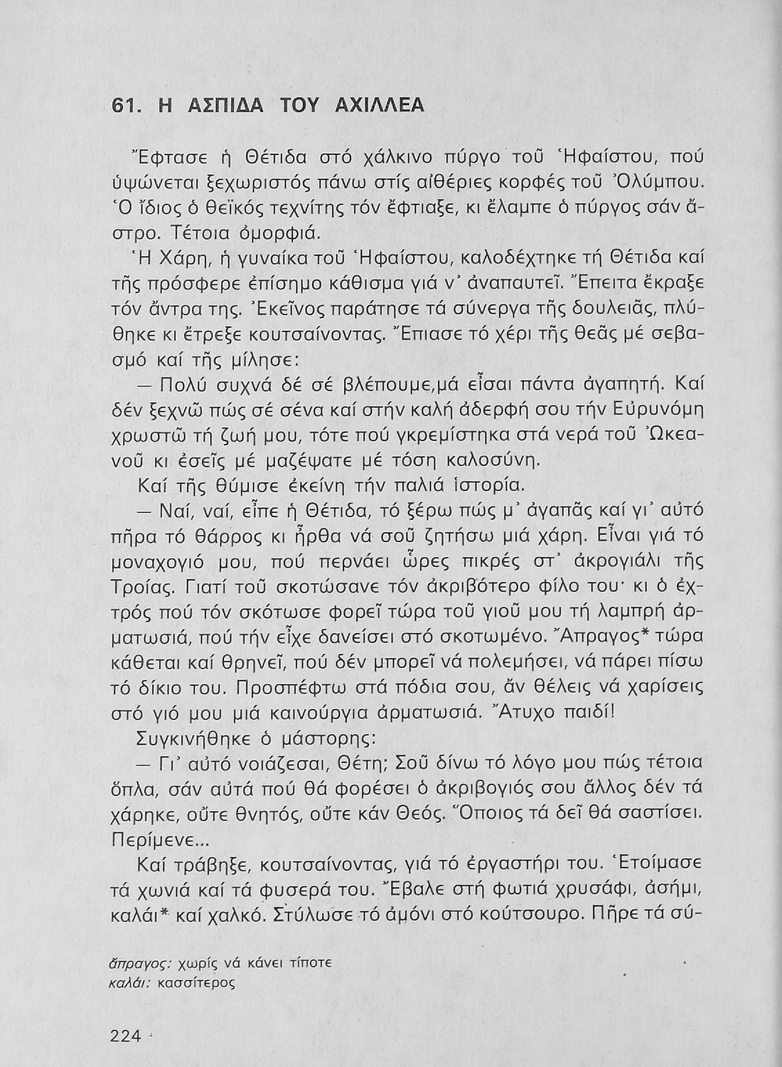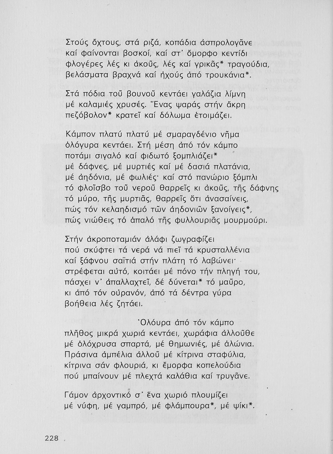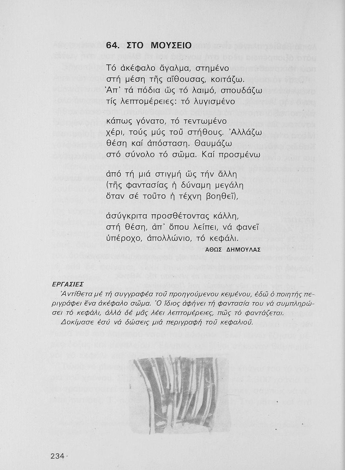 Αναγνωστικό ΣΤ΄ Δημοτικού που περιέχει πεζά και ποιήματα εμπνευσμένα από την κοινωνική, θρησκευτική και εθνική ζωή, την πολιτιστική κληρονομιά και τα ολυμπιακά ιδεώδη καθώς και από τις ασχολίες των ανθρώπων και τα προβλήματά τους.