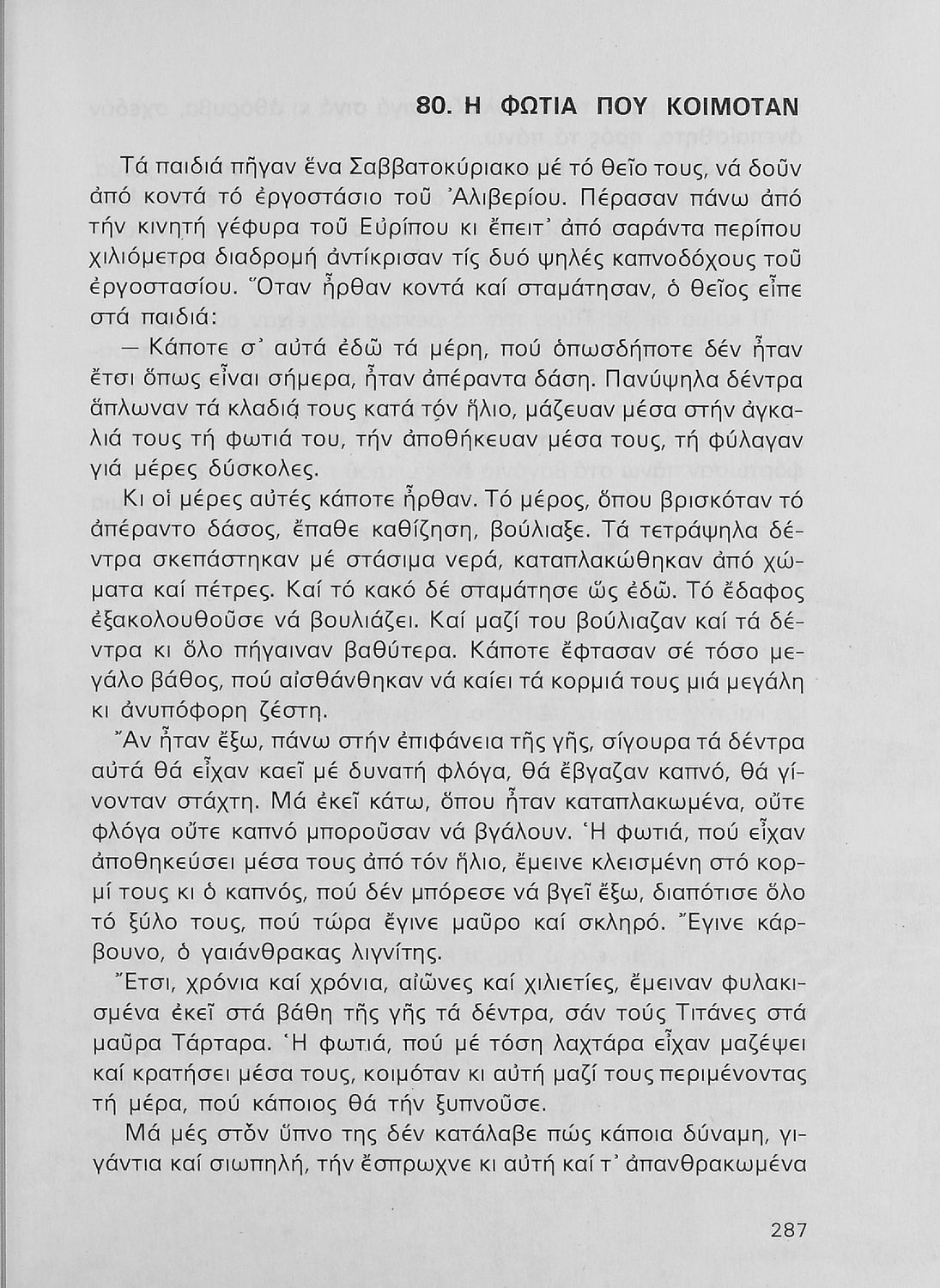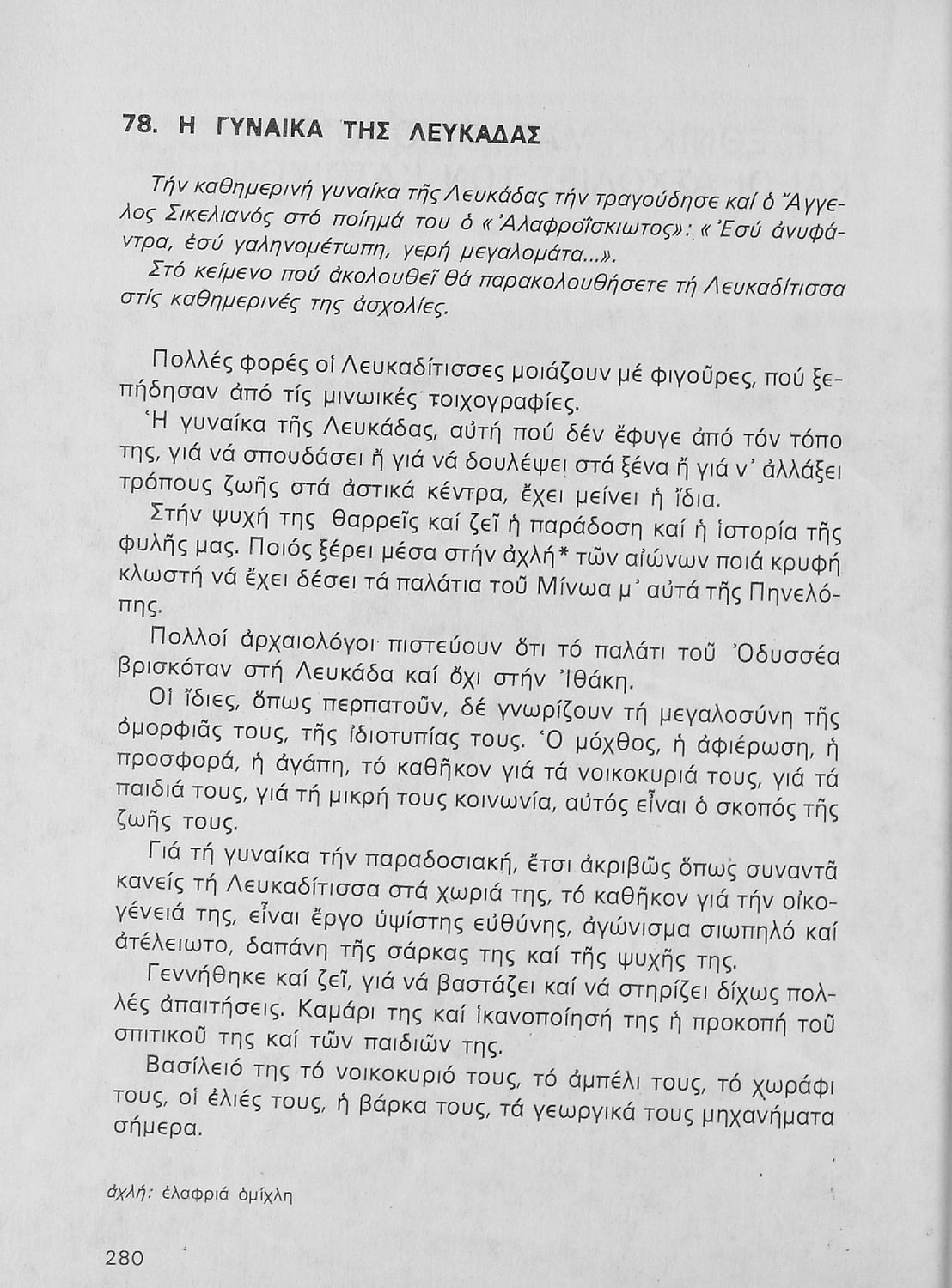 Αναγνωστικό ΣΤ΄ Δημοτικού που περιέχει πεζά και ποιήματα εμπνευσμένα από την κοινωνική, θρησκευτική και εθνική ζωή, την πολιτιστική κληρονομιά και τα ολυμπιακά ιδεώδη καθώς και από τις ασχολίες των ανθρώπων και τα προβλήματά τους.