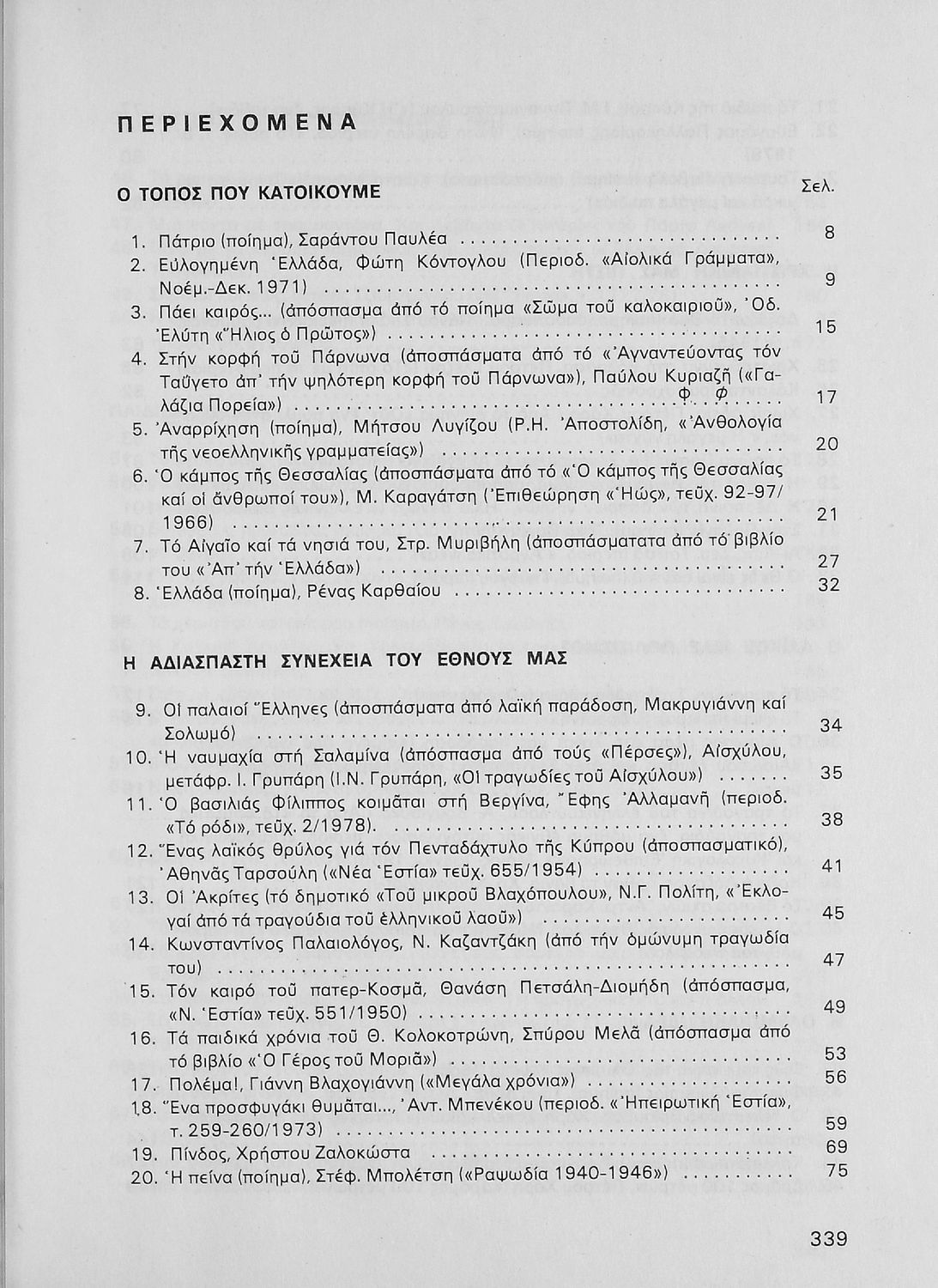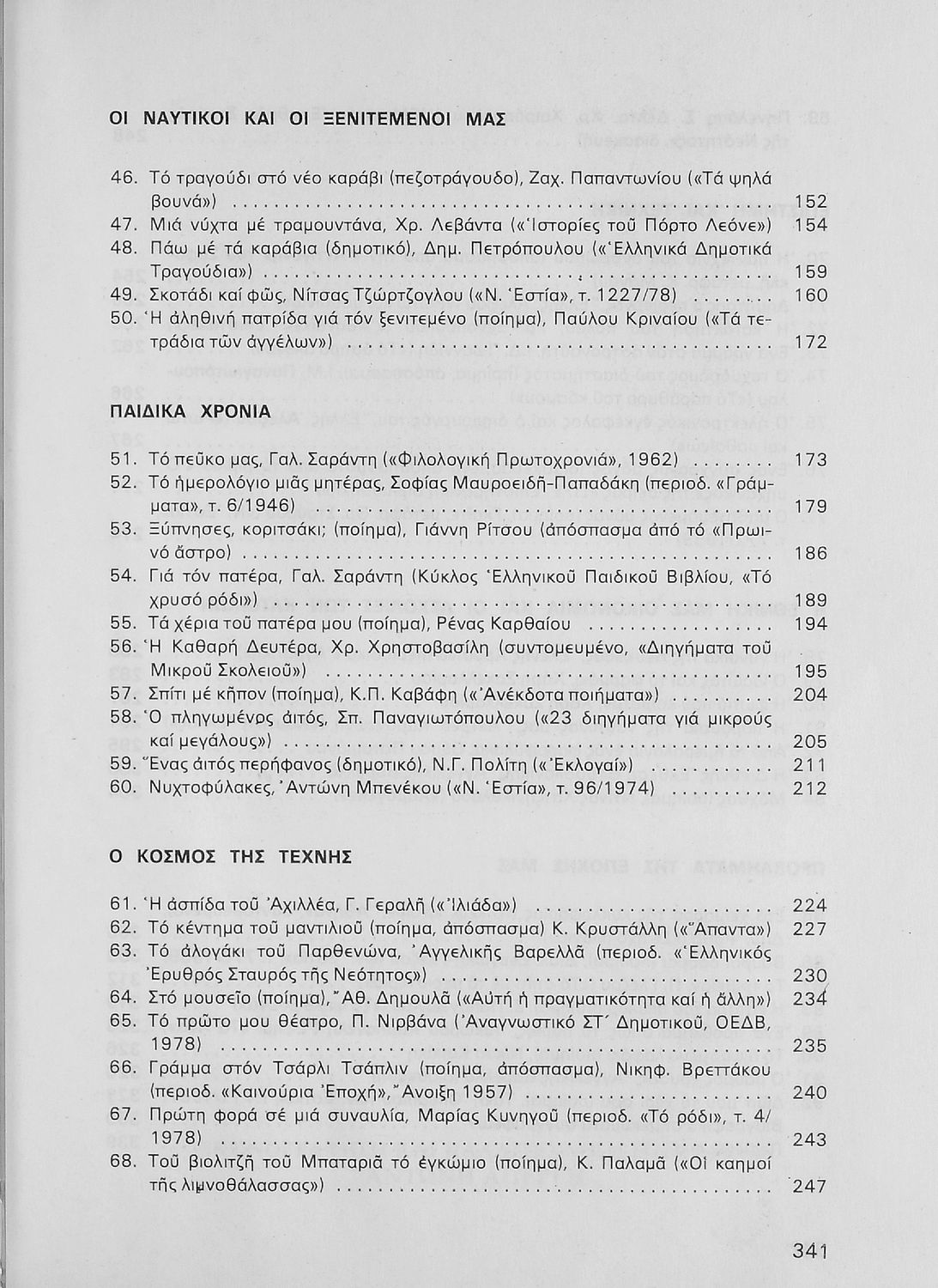 Μιχ. Δ. Στασινόπουλος, Γιώργος Π. Σαββίδης, Αριστείδης Βουγιούκας, Αλέξης Δημαράς, Καλή Δοξιάδη, Γιώργος Ιωάννου, Λίνα Κάσδαγλη, Καλλιόπη Μουστάκα