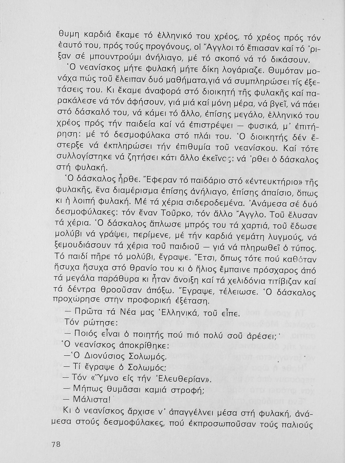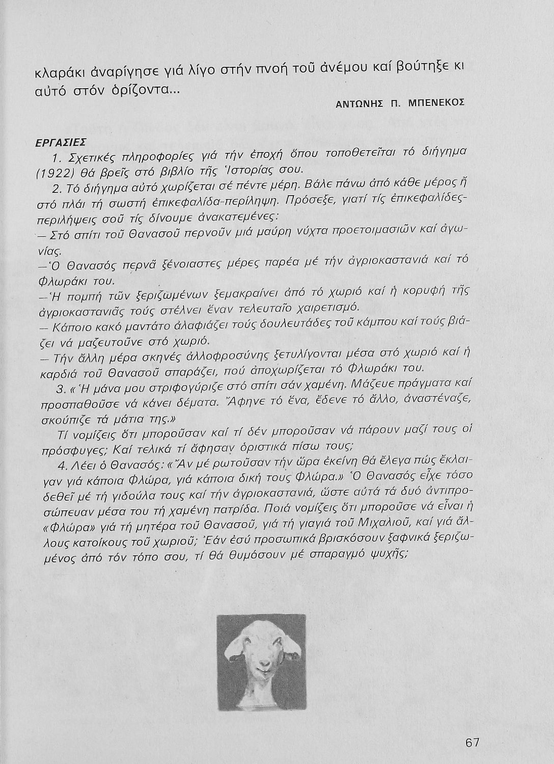 Αναγνωστικό ΣΤ΄ Δημοτικού που περιέχει πεζά και ποιήματα εμπνευσμένα από την κοινωνική, θρησκευτική και εθνική ζωή, την πολιτιστική κληρονομιά και τα ολυμπιακά ιδεώδη καθώς και από τις ασχολίες των ανθρώπων και τα προβλήματά τους.