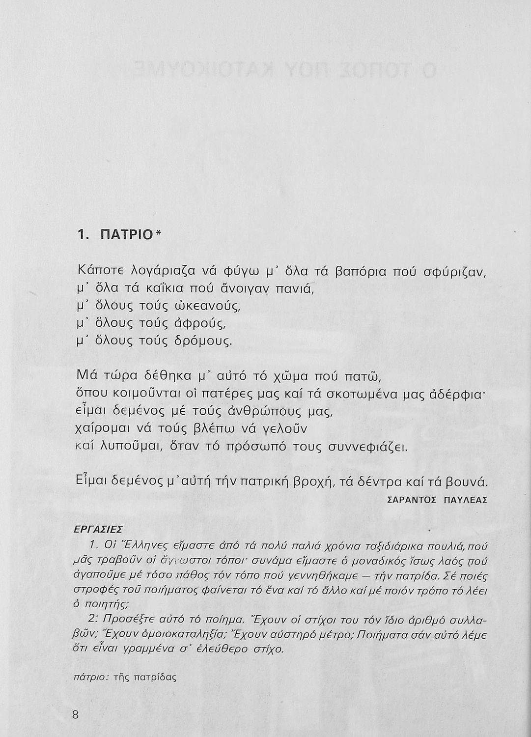 Αναγνωστικό ΣΤ΄ Δημοτικού που αντλεί τα θέματά του από τη θρησκευτική, εθνική, οικογενειακή, κοινωνική και επαγγελματική ζωή και την σύγχρονη ελληνική ιστορία. Φέρει το σύμβολο της δικτατορίας.