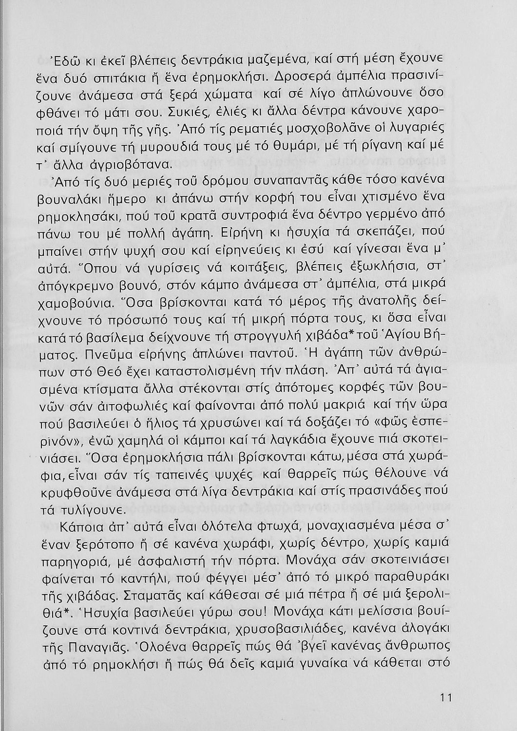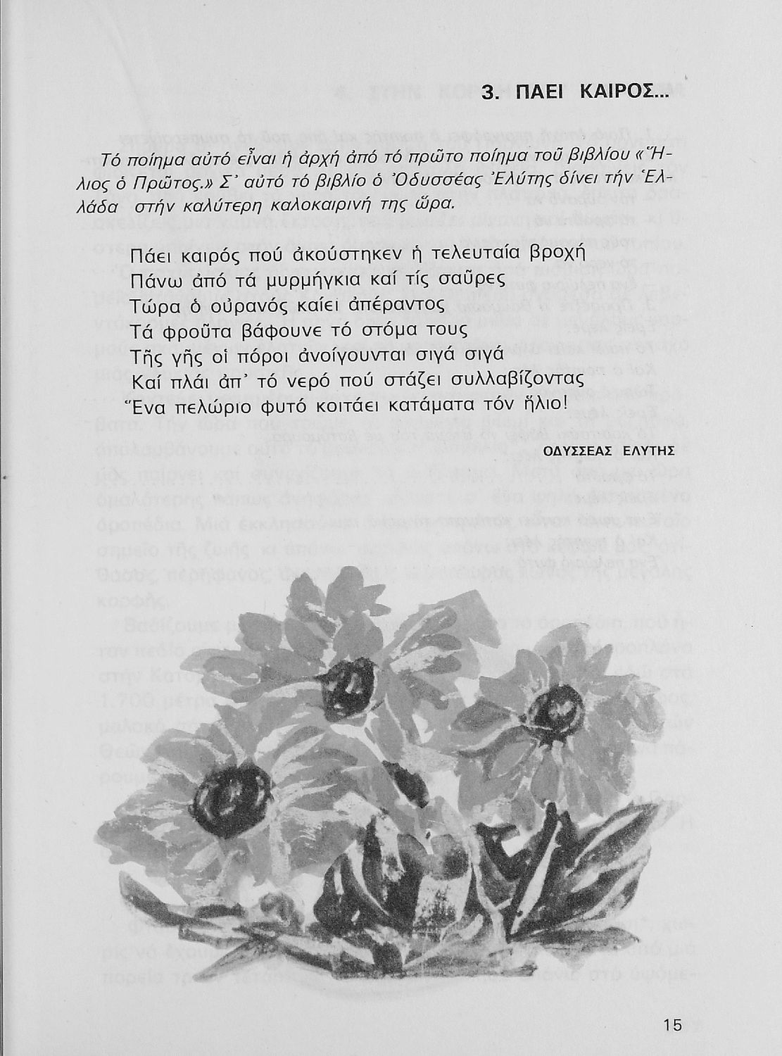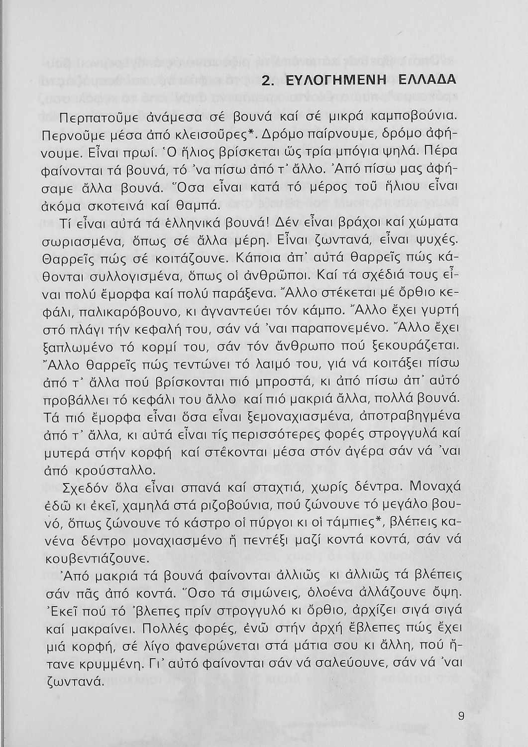 Αναγνωστικό ΣΤ΄ Δημοτικού που περιέχει πεζά και ποιήματα εμπνευσμένα από την κοινωνική, θρησκευτική και εθνική ζωή, την πολιτιστική κληρονομιά και τα ολυμπιακά ιδεώδη καθώς και από τις ασχολίες των ανθρώπων και τα προβλήματά τους.