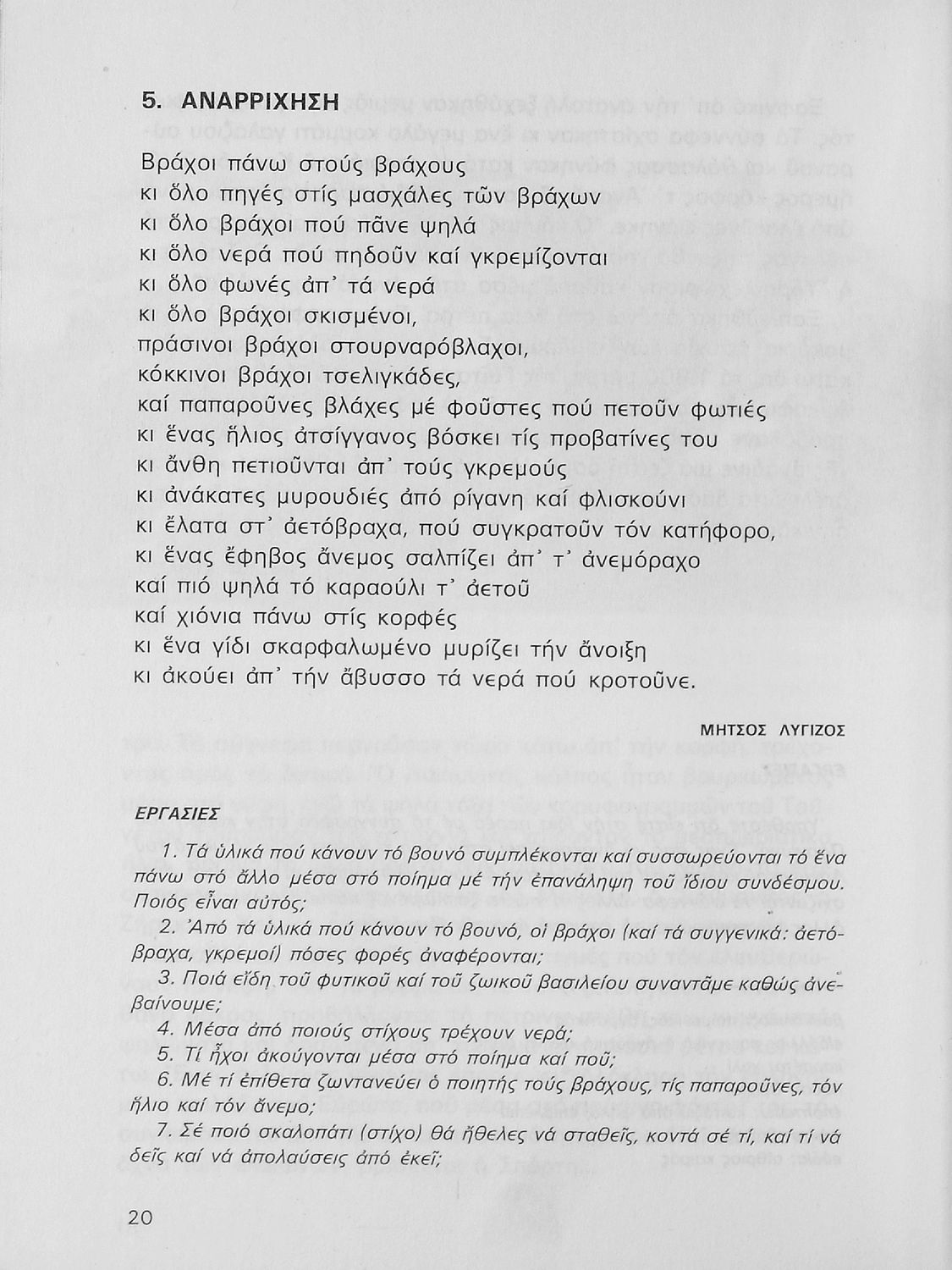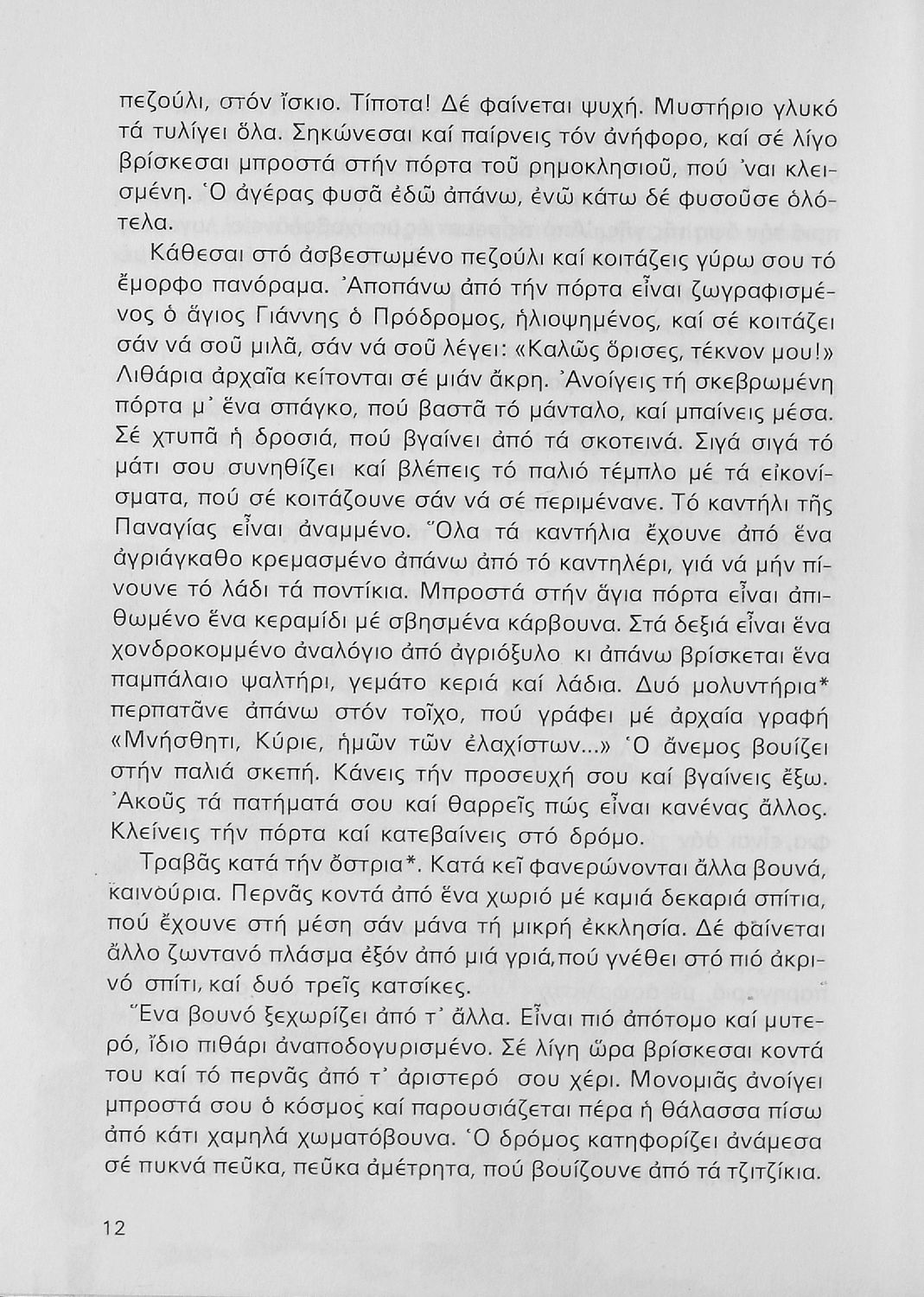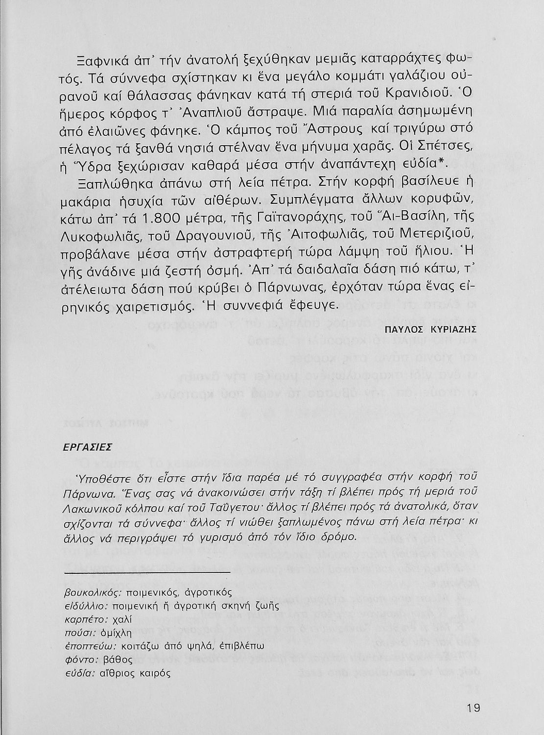Αναγνωστικό ΣΤ΄ Δημοτικού που περιέχει πεζά και ποιήματα εμπνευσμένα από την κοινωνική, θρησκευτική και εθνική ζωή, την πολιτιστική κληρονομιά και τα ολυμπιακά ιδεώδη καθώς και από τις ασχολίες των ανθρώπων και τα προβλήματά τους.