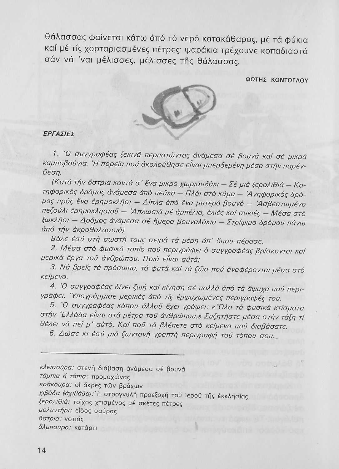 Αναγνωστικό για τους μαθητές της ΣΤ΄ τάξης του Δημοτικού που περιέχει πεζά και ποιήματα Ελλήνων λογοτεχνών για την εκμάθηση της Ελληνικής γλώσσας.