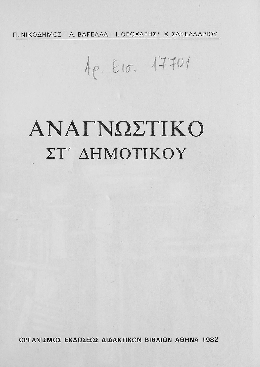 Συγγραφέας: Π. Νικόδημος, Α. Βαρελλά, Ι. Θεοχάρης, Χ. Σακελλαρίου