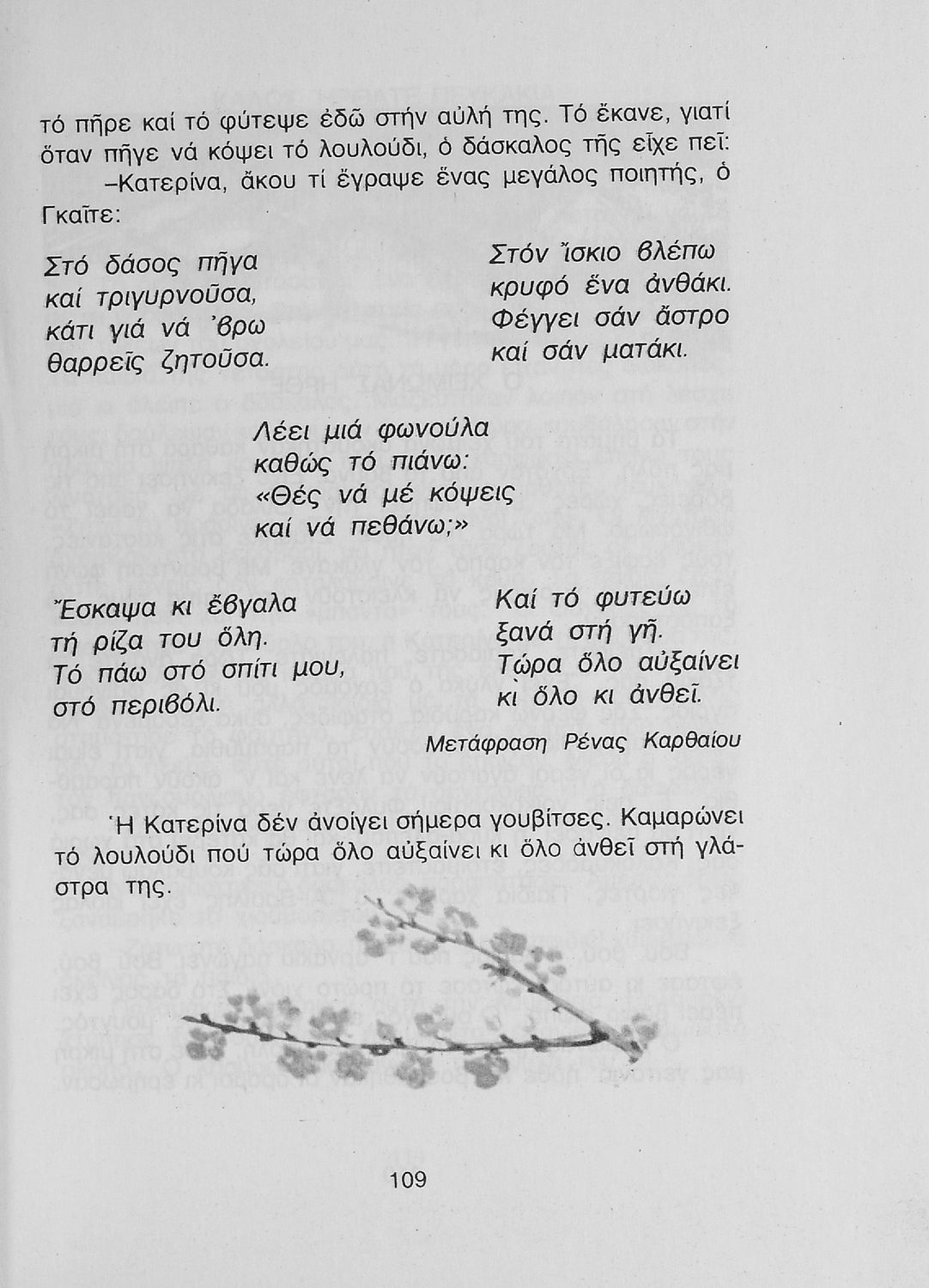 Αναγνωστικό για την Δ΄ τάξη του Δημοτικού. Περιλαμβάνει ένα κείμενο στο οποίο παρεμβάλλονται ποιήματα δημοτικά και Ελλήνων ποιητών.