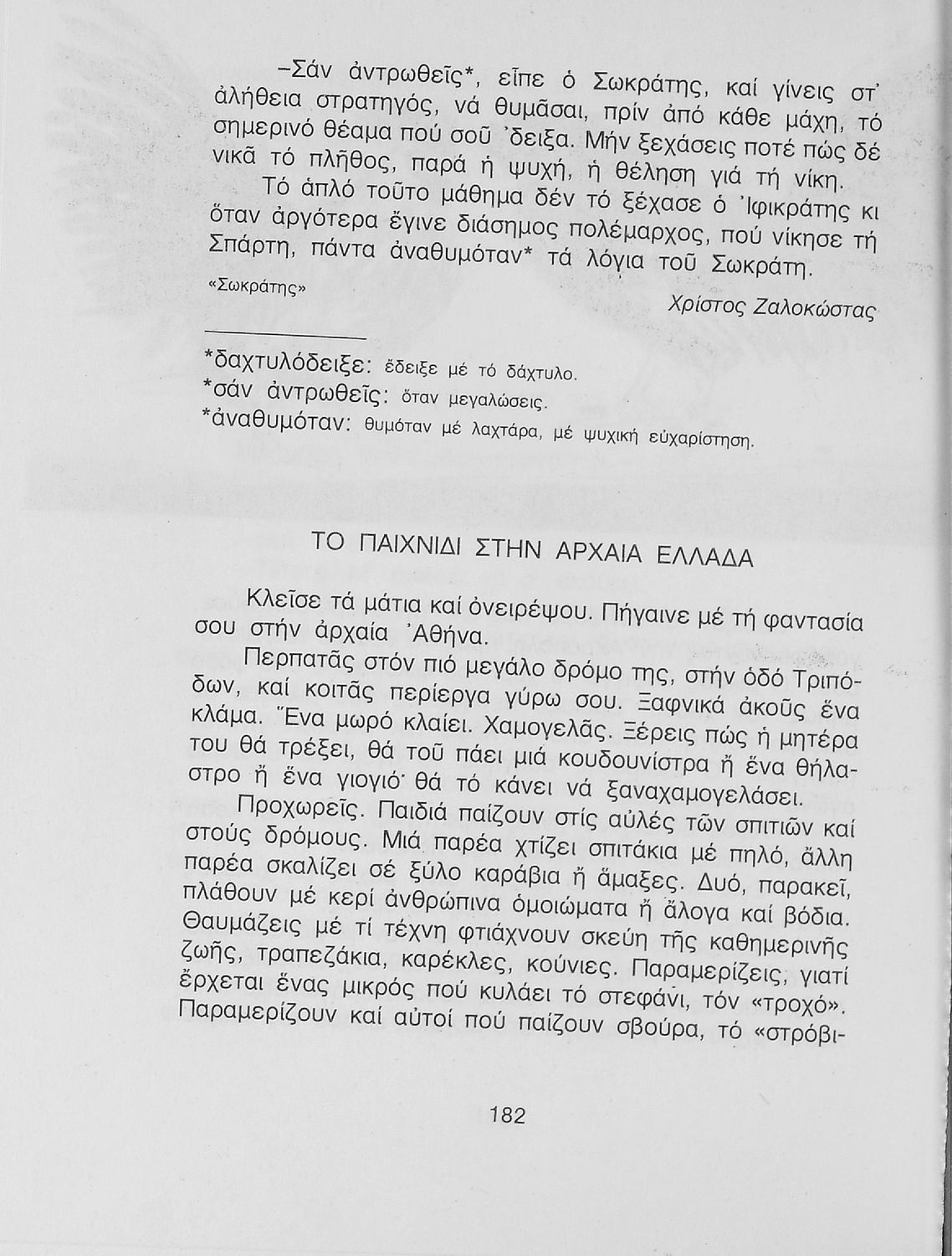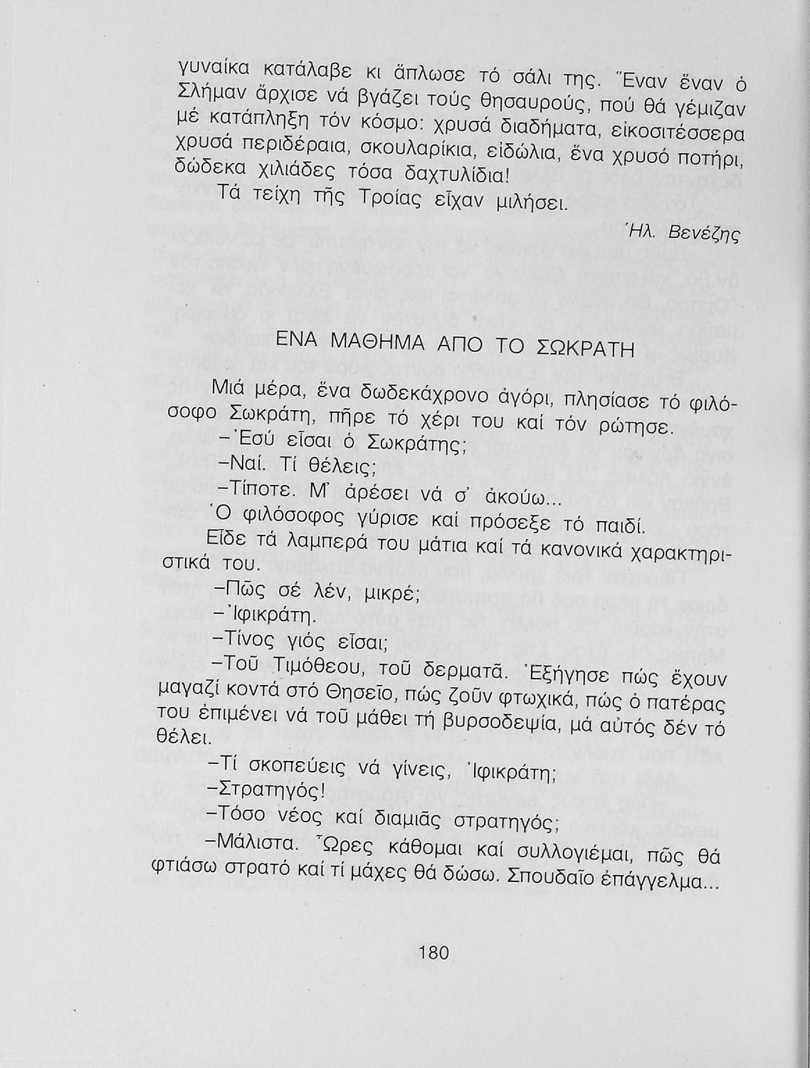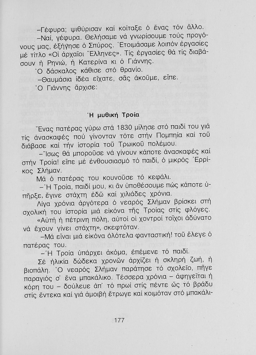 Αναγνωστικό Δ΄ Δημοτικού που περιέχει πεζά και ποιήματα εμπνευσμένα από την ελληνική ιστορία και μυθολογία, την κοινωνική ζωή και την ελληνική φύση.
