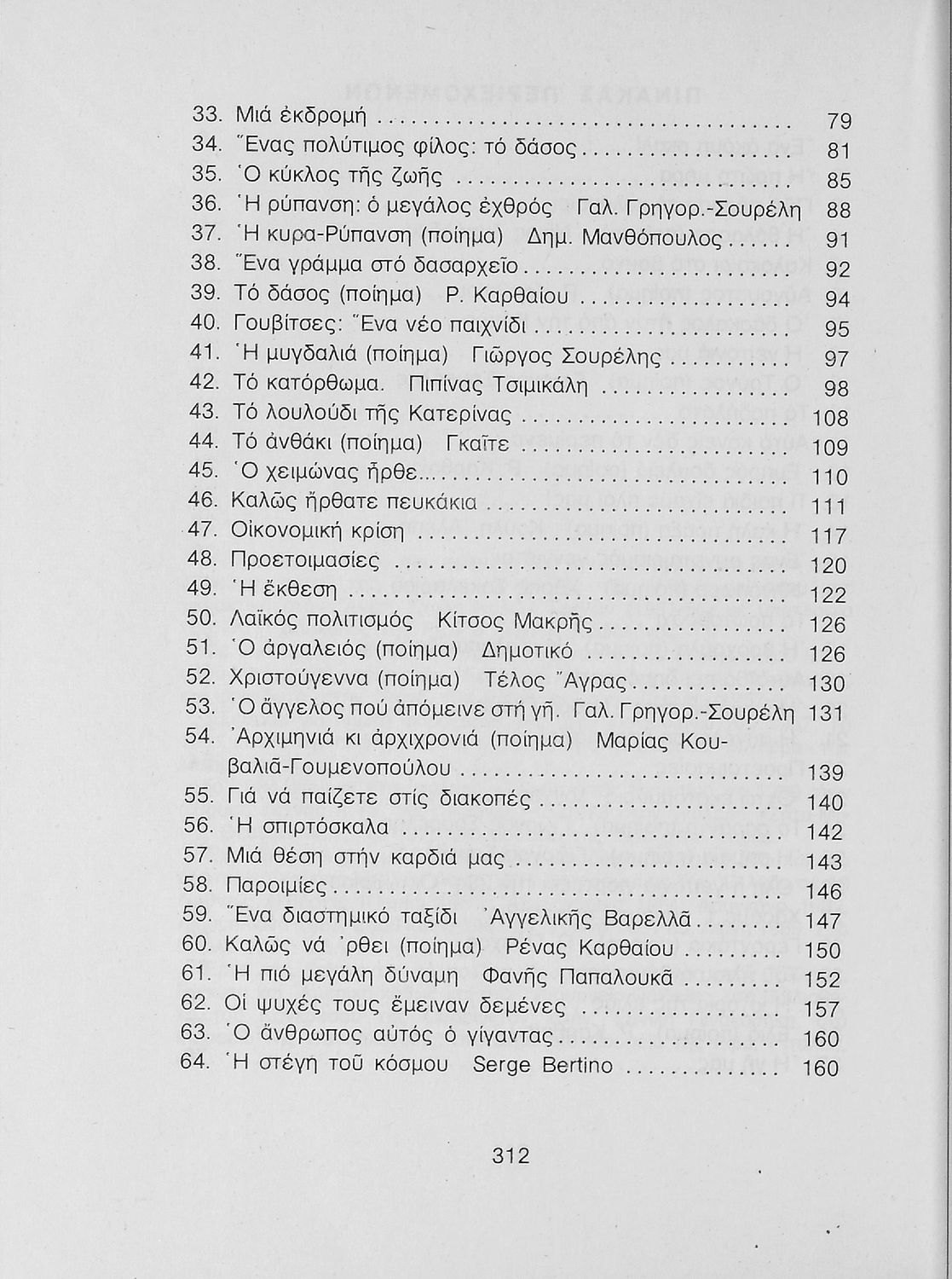 Αναγνωστικό Δ΄ Δημοτικού που περιέχει πεζά και ποιήματα με περιεχόμενο διδακτικό και ηθικοπλαστικό εμπνευσμένα από την αγροτική ζωή και κοινωνική ζωή, την ελληνική φύση και παράδοση, και τις ασχολίες των ανθρώπων. Περιλαμβάνει και σύντομα βιογραφικά σημειώματα των συγγραφέων.