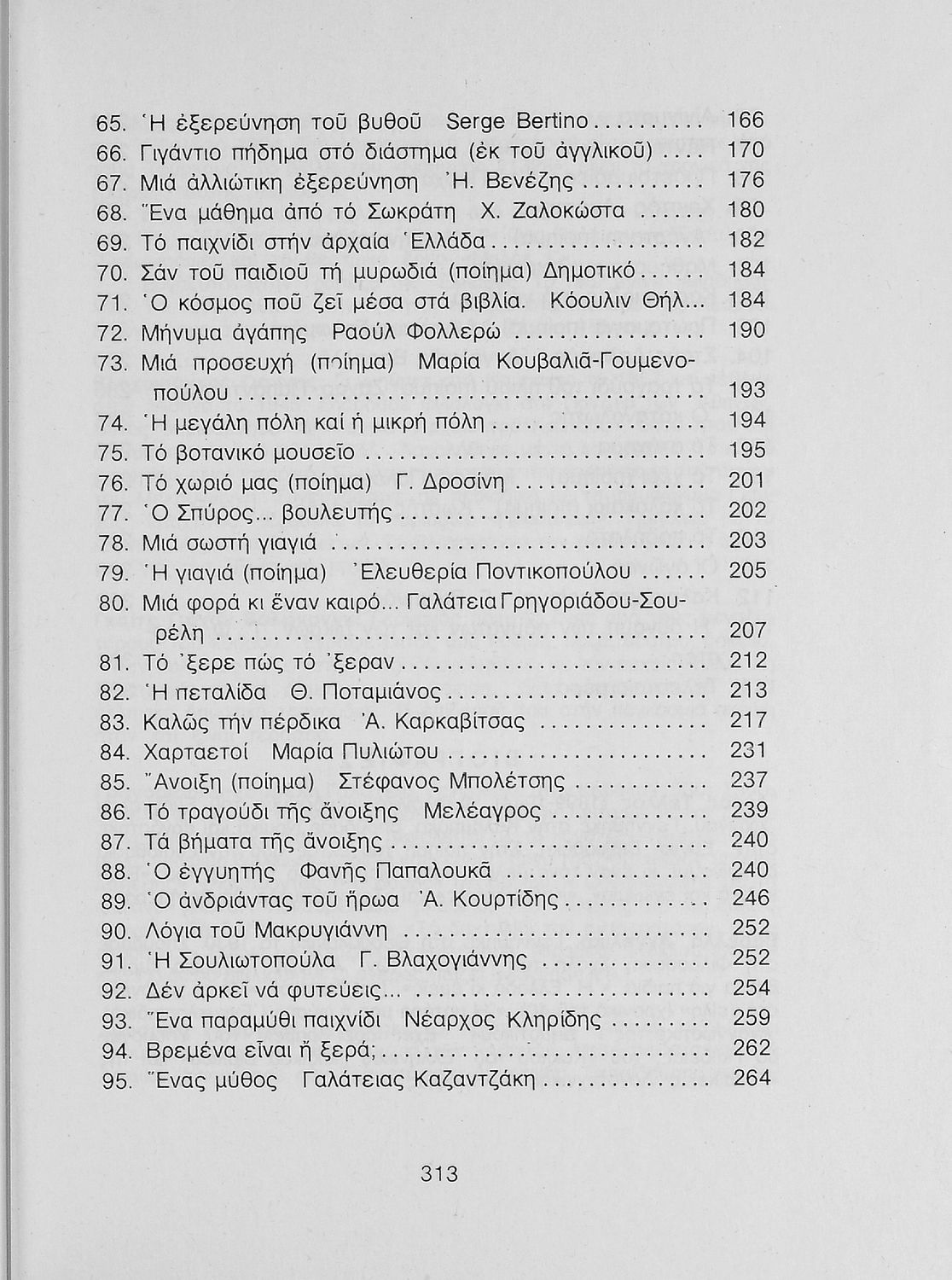 Αναγνωστικό για την Δ΄ Δημοτικού. Περιλαμβάνει πεζά κείμενα από την αρχαία εποχή με θέματα κυρίως για την φύση. Από το βιβλίο λείπουν οι πρώτες και οι τελευταίες σελίδες.