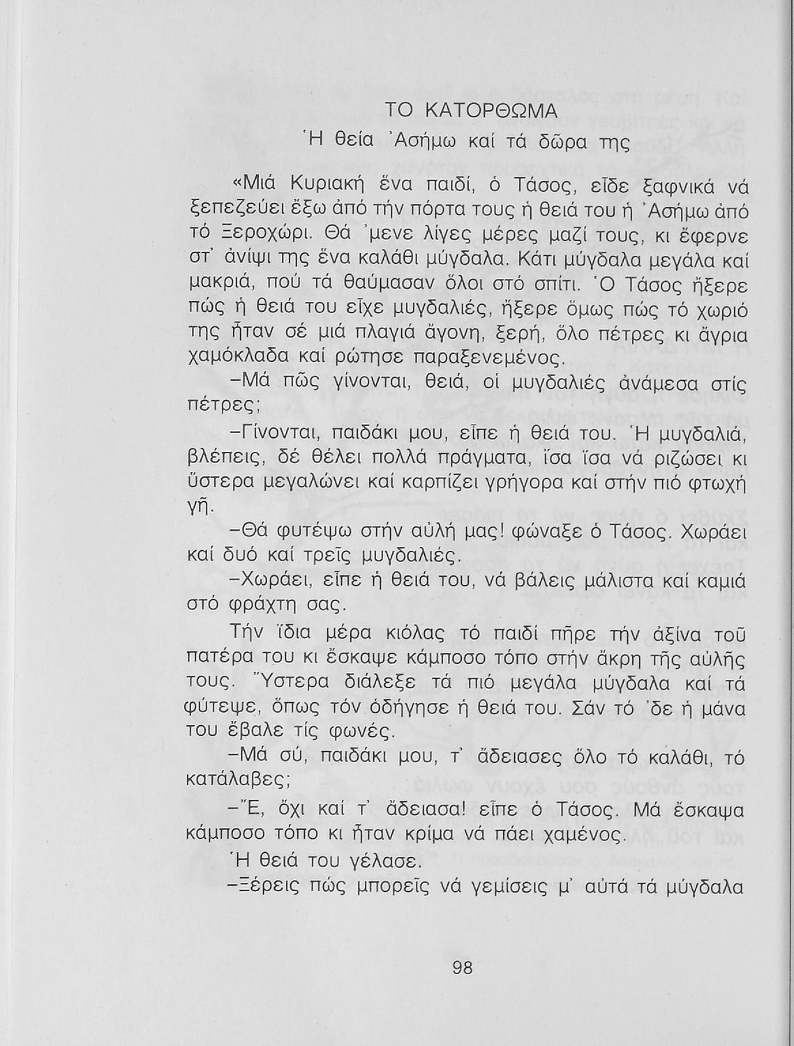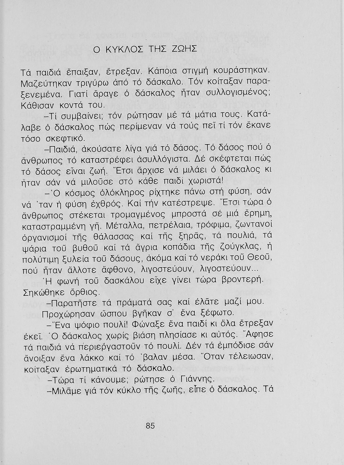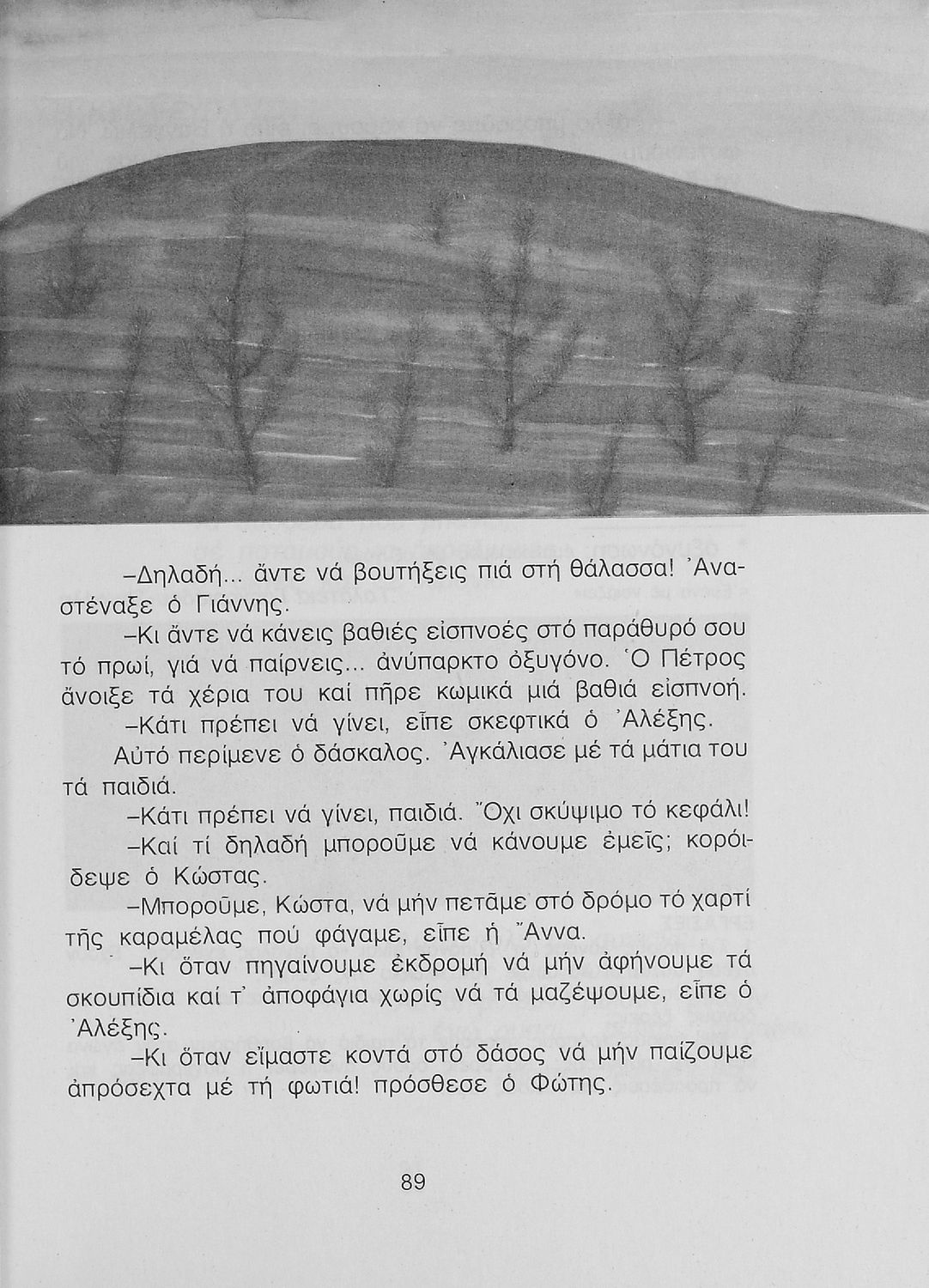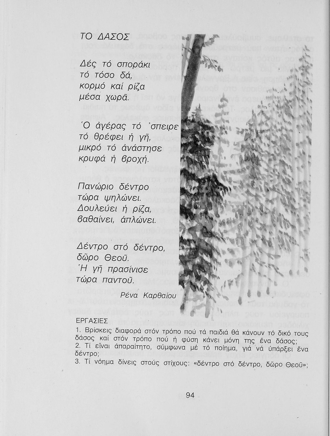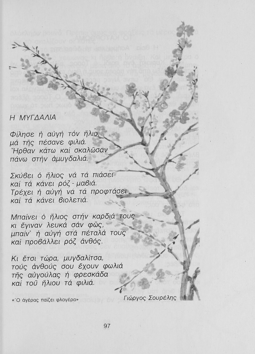 Αναγνωστικό για την Δ΄ τάξη του Δημοτικού. Περιλαμβάνει ένα κείμενο στο οποίο παρεμβάλλονται ποιήματα δημοτικά και Ελλήνων ποιητών.