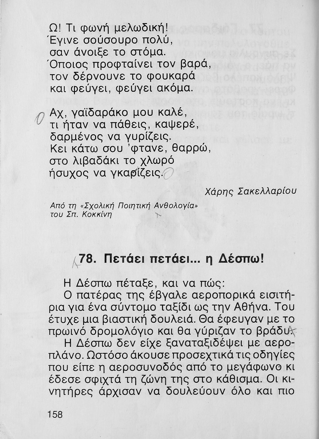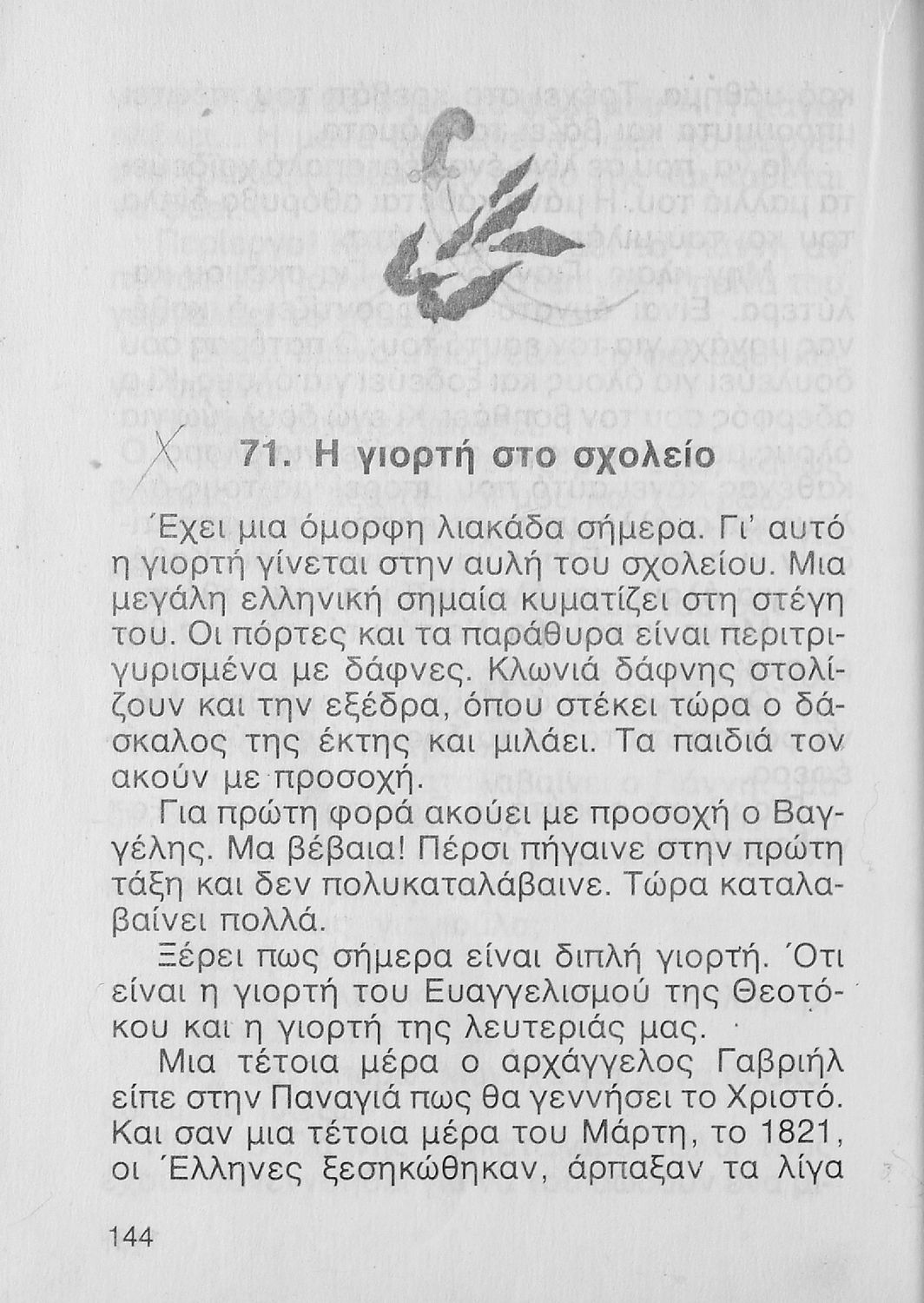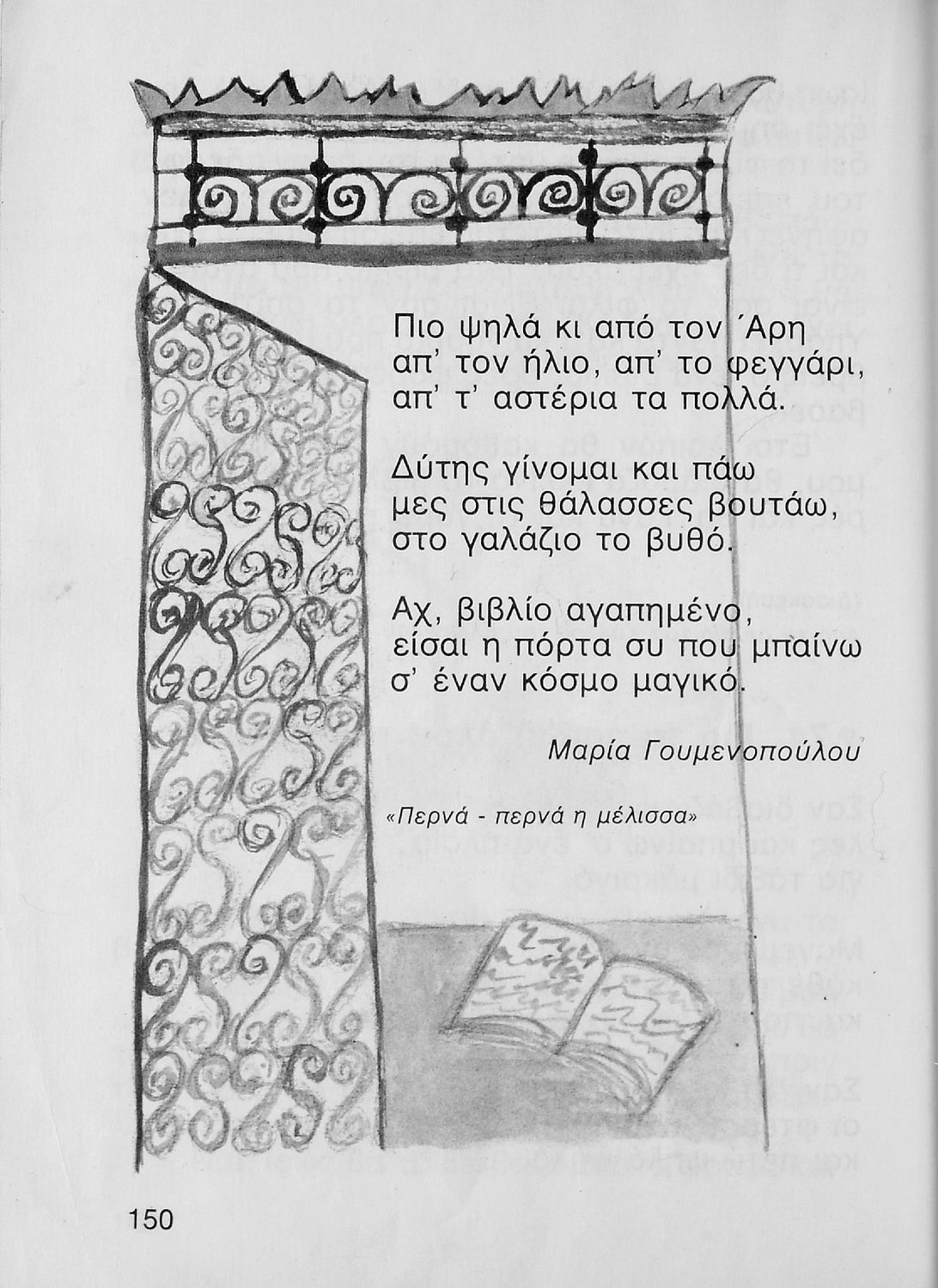Αναγνωστικό Β' Δημοτικού που περιλαμβάνει ποιήματα και πεζά εμπνευσμένα από την καθημερινή ζωή, την ελληνική μυθολογία, την ελληνική φύση και τη θρησκευτική παράδοση.