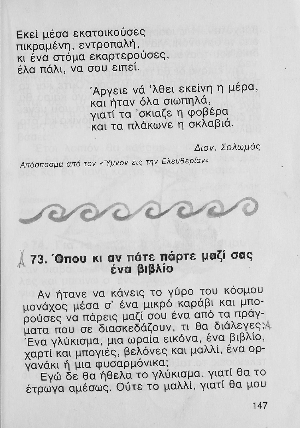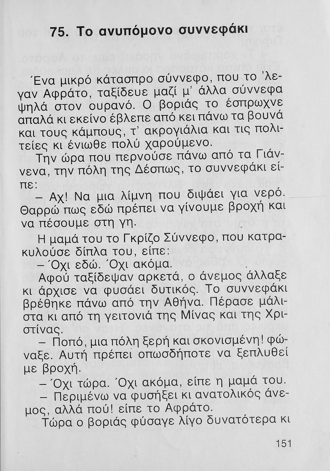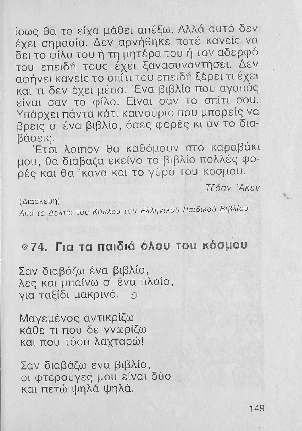 Αναγνωστικό Β' Δημοτικού που περιλαμβάνει ποιήματα και πεζά εμπνευσμένα από την καθημερινή ζωή, την ελληνική μυθολογία, την ελληνική φύση και τη θρησκευτική παράδοση.