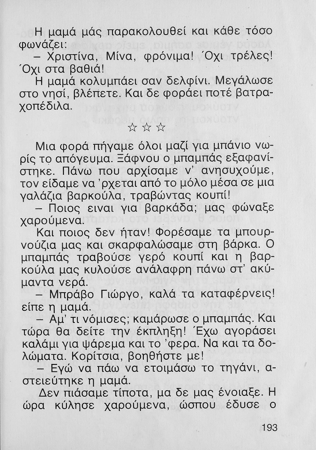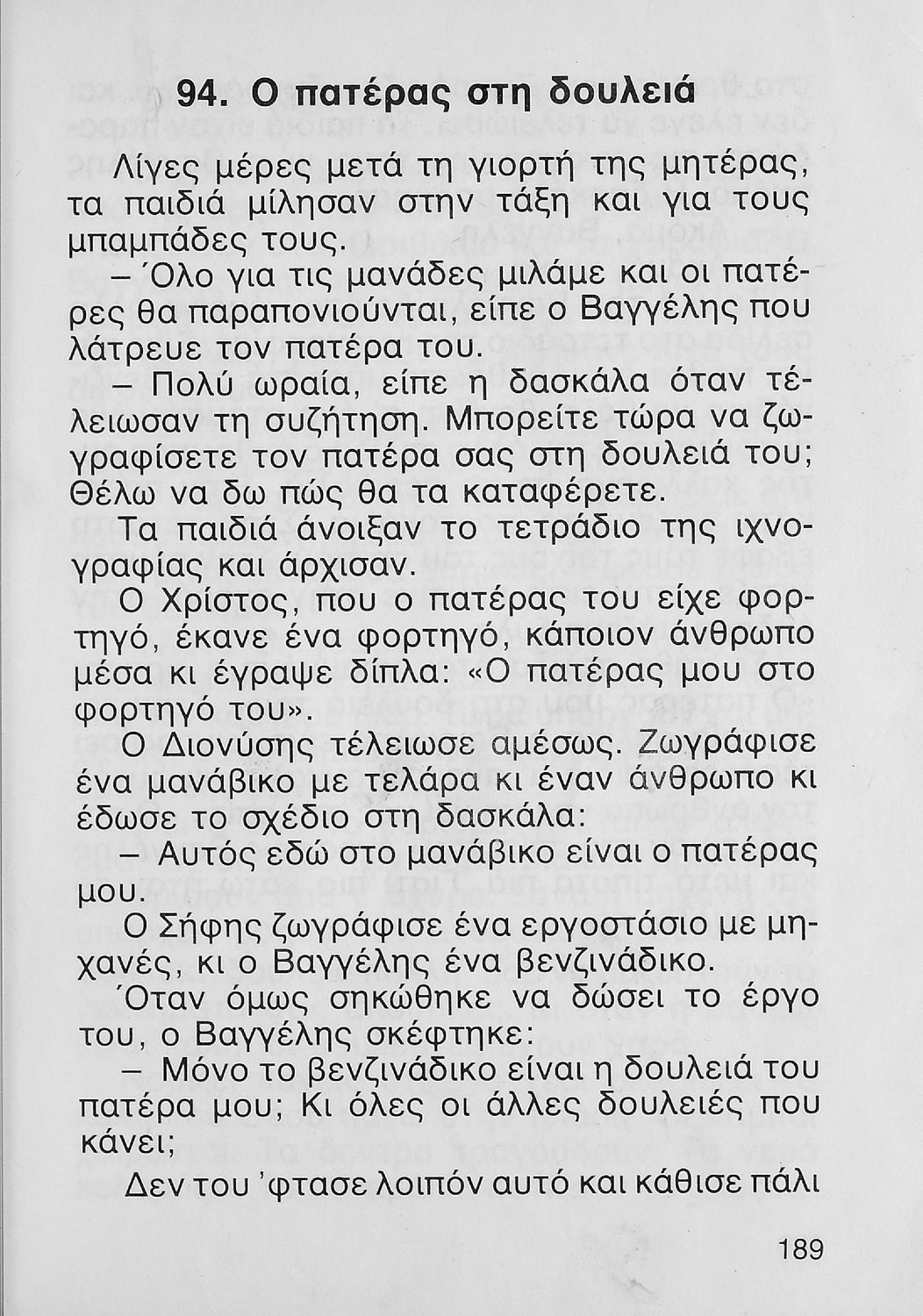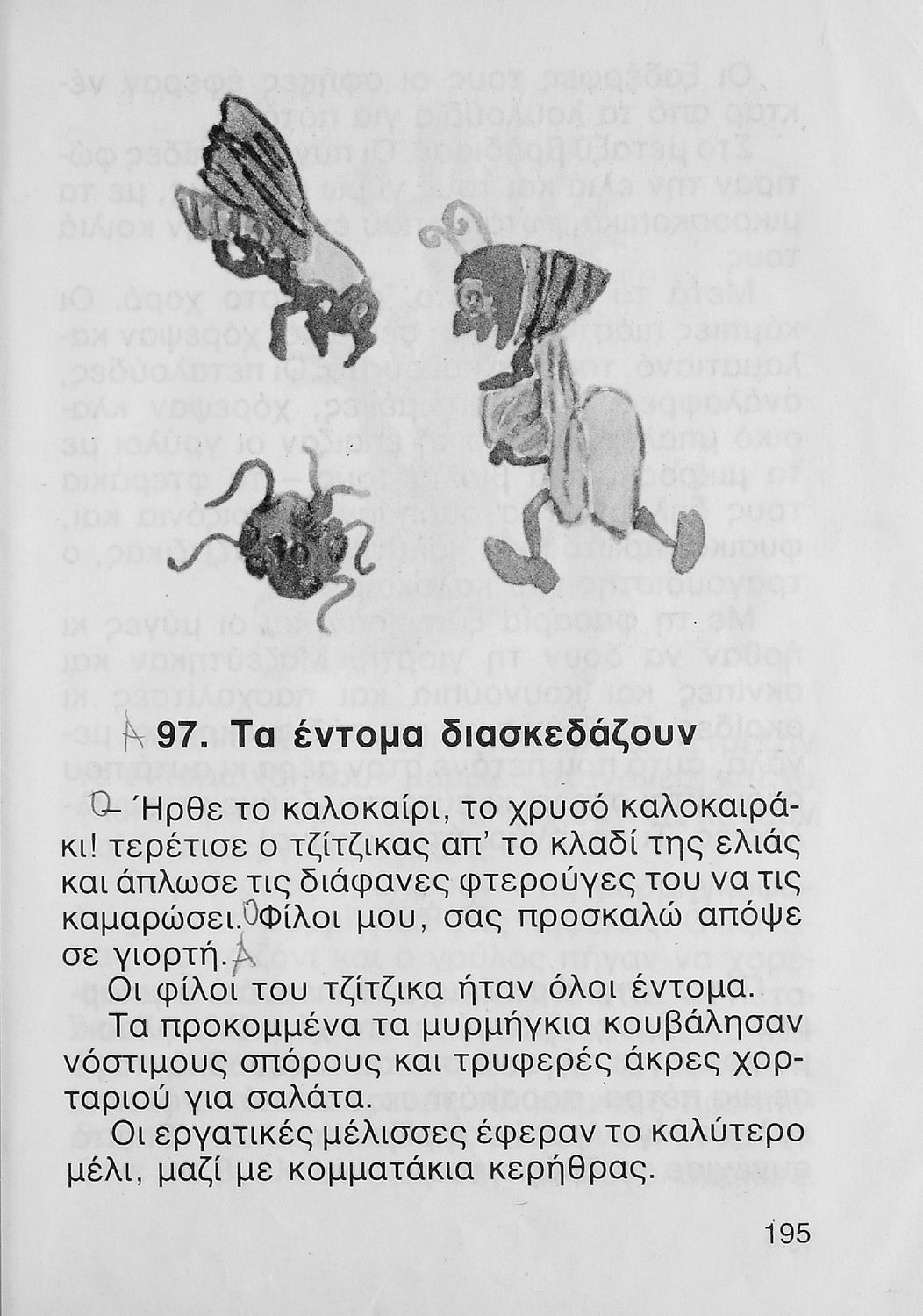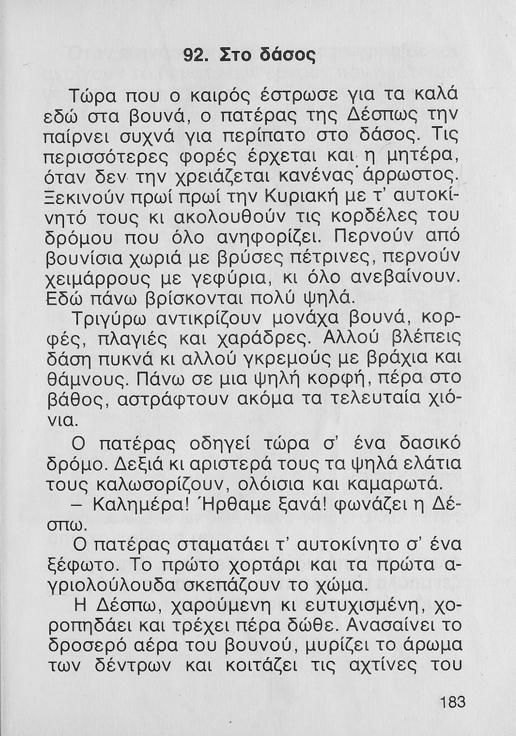 Αναγνωστικό Β' Δημοτικού που περιλαμβάνει ποιήματα και πεζά εμπνευσμένα από την καθημερινή ζωή, την ελληνική μυθολογία, την ελληνική φύση και τη θρησκευτική παράδοση.