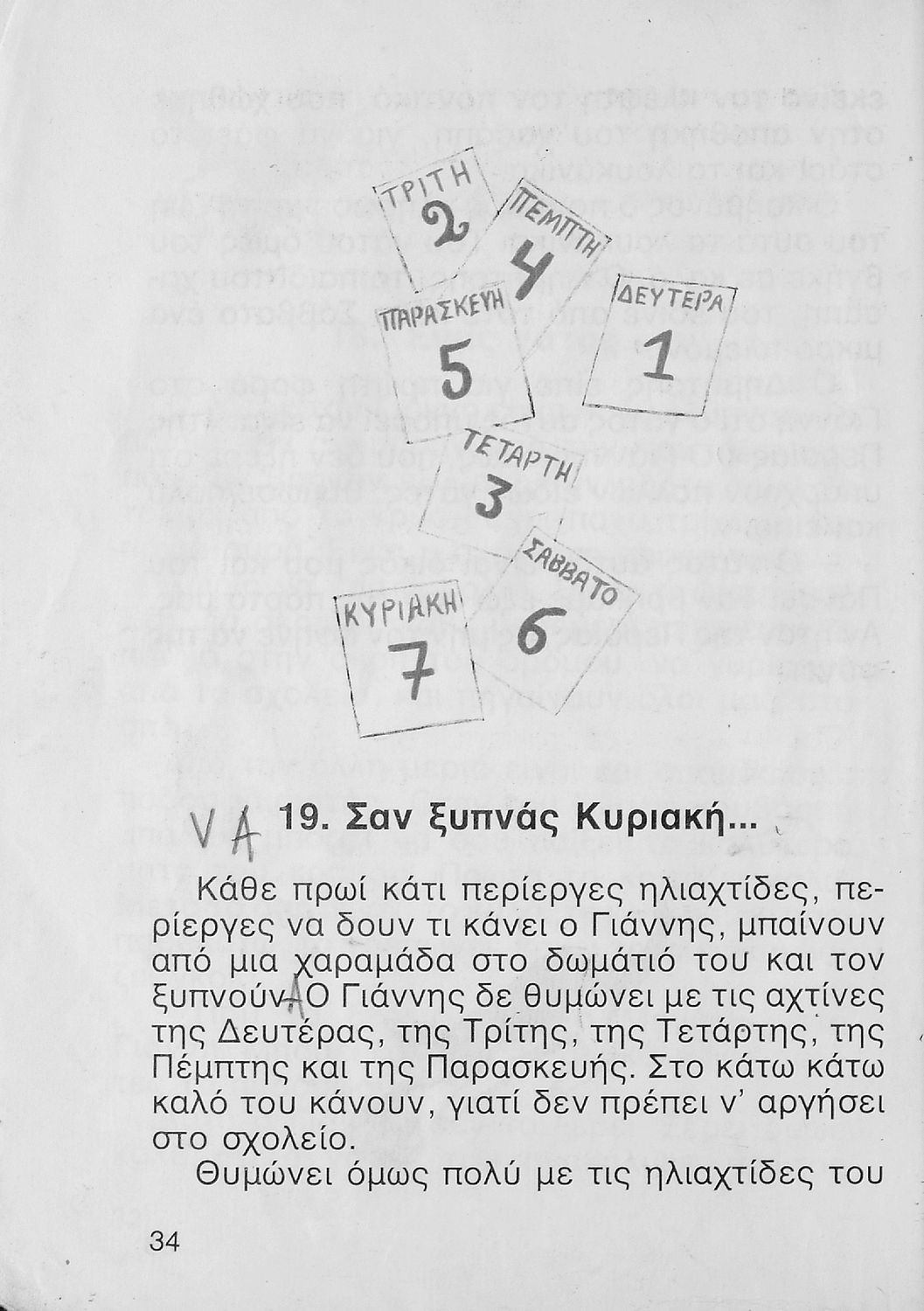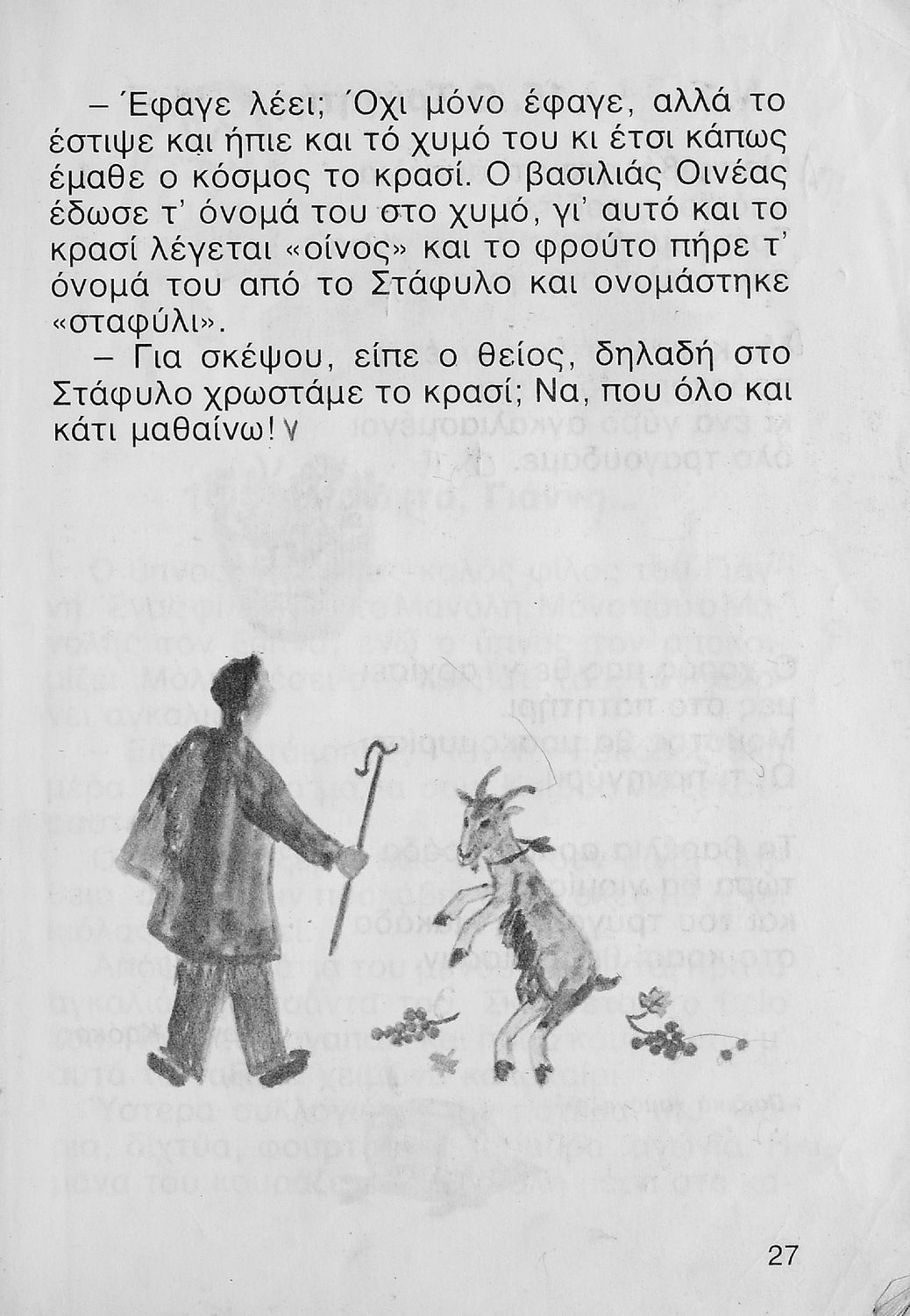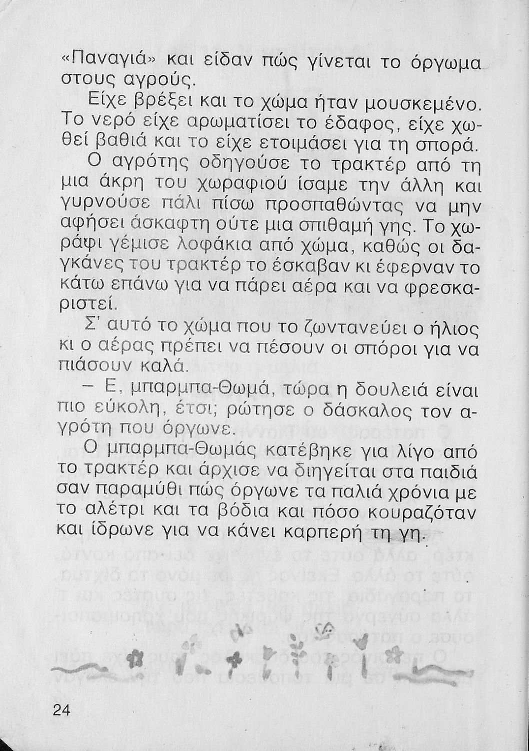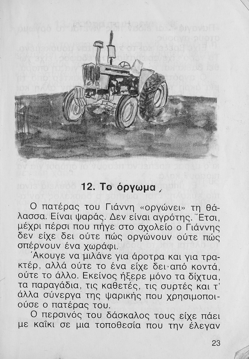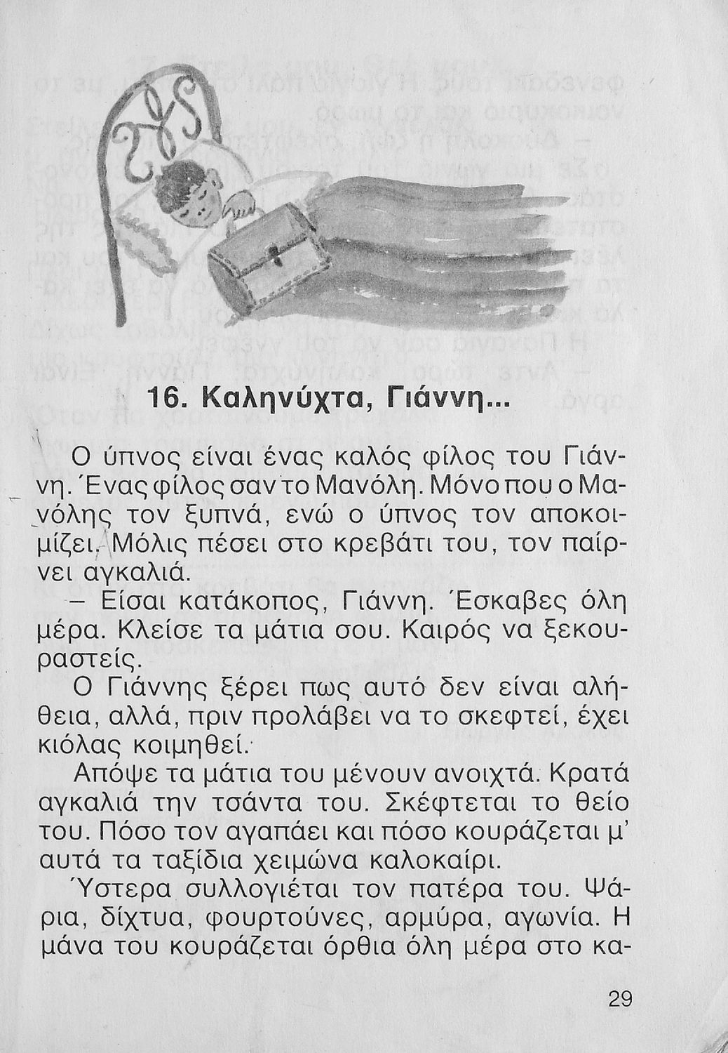 Αναγνωστικό Β' Δημοτικού που περιλαμβάνει μικρά διηγήματα και ποιήματα με περιεχόμενο από την οικογενειακή και κοινωνική ζωή, την ελληνική φύση, την ελληνική ιστορία και μυθολογία και την υγιεινή.
