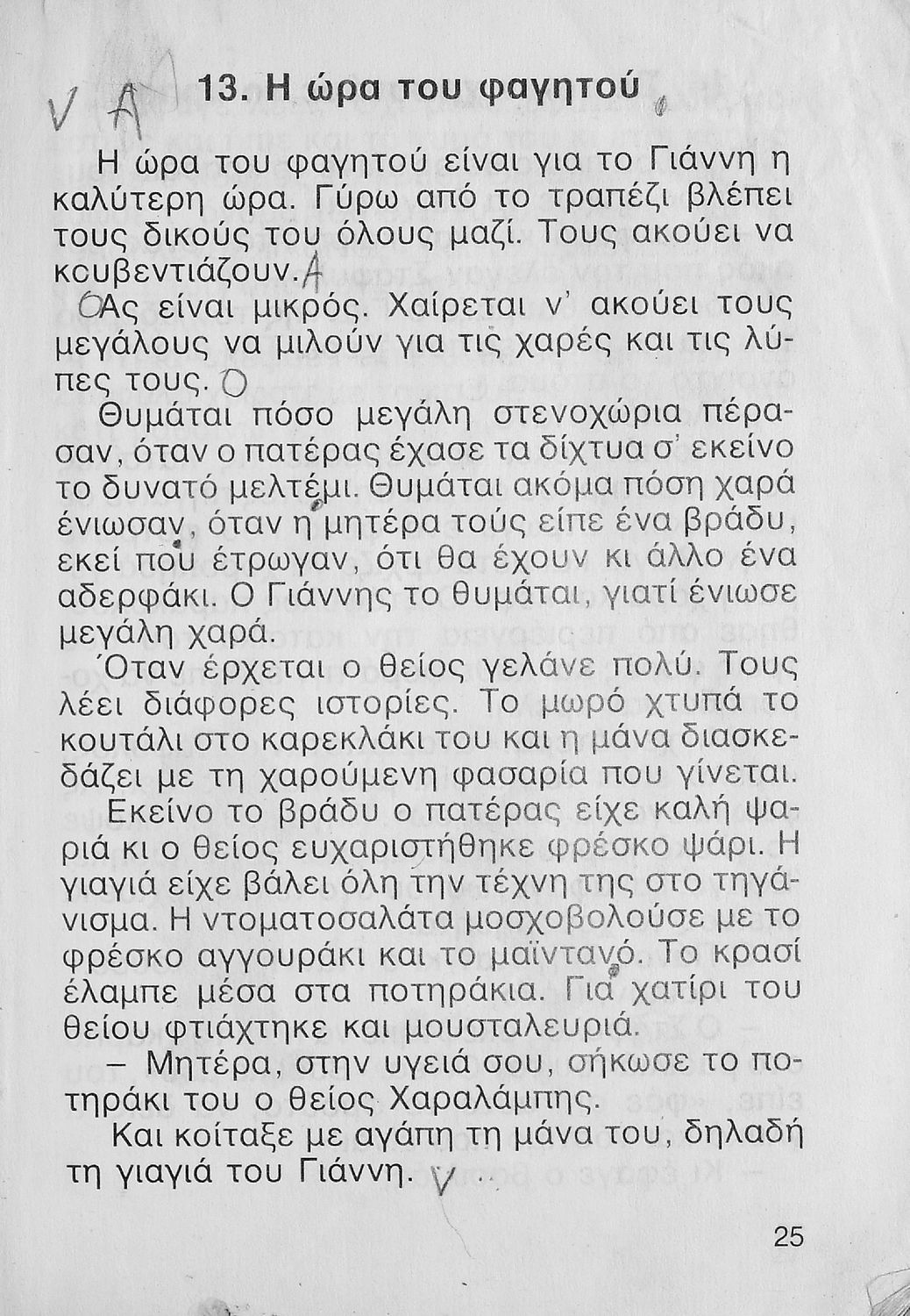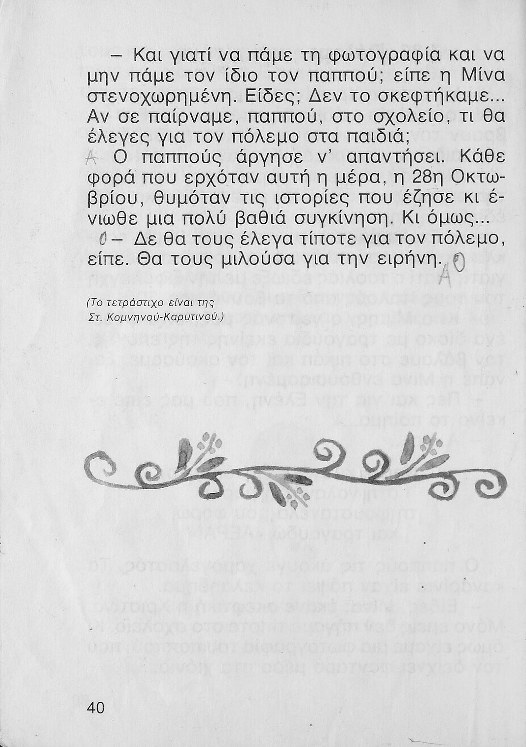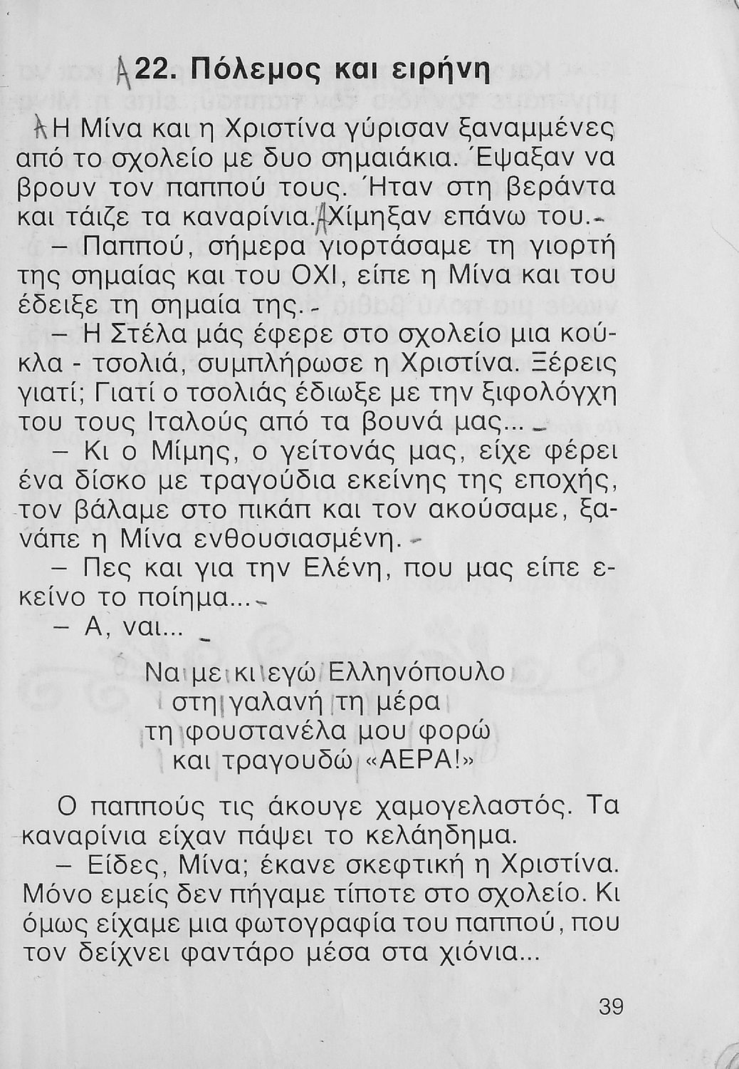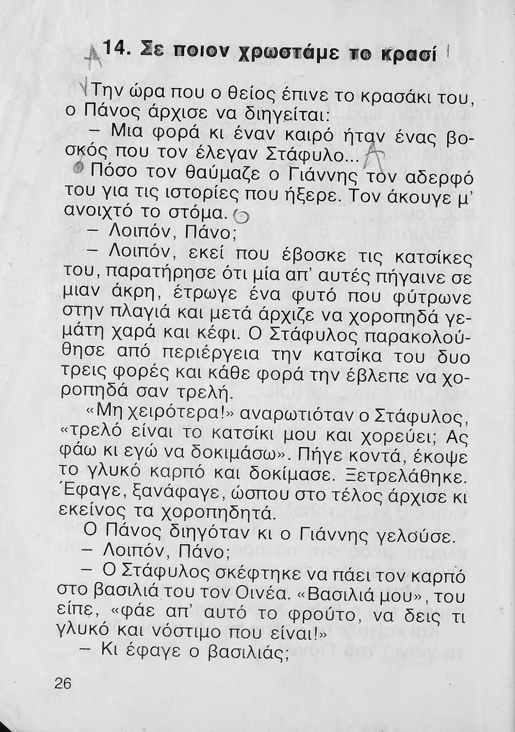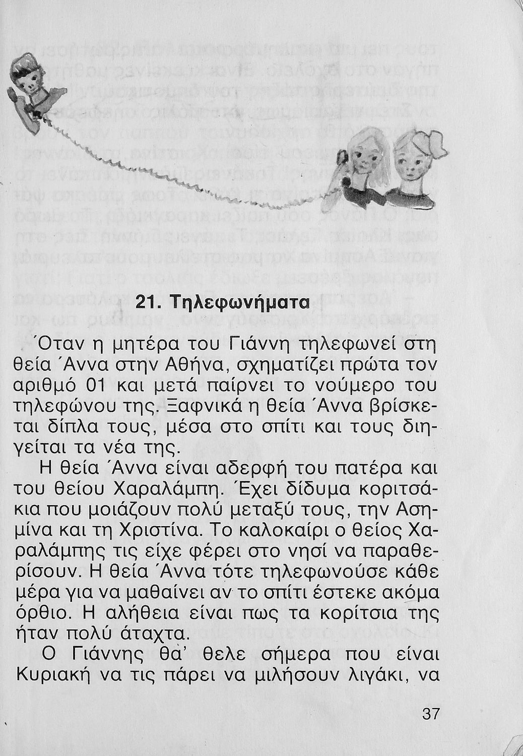 Αναγνωστικό Β' Δημοτικού που περιλαμβάνει μικρά διηγήματα και ποιήματα με περιεχόμενο από την οικογενειακή και κοινωνική ζωή, την ελληνική φύση, την ελληνική ιστορία και μυθολογία και την υγιεινή.