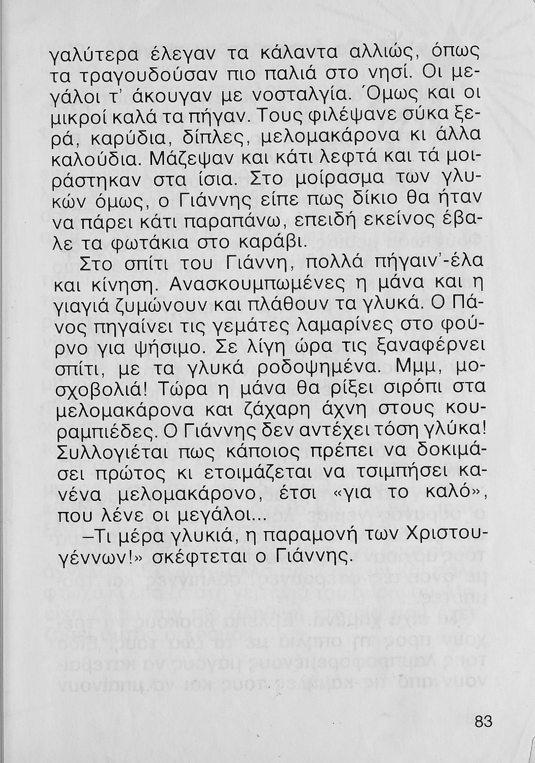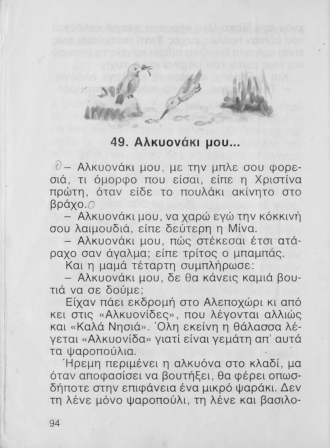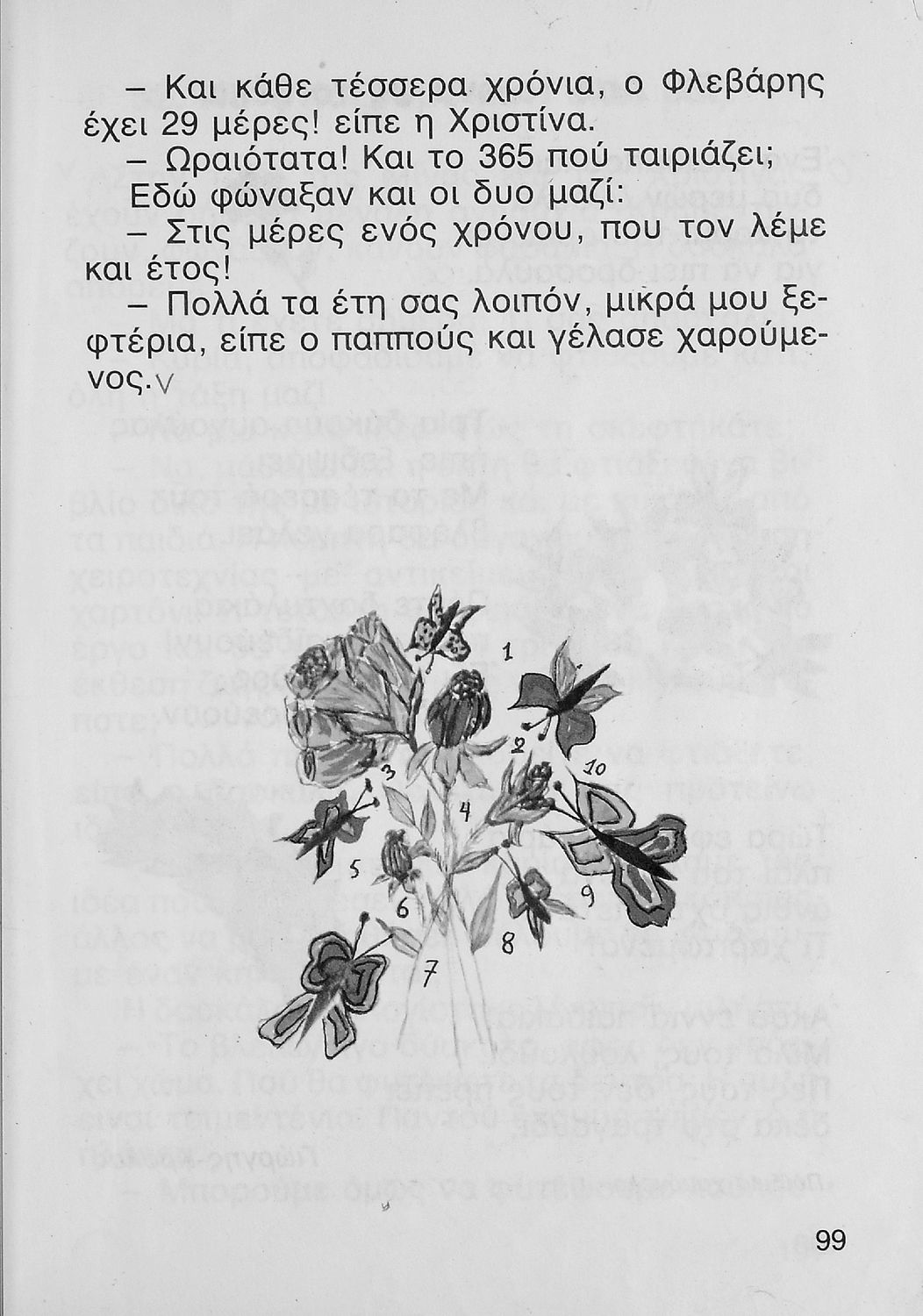 Αναγνωστικό Β' Δημοτικού που περιλαμβάνει μικρά διηγήματα και ποιήματα με περιεχόμενο από την οικογενειακή και κοινωνική ζωή, την ελληνική φύση, την ελληνική ιστορία και μυθολογία και την υγιεινή.