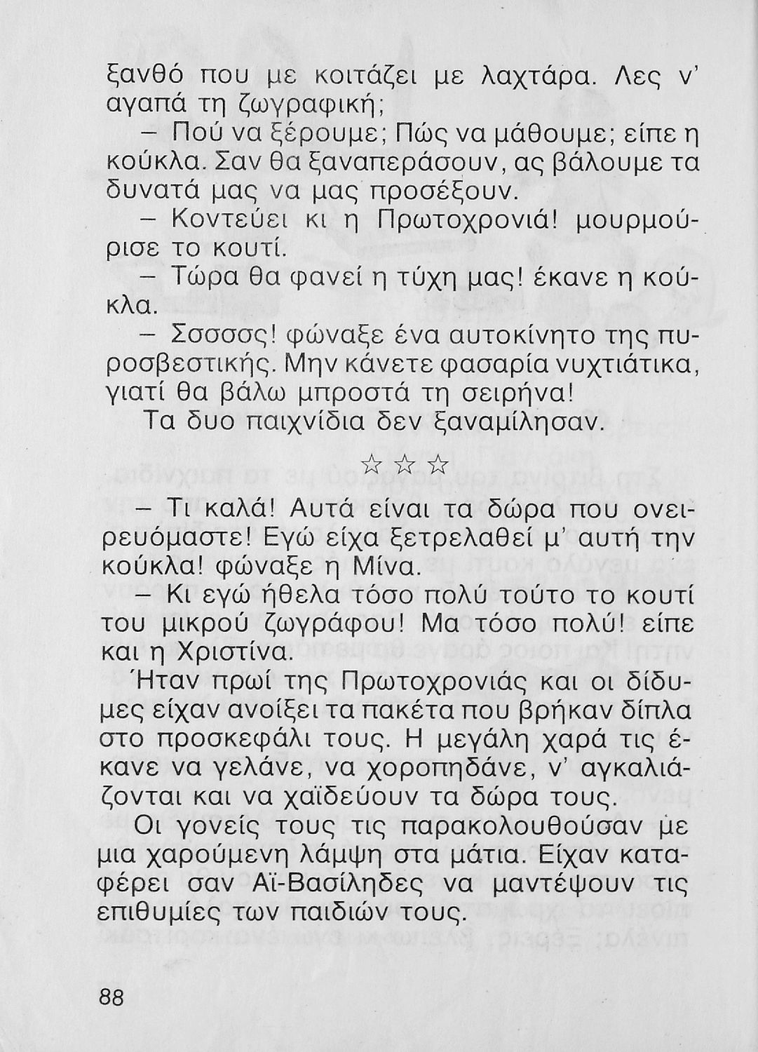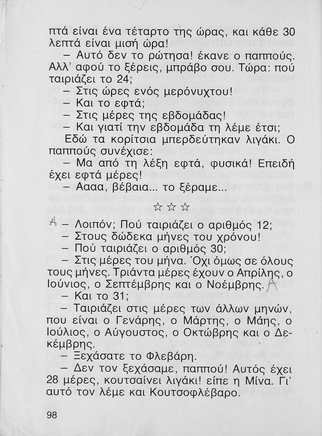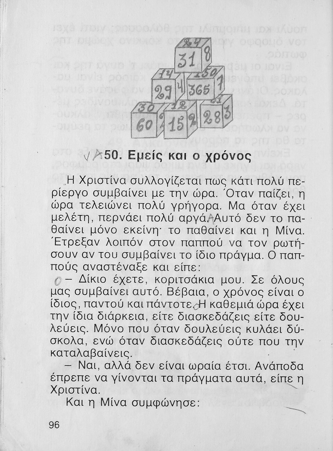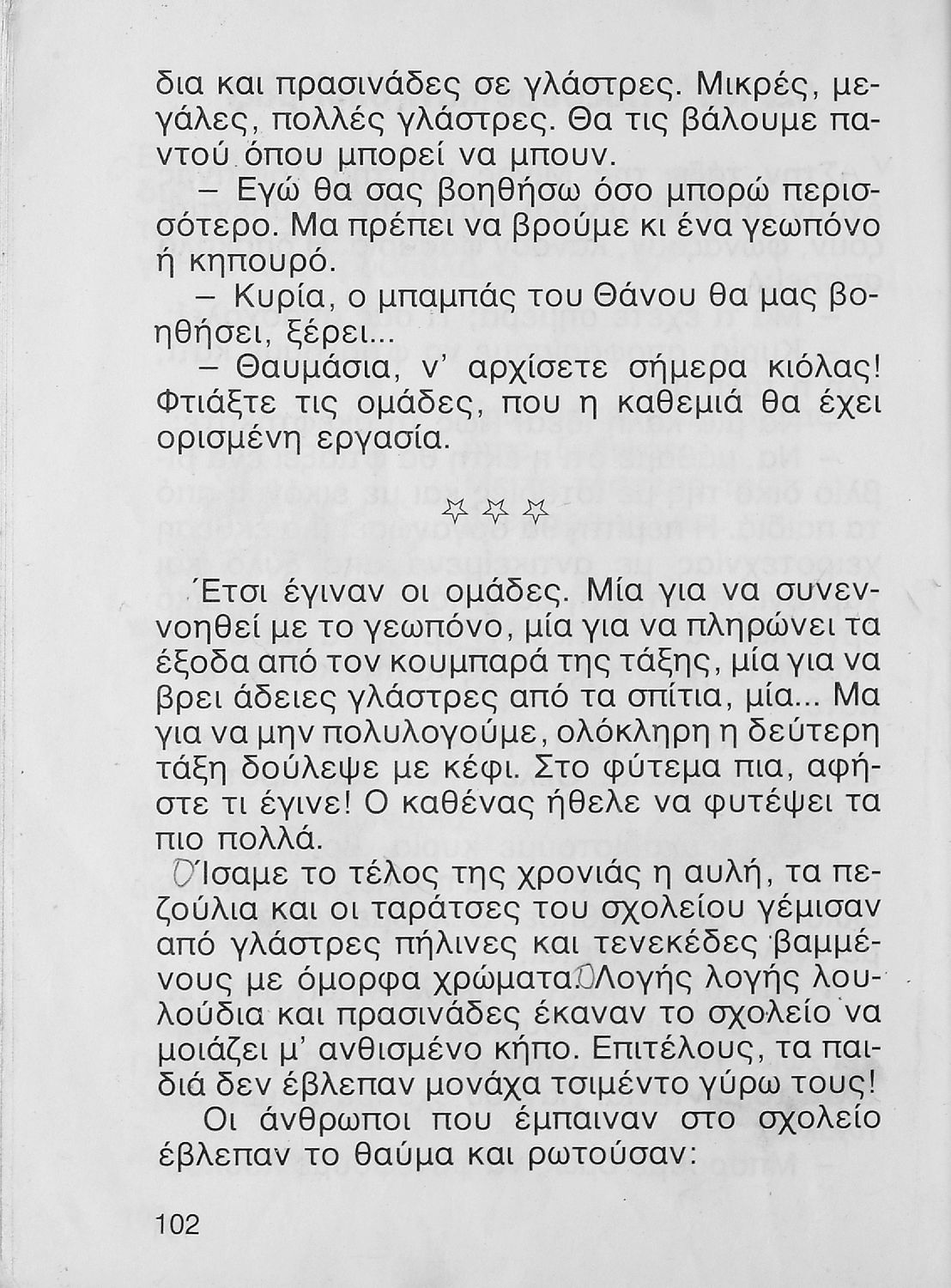 Αναγνωστικό Β' Δημοτικού που περιλαμβάνει μικρά διηγήματα και ποιήματα με περιεχόμενο από την οικογενειακή και κοινωνική ζωή, την ελληνική φύση, την ελληνική ιστορία και μυθολογία και την υγιεινή.