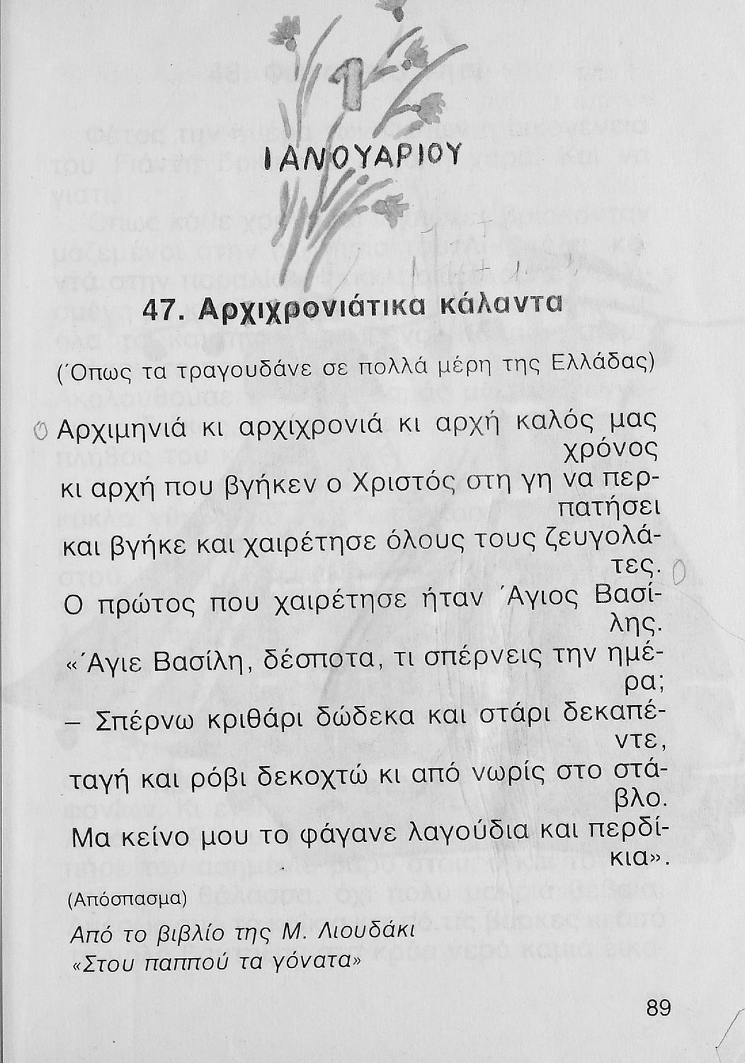 Αναγνωστικό Β' Δημοτικού που είναι χωρισμένο σύμφωνα με τις εποχές του χρόνου και περιλαμβάνει κείμενα ηθοποιητικού περιεχομένου εμπνευσμένα από τη θρησκευτική, εθνική, κοινωνική και οικογενειακή ζωή. Φέρει το