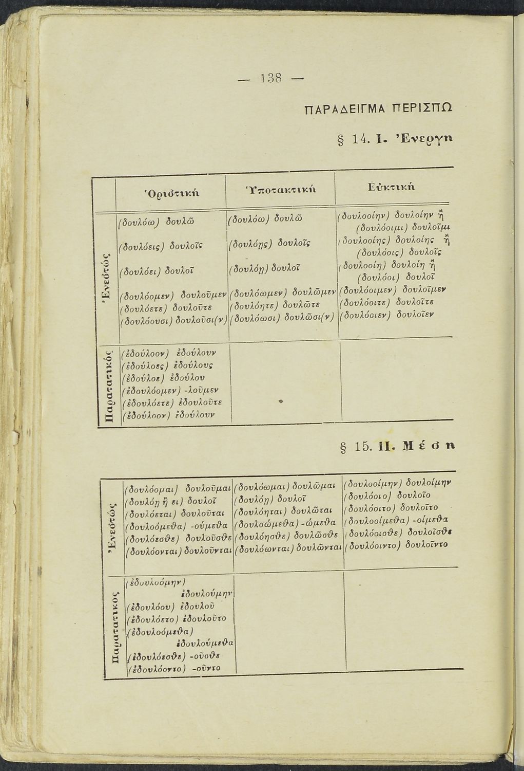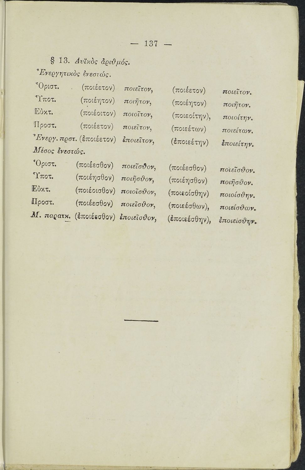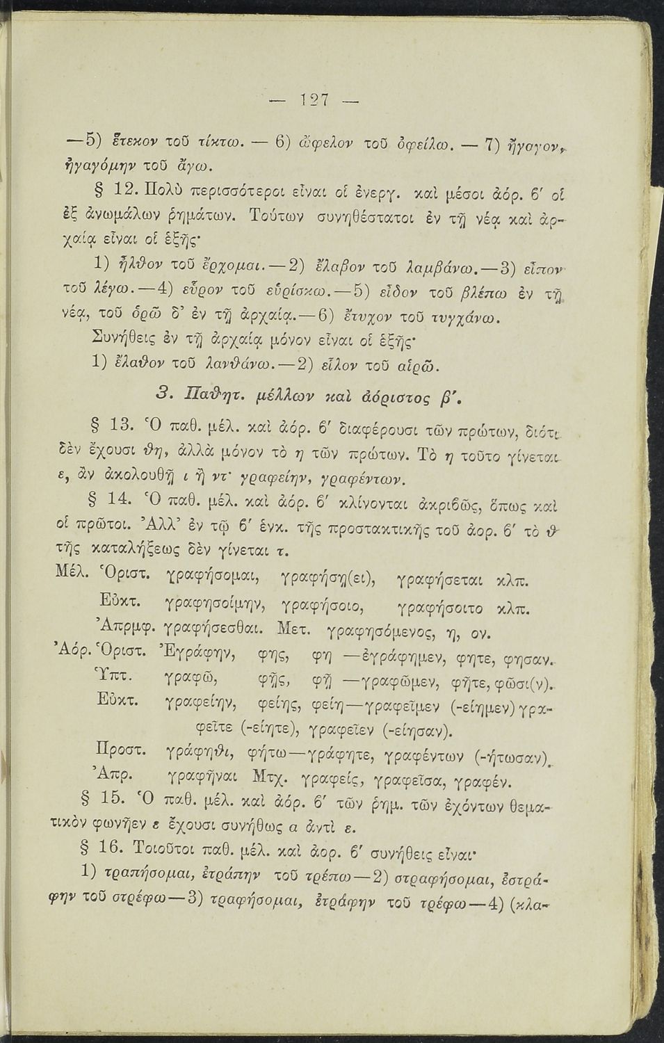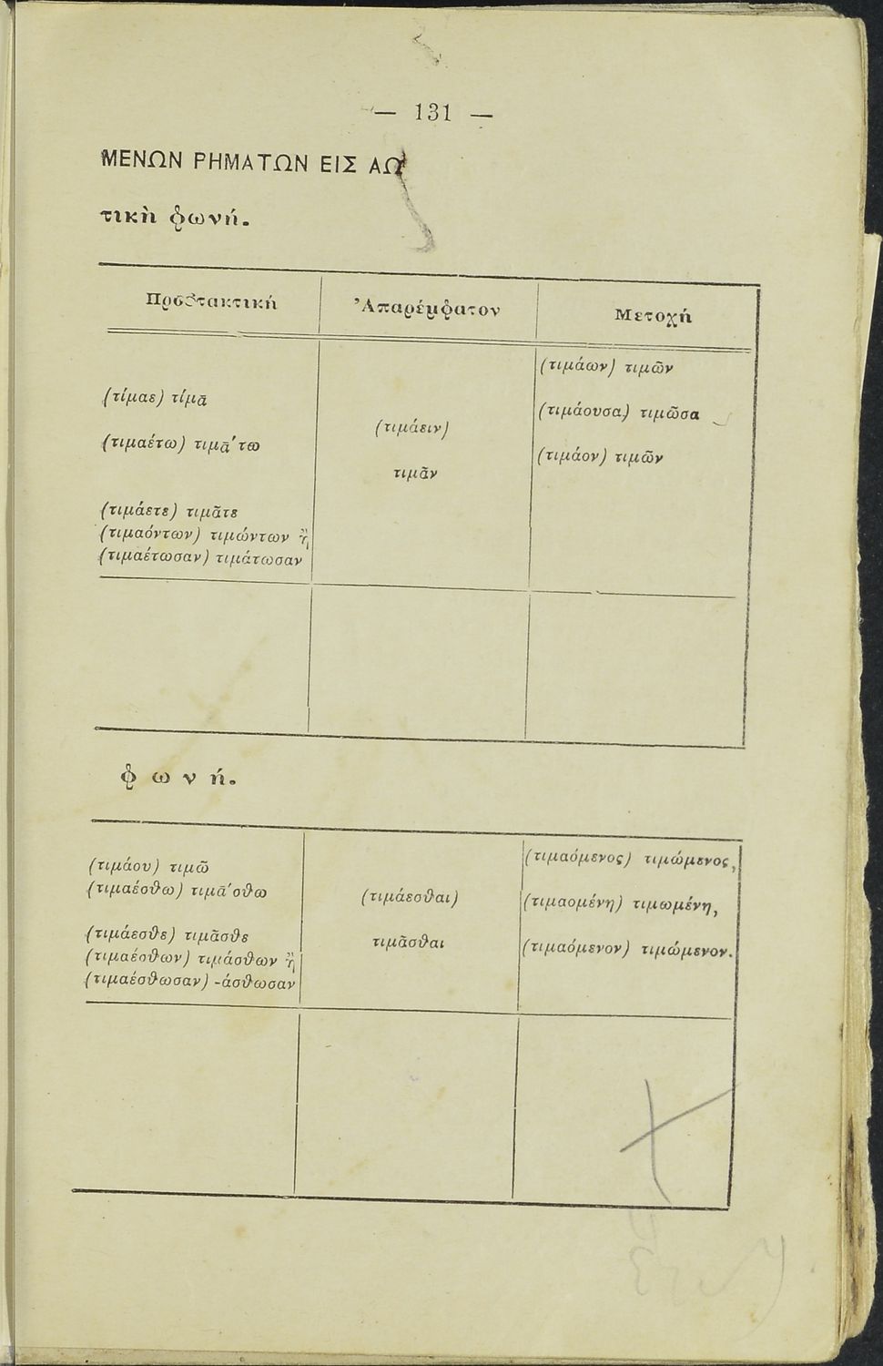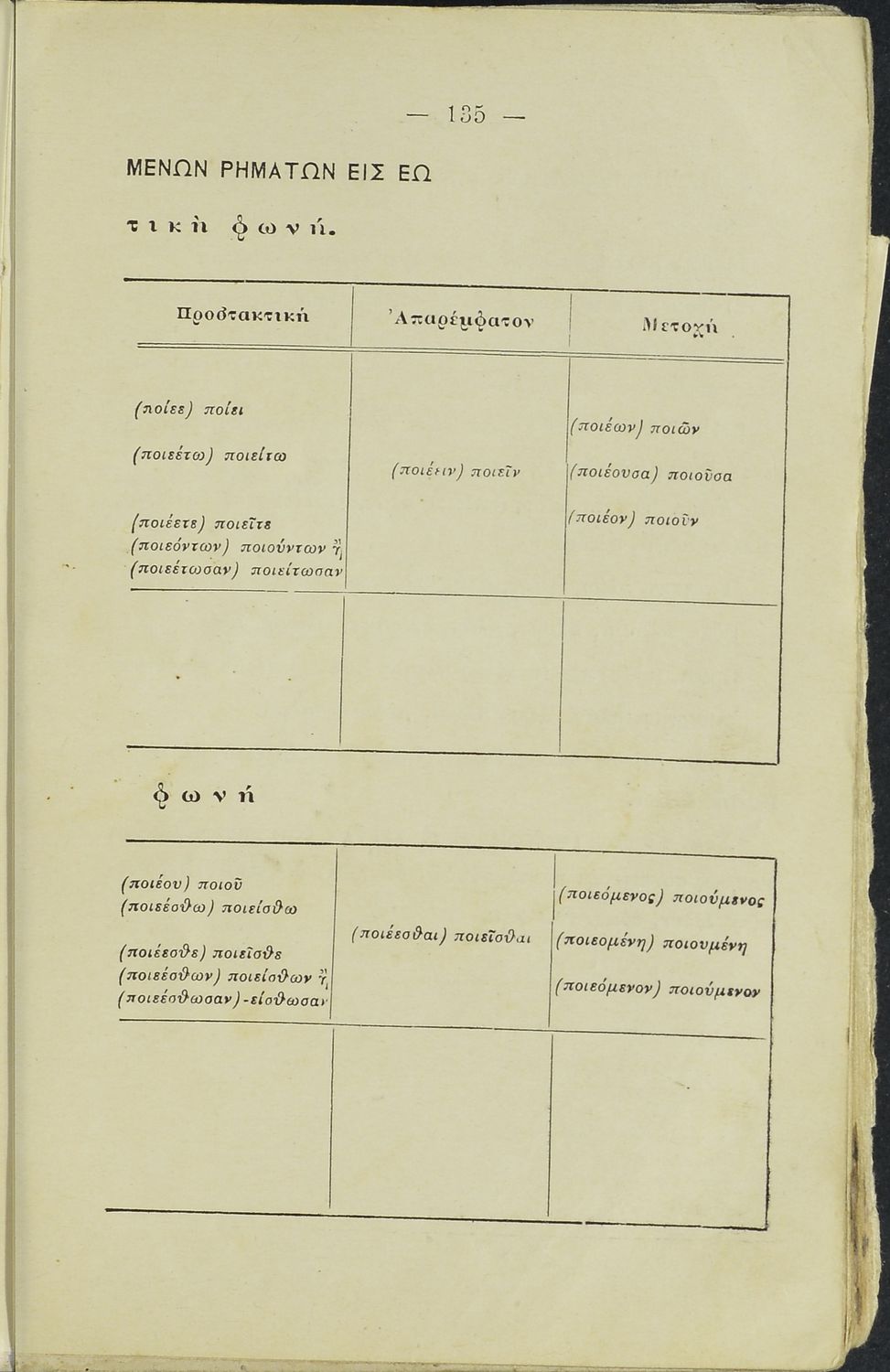 Σχολικό εγχειρίδιο Αρχαίων Ελληνικών για τα Ελληνικά Σχολεία και Παρθεναγωγεία που περιέχει τους κανόνες γραμματικής και είναι χωρισμένο σε φθογγολογικό, τυπολογικό και ετυμολογικό μέρος.