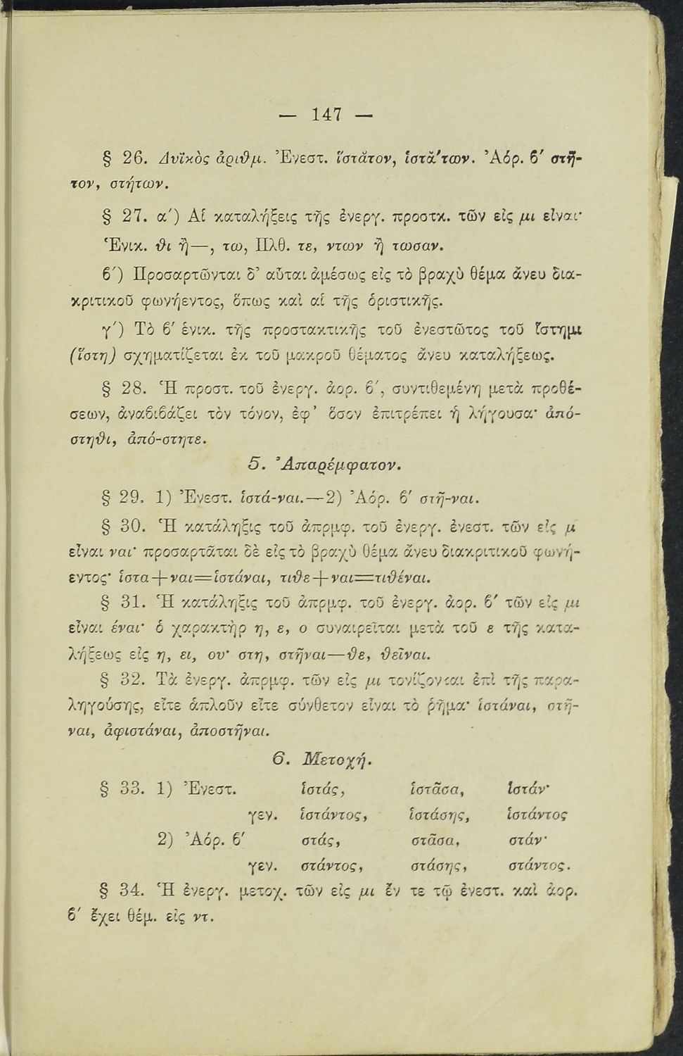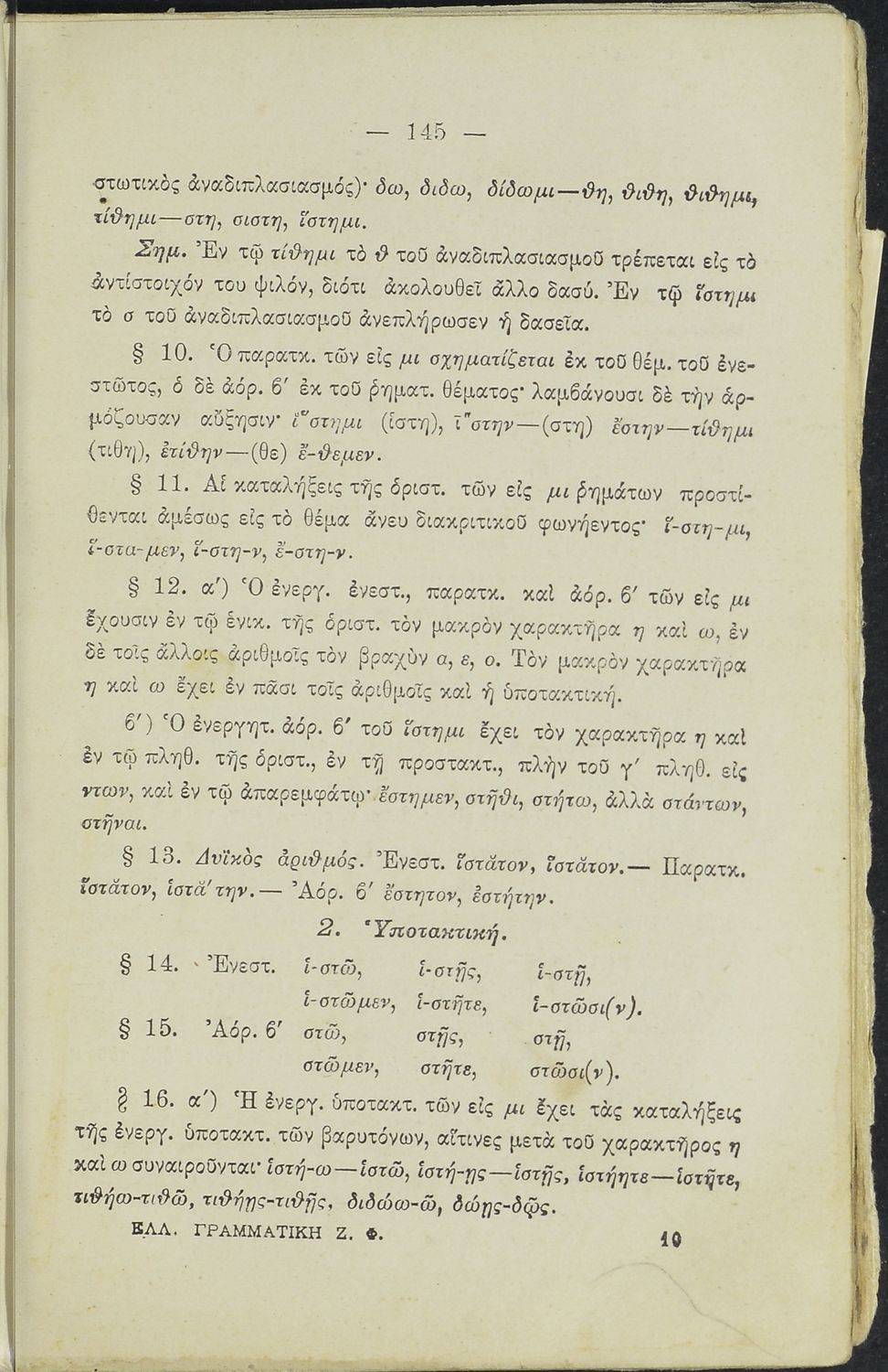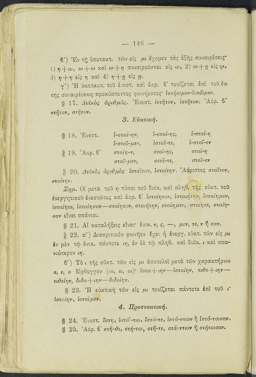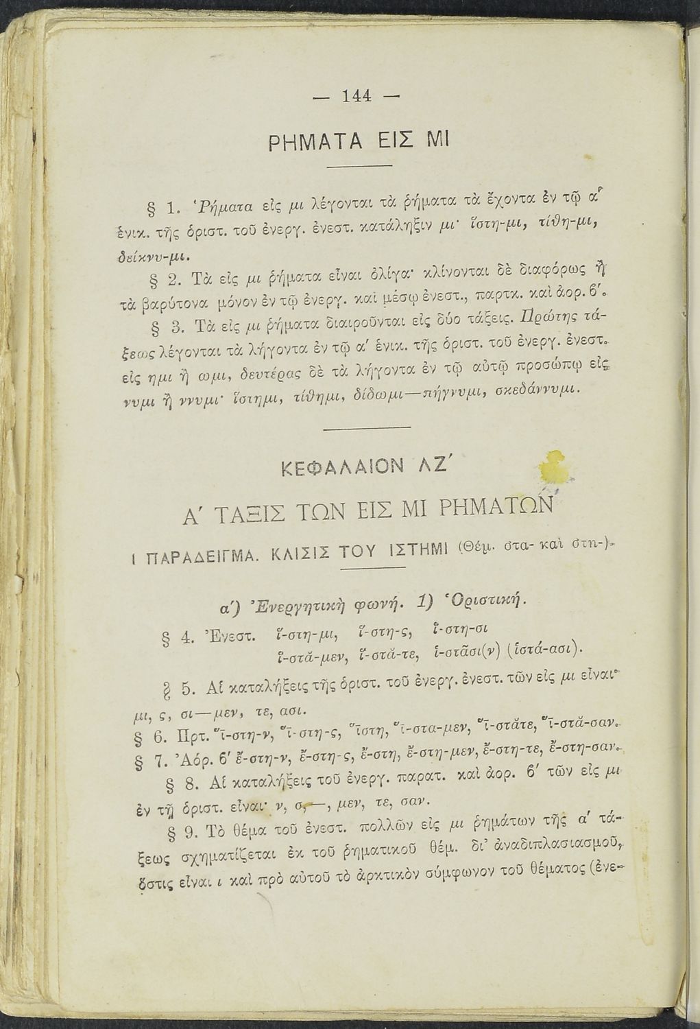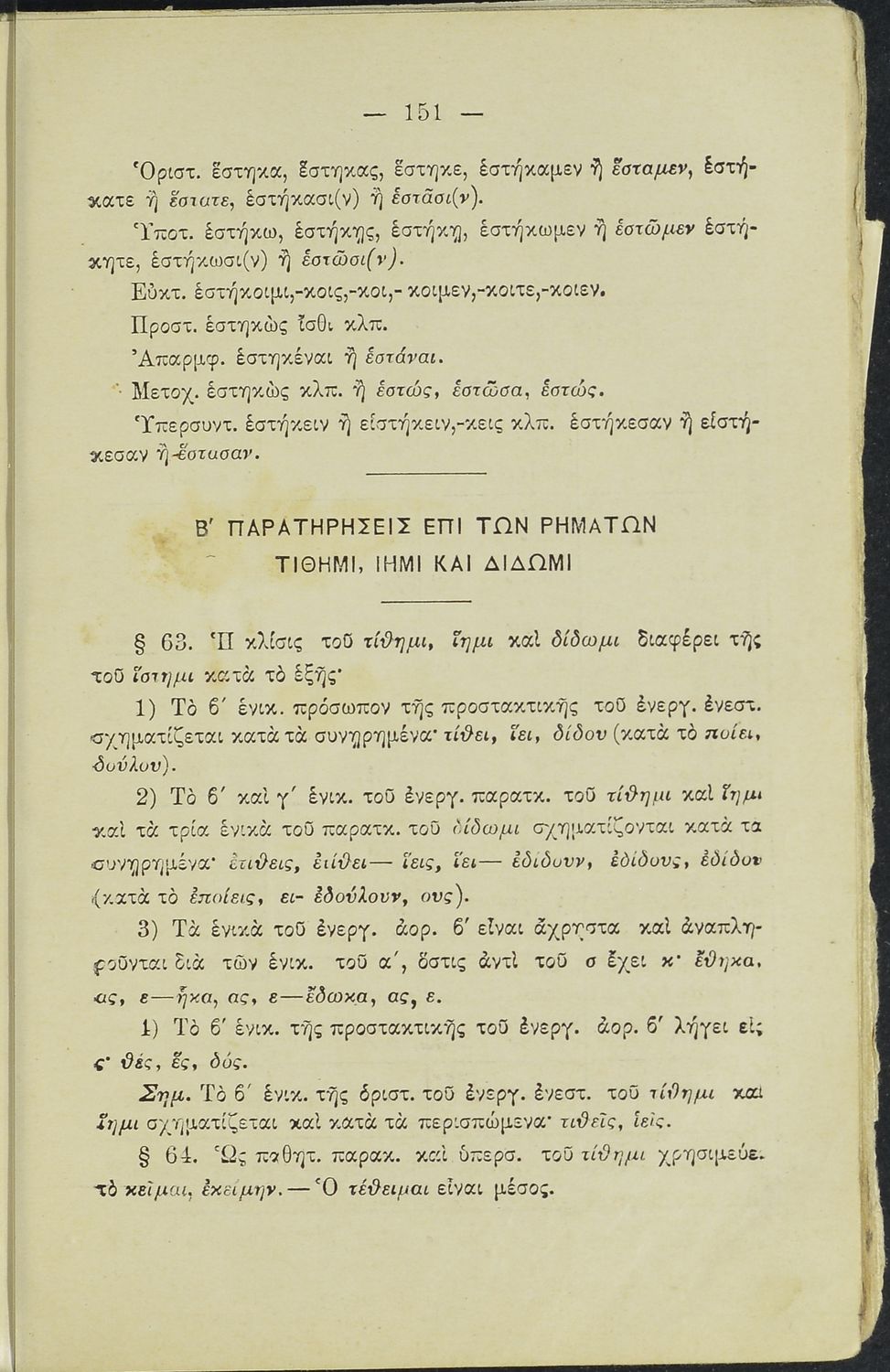 Σχολικό εγχειρίδιο Αρχαίων Ελληνικών για τα Ελληνικά Σχολεία και Παρθεναγωγεία που περιέχει τους κανόνες γραμματικής και είναι χωρισμένο σε φθογγολογικό, τυπολογικό και ετυμολογικό μέρος.