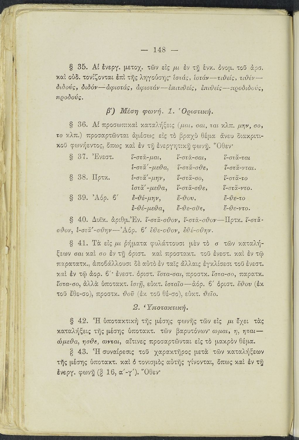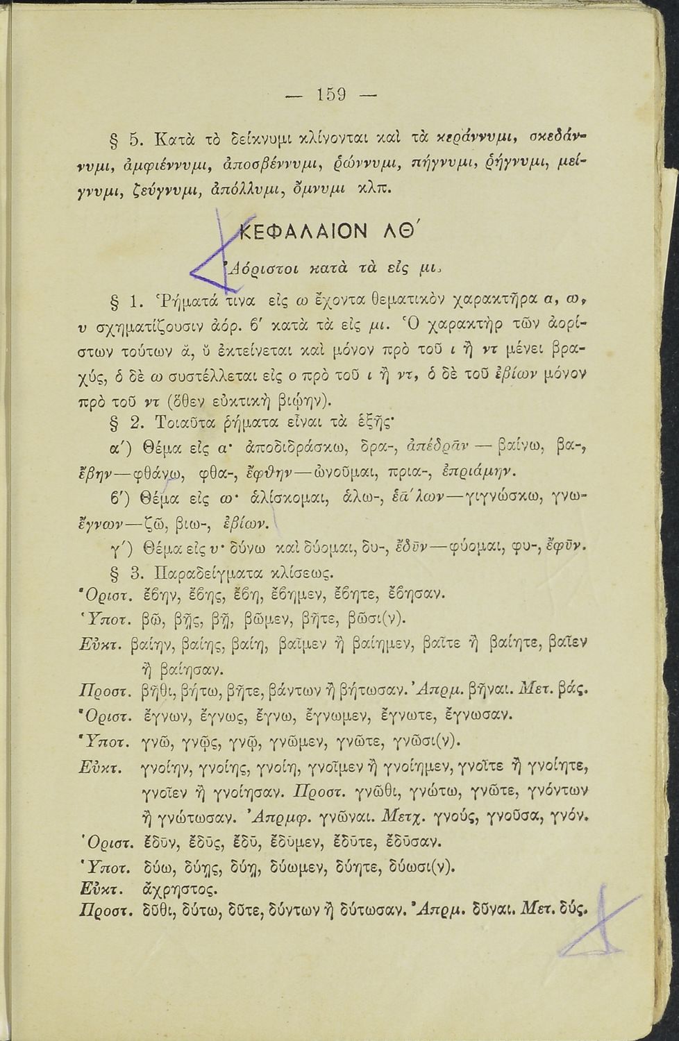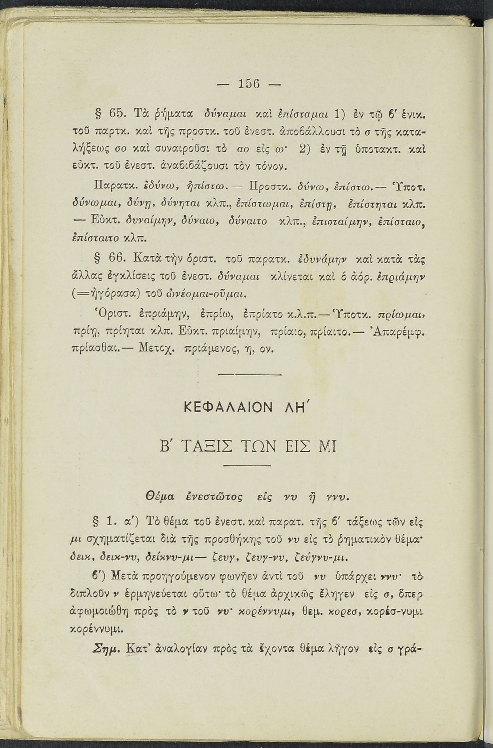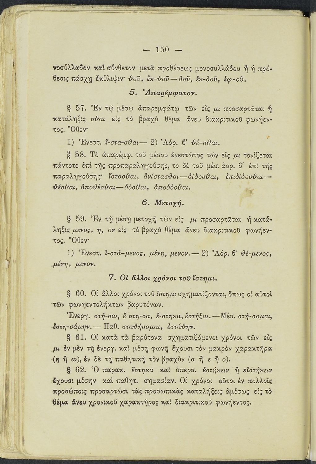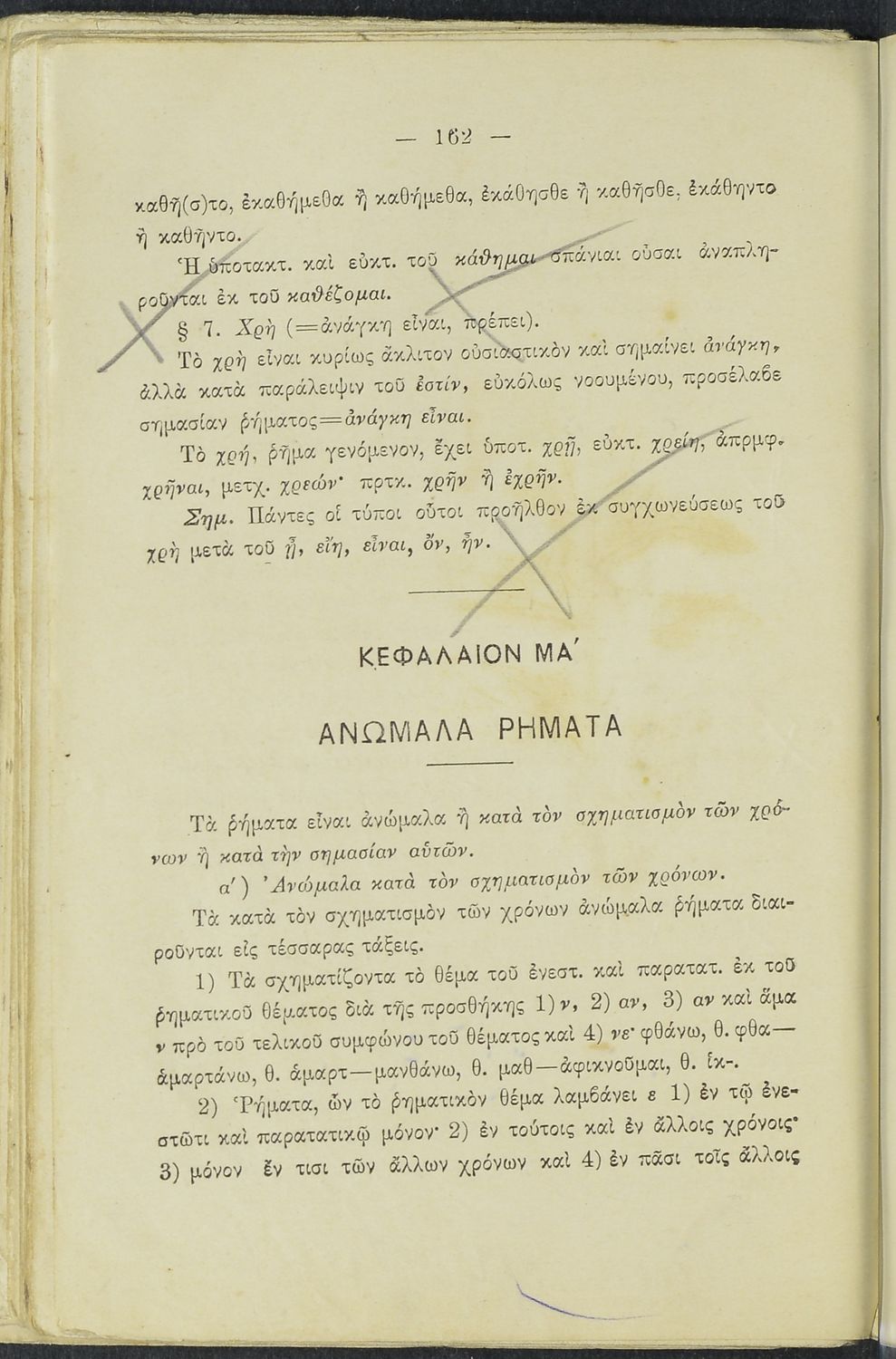 Σχολικό εγχειρίδιο Αρχαίων Ελληνικών για τα Ελληνικά Σχολεία και Παρθεναγωγεία που περιέχει τους κανόνες γραμματικής και είναι χωρισμένο σε φθογγολογικό, τυπολογικό και ετυμολογικό μέρος.