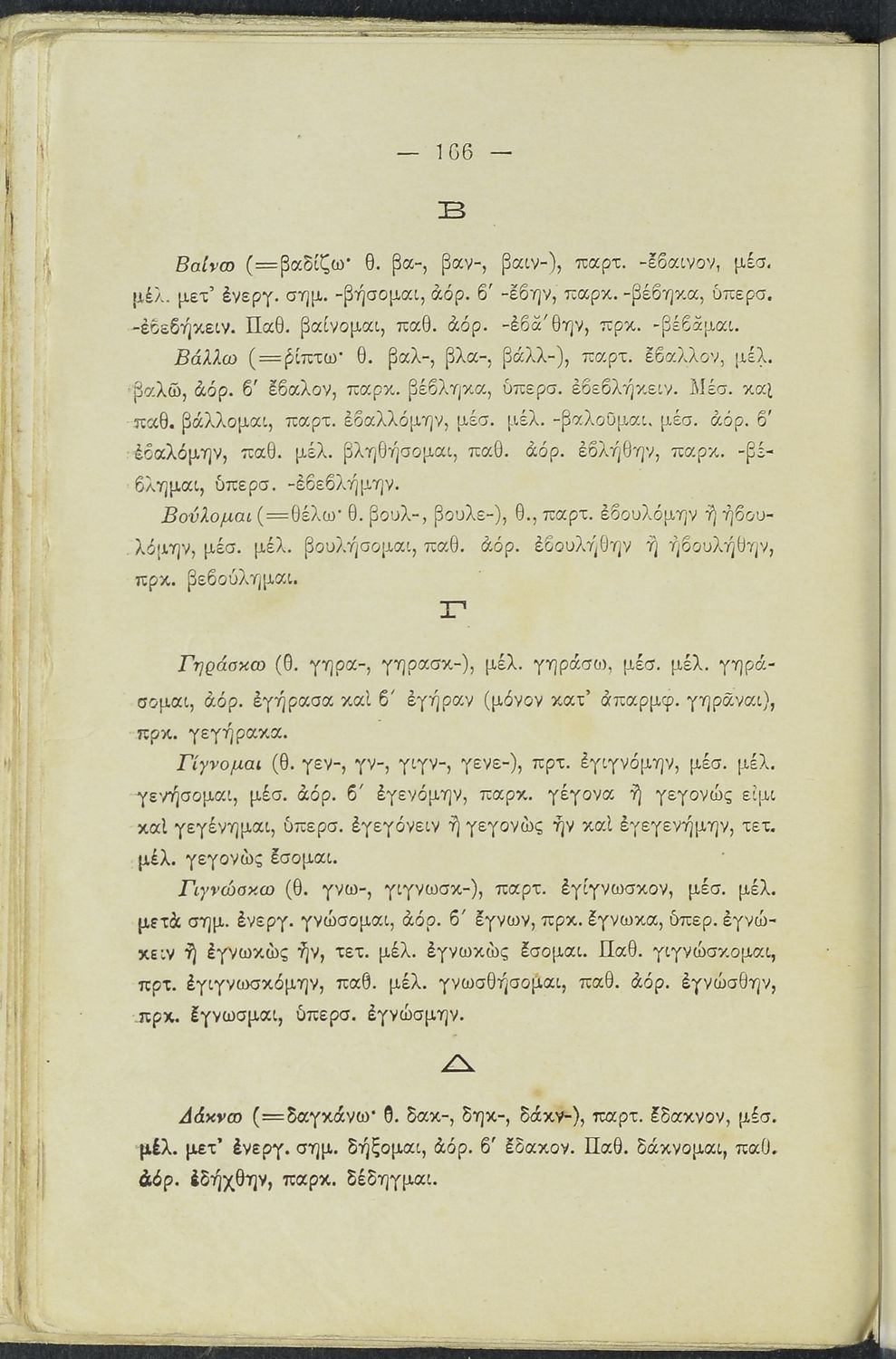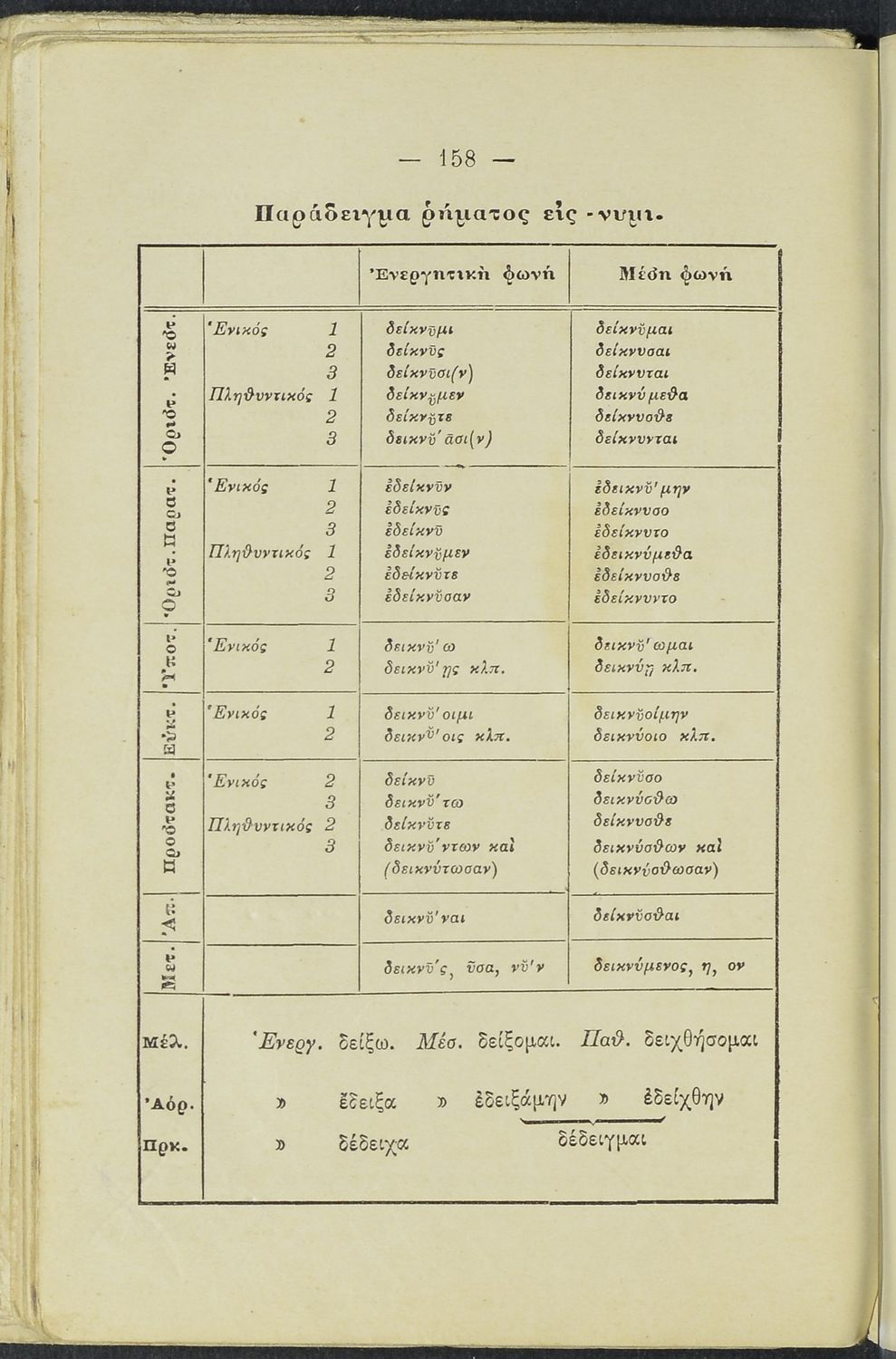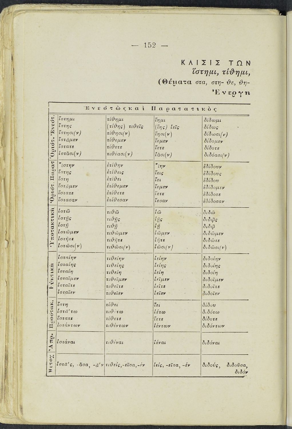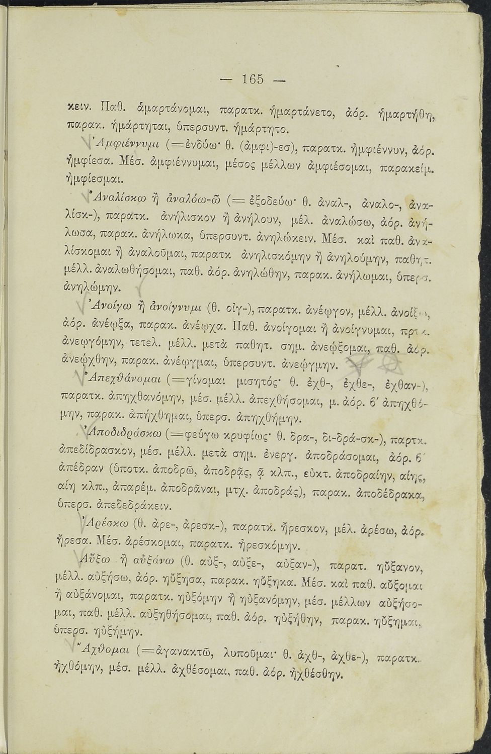 Μαθητικό βοήθημα Αρχαίων Ελληνικών για τα Ελληνικά Σχολεία, Παρθεναγωγεία και Γυμνάσια που περιλαμβάνει γραμματική της αρχαίας ελληνικής και κατάλογο ανωμάλων ρημάτων.