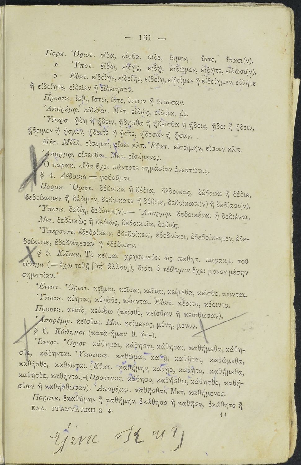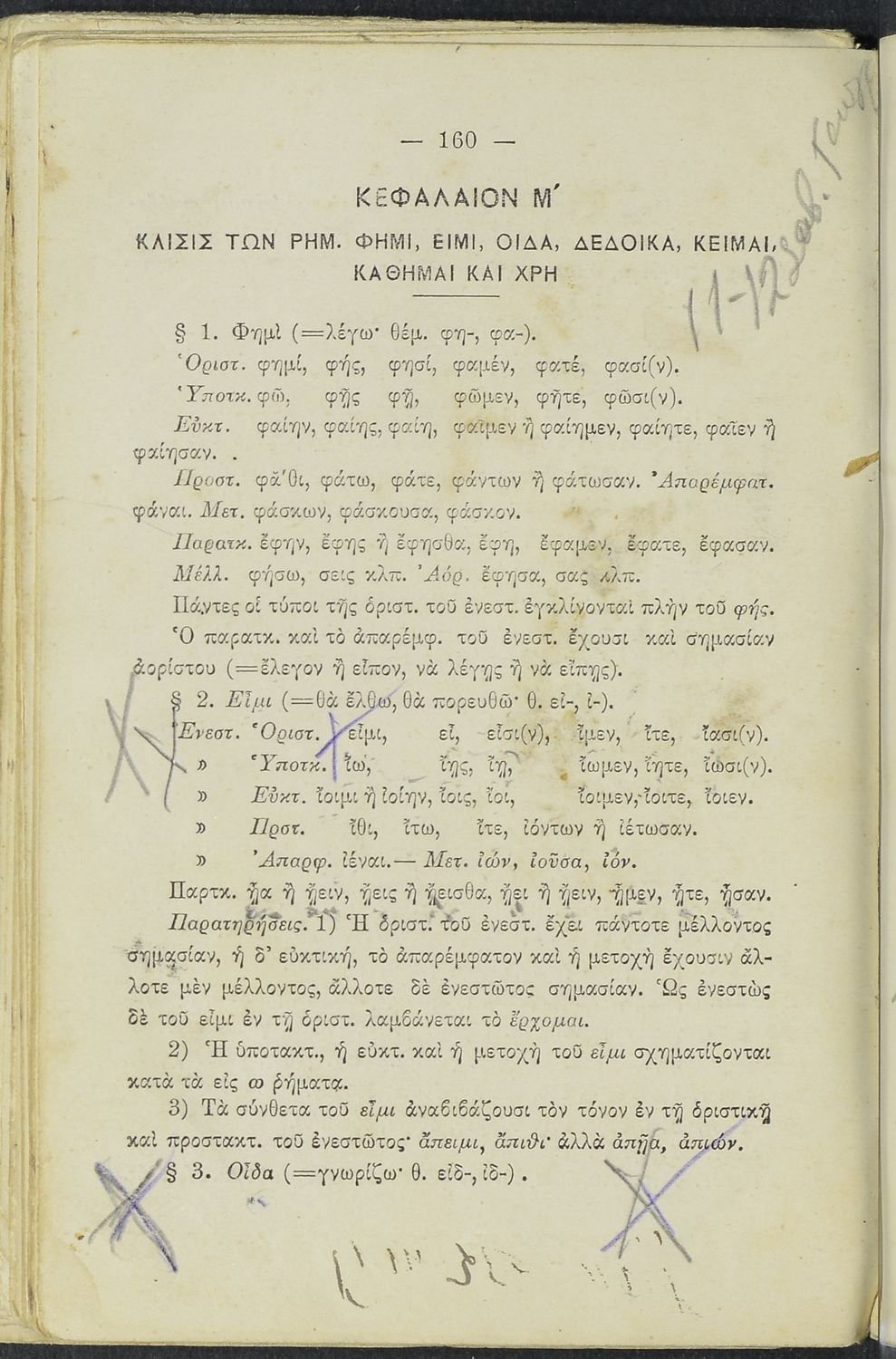 Σχολικό εγχειρίδιο Αρχαίων Ελληνικών Γυμνασίου που περιλαμβάνει τους κανόνες γραμματικής και είναι χωρισμένη στο φθογγολογικό, το τυπολογικό και ετυμολογικό μέρος.