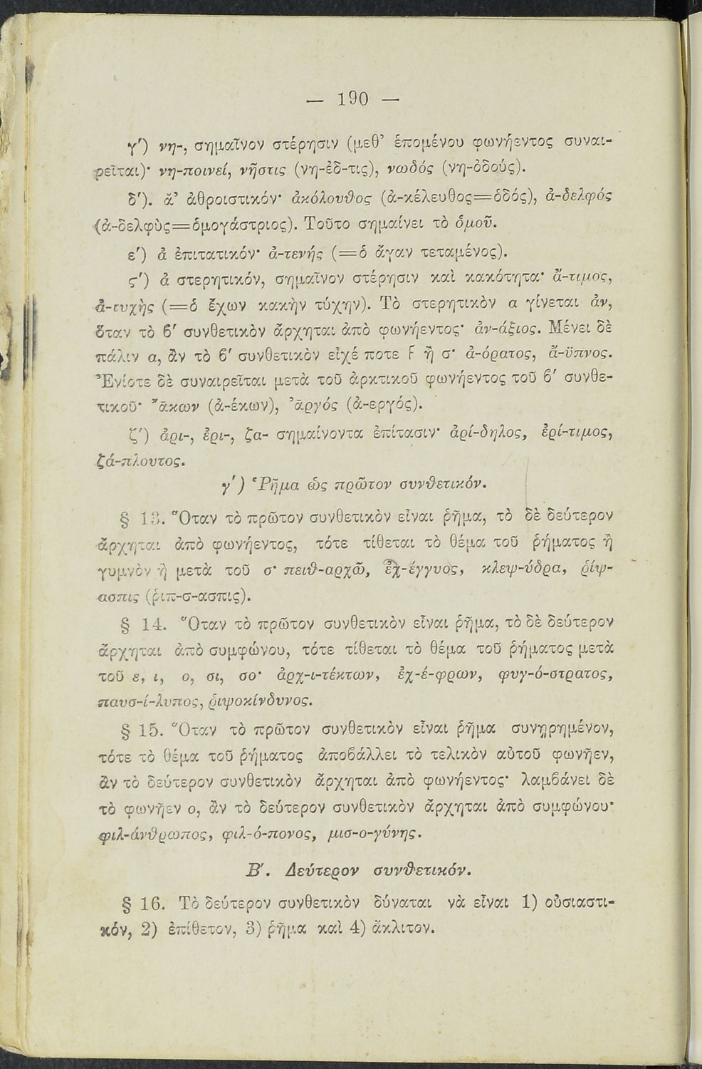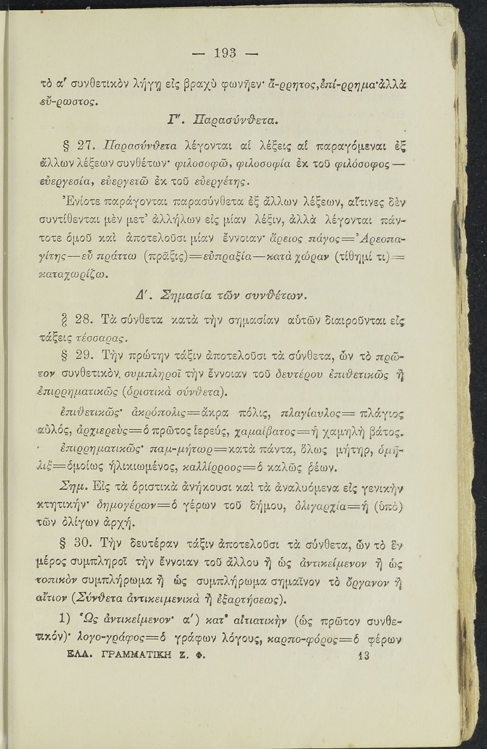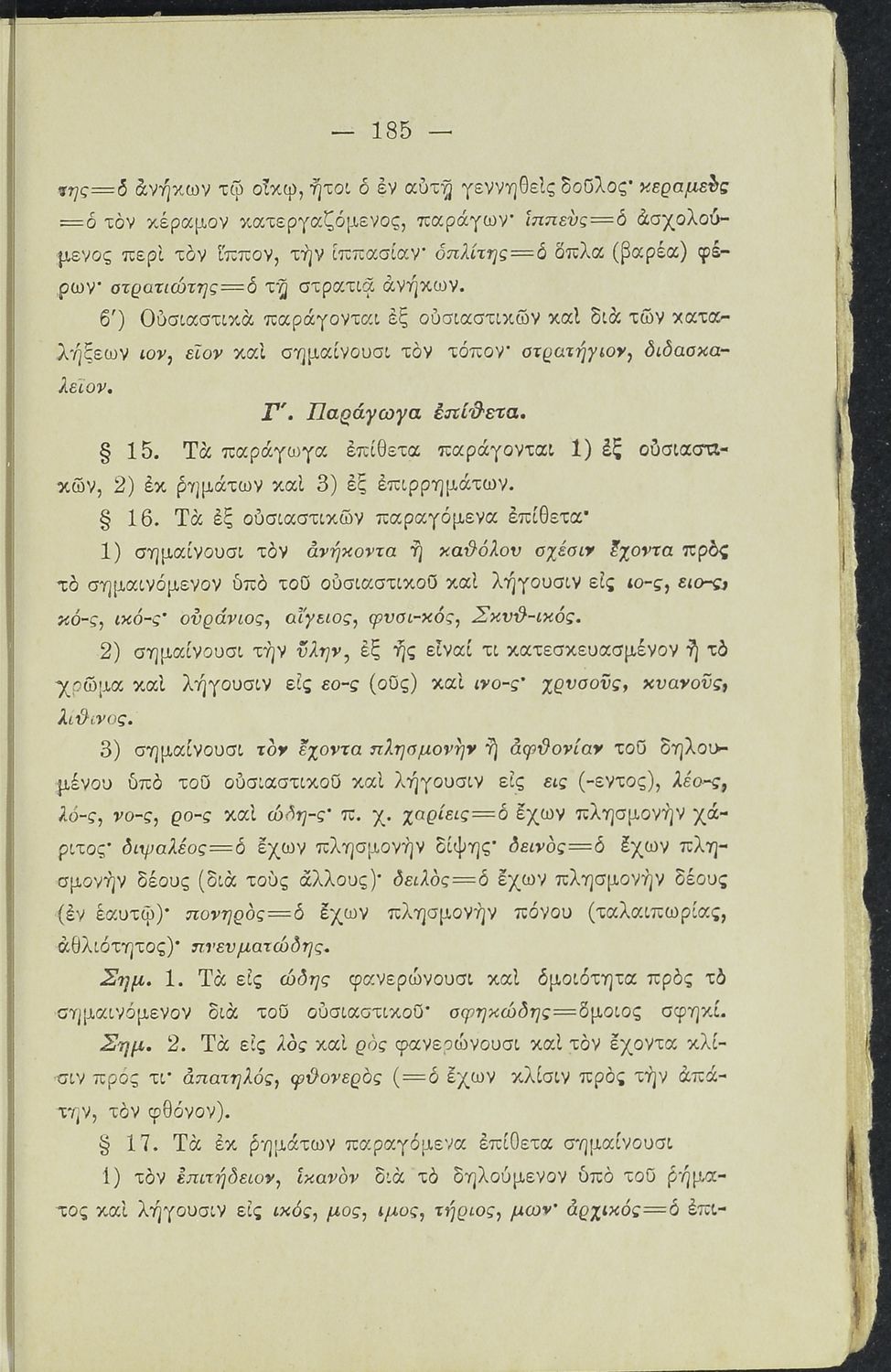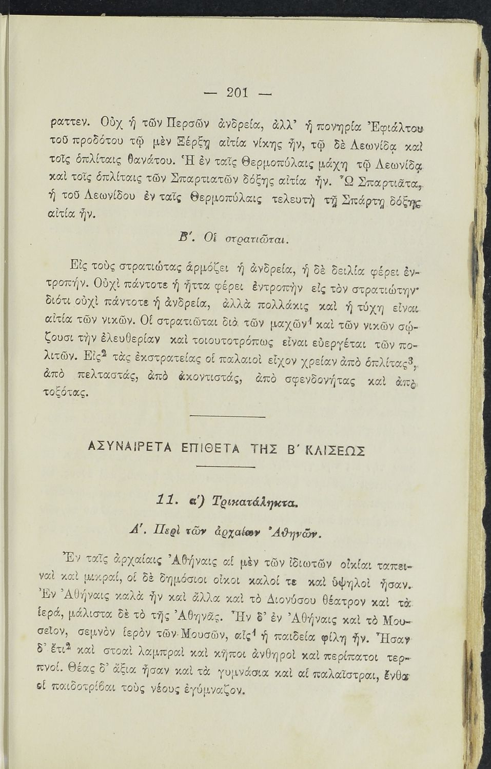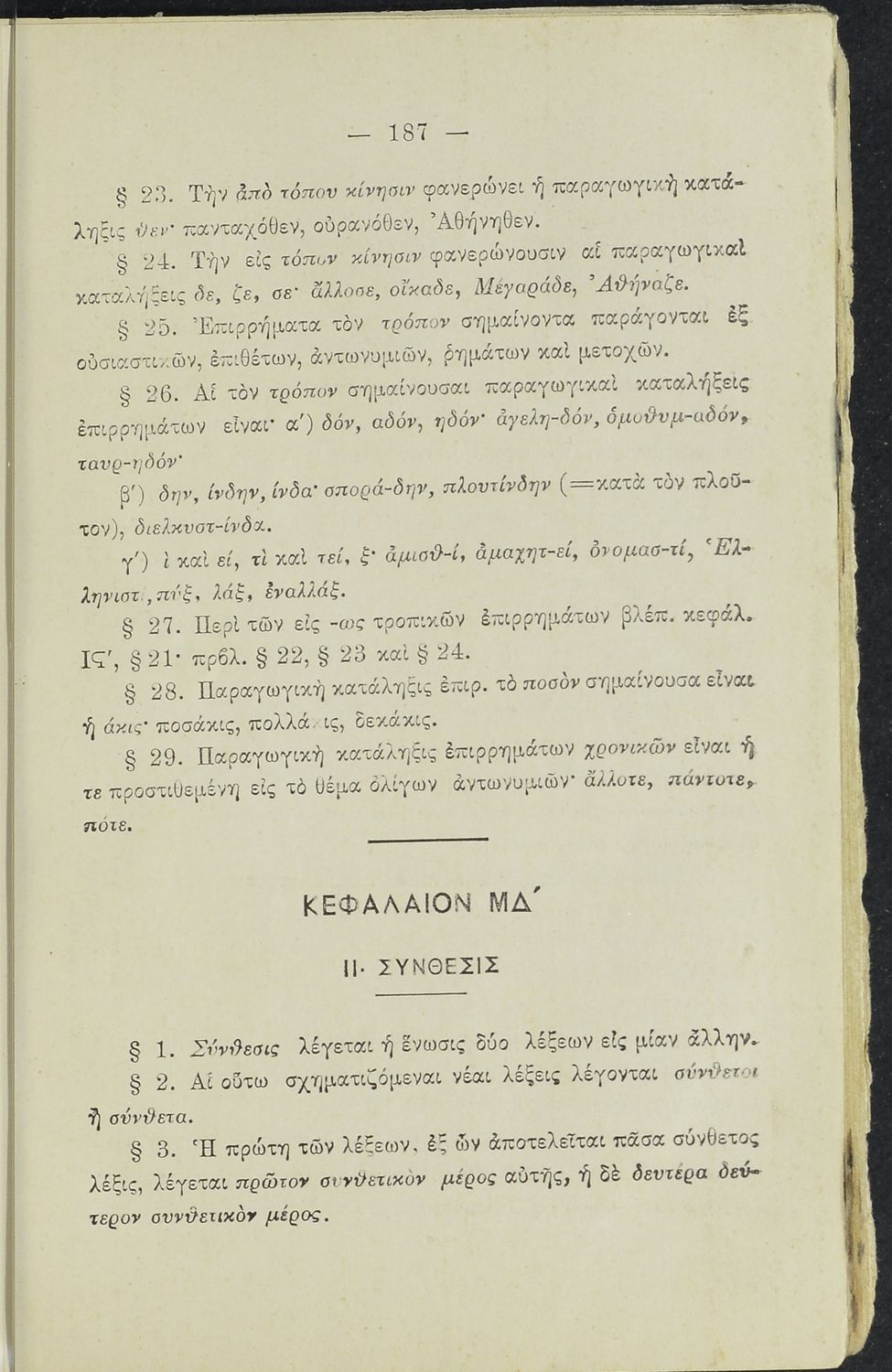 Σχολικό εγχειρίδιο Αρχαίων Ελληνικών για τα Ελληνικά Σχολεία και Παρθεναγωγεία που περιέχει τους κανόνες γραμματικής και είναι χωρισμένο σε φθογγολογικό, τυπολογικό και ετυμολογικό μέρος.