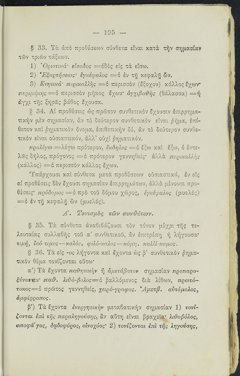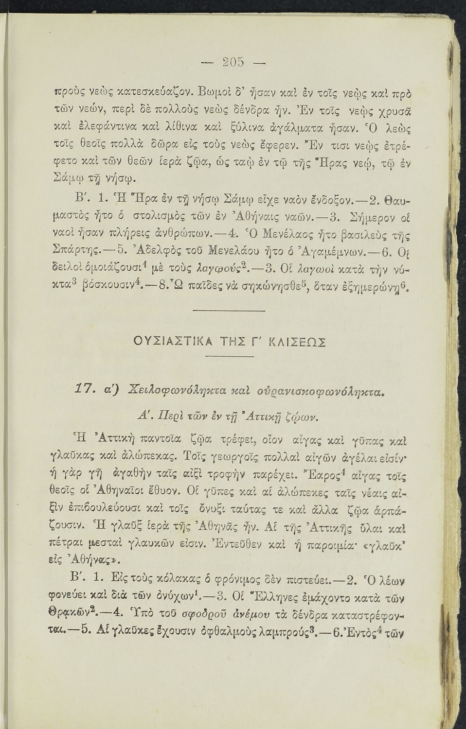 Σχολικό εγχειρίδιο Αρχαίων Ελληνικών για τα Ελληνικά Σχολεία, Παρθεναγωγεία και Γυμνάσια που περιέχει τους κανόνες γραμματικής και είναι χωρισμένο σε φθογγολογικό, τυπολογικό και ετυμολογικό μέρος.