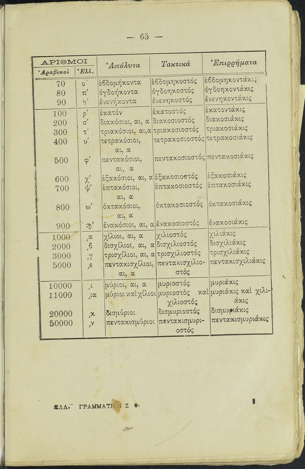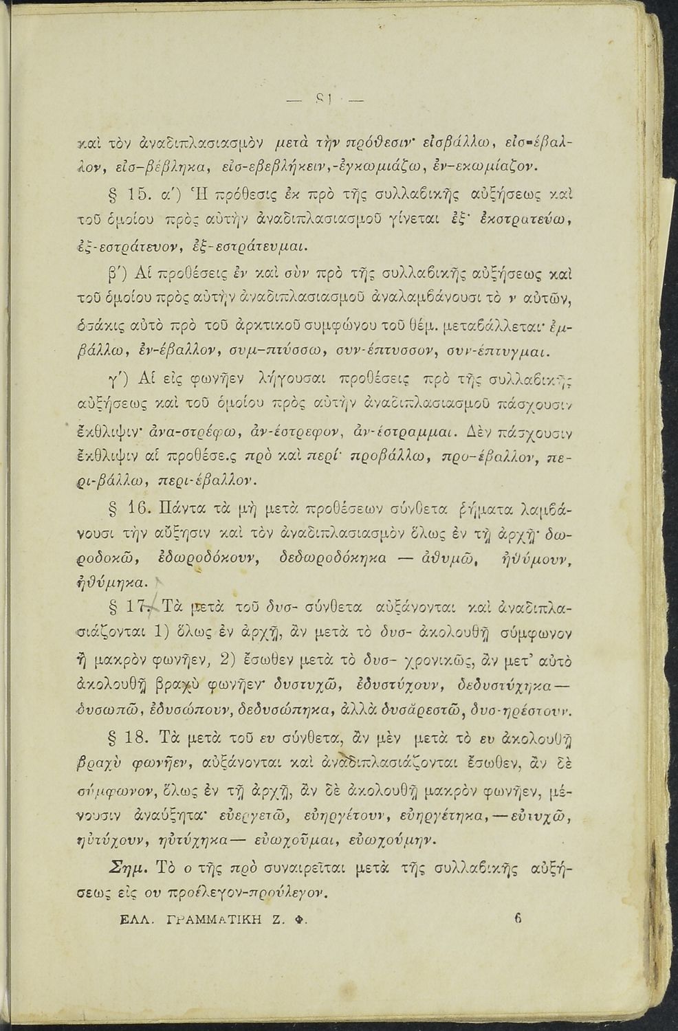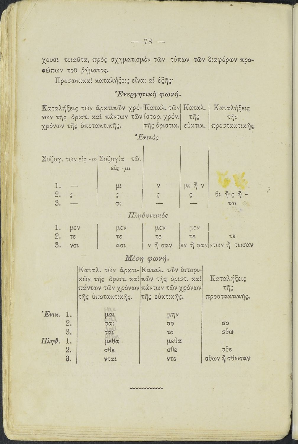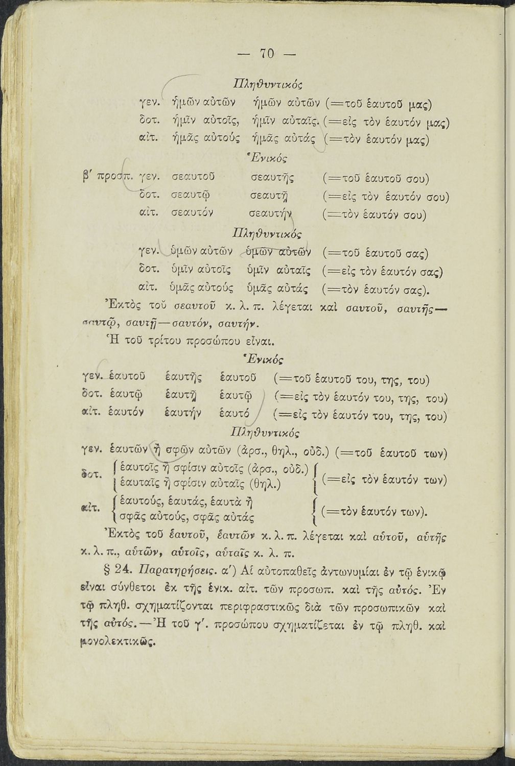 Σχολικό εγχειρίδιο Αρχαίων Ελληνικών για τα Ελληνικά Σχολεία και Παρθεναγωγεία που περιέχει τους κανόνες γραμματικής και είναι χωρισμένο σε φθογγολογικό, τυπολογικό και ετυμολογικό μέρος.