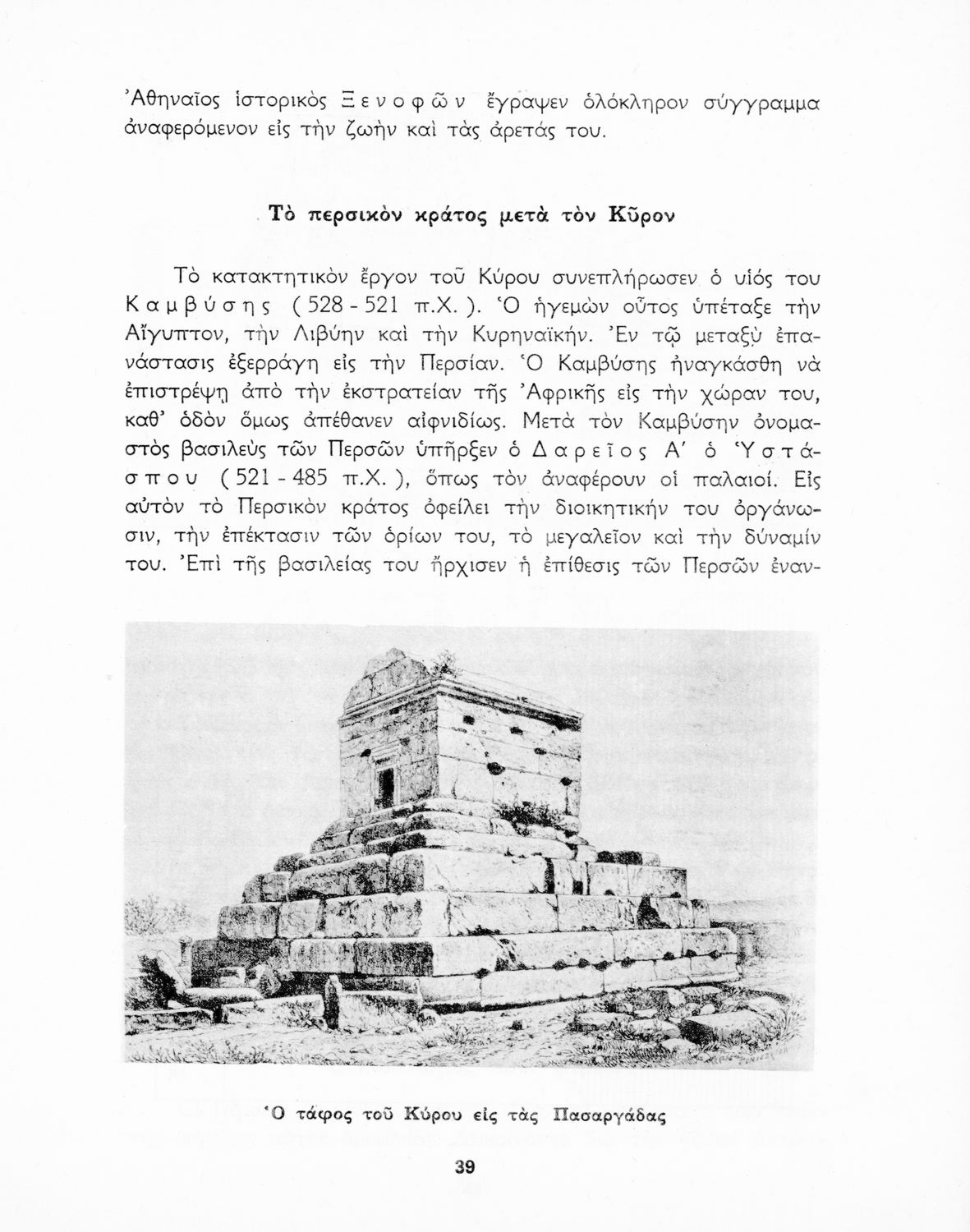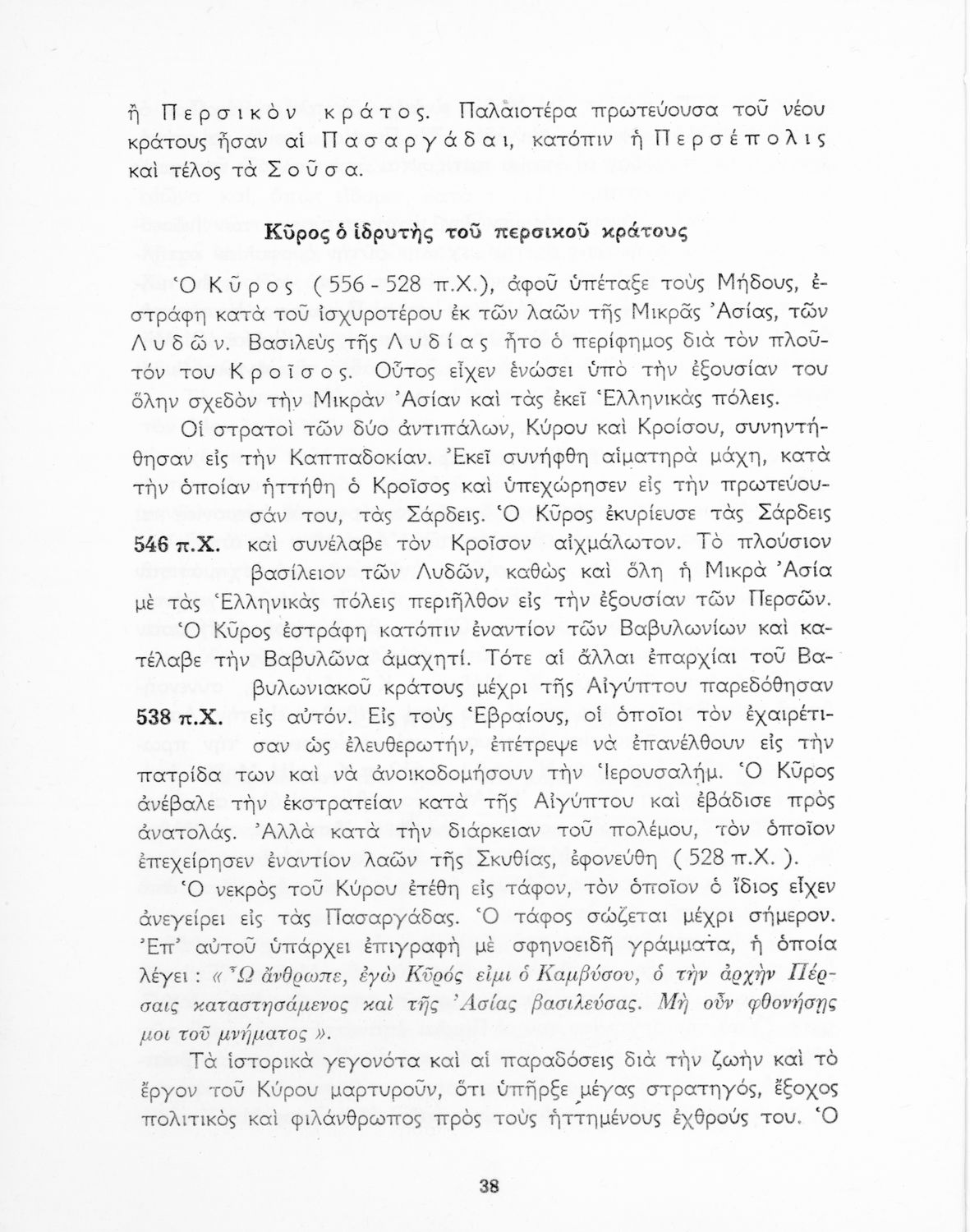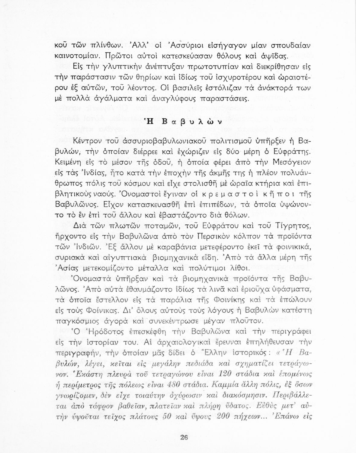 Βαθμίδα εκπαίδευσης: Δευτεροβάθμια Τάξη: Β' Γυμνασίου Μάθημα: Ιστορία Γλώσσα: Απλή καθαρεύουσα Παρουσίαση περιεχομένου: Σχολικό εγχειρίδιο Ιστορίας Β΄ Γυμνασίου που καλύπτει την περίοδο από την περίοδο από την εμφάνιση των πρώτων πολιτισμών μέχρι τη Μακεδονική Ηγεμονία. |