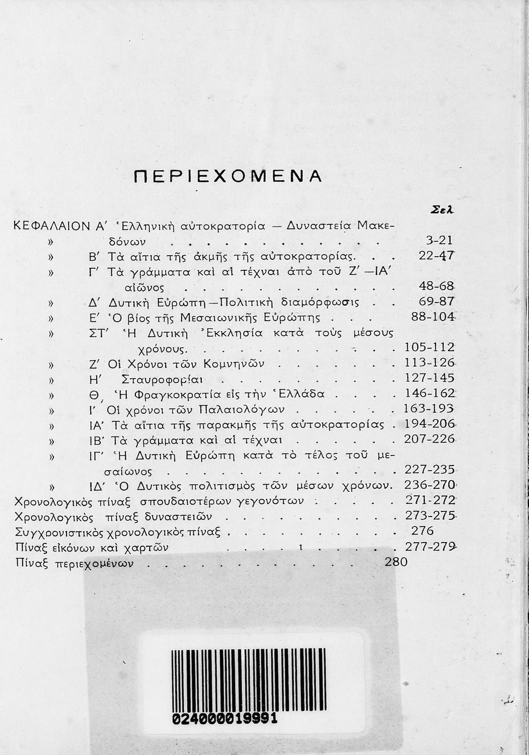 Τίτλος: Ιστορία Ελληνική και Ευρωπαϊκή των Μέσων Χρόνων. Δια την Δ΄ τάξιν των Γυμνασίων και τας αντίστοιχους των λοιπών σχολείων της Μέσης Εκπαίδευσης.
