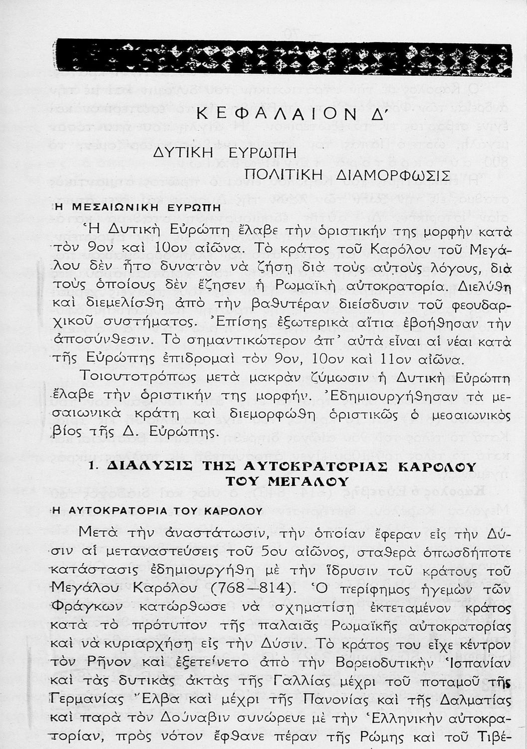 Σχολικό εγχειρίδιο Ιστορίας Δ΄ Γυμνασίου που εξετάζει την μεσαιωνική ιστορία σε Ελλάδα και Ευρώπη από την κατάρρευση του δυτικού ρωμαϊκού κράτος ως την άλωση της Κωνσταντινούπολης. Σχολιάζει και τις πολιτικές και πνευματικές εξελίξεις στην Ευρώπη. Περιέχει και χρονολογικό πίνακα με τις δυναστείες και τα σπουδαιότερα γεγονότα της περιόδου.