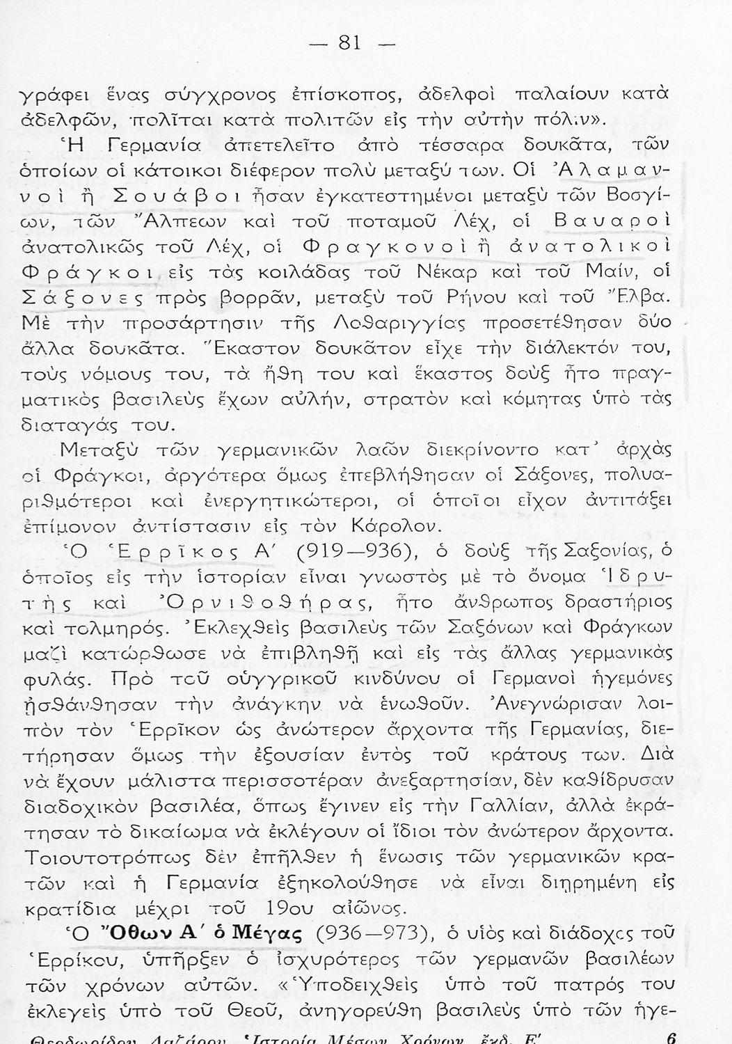 LDR 01677 2200217 4500 035 ## _a01-17708 040 ## _aΙνστιτούτο Εκπαιδευτικής Πολιτικής 041 ## _ael 100 ## _aΧ. Θεοδωρίδης _aΑ. Λαζάρου 110 ## _a17708 245 0# _aΙστορία Ελληνική και Ευρωπαϊκή των Μέσων Χρόνων. Δια την Δ΄ τάξιν των Γυμνασίων και τας αντίστοιχους των λοιπών σχολείων της Μέσης Εκπαίδευσης. 250 ## _a3η Έκδοση 260 ## _aΑθήνα _bΙωάννης Ν. Σιδέρης _c1938 300 ## _a280 _bΣκίτσα, χάρτης, εικόνες (ασπρόμαυρα) 520 ## _aΣχολικό εγχειρίδιο Ιστορίας Δ΄ Γυμνασίου που εξετάζει την μεσαιωνική ιστορία σε Ελλάδα και Ευρώπη από την κατάρρευση του δυτικού ρωμαϊκού κράτος ως την άλωση της Κωνσταντινούπολης. Σχολιάζει και τις πολιτικές και πνευματικές εξελίξεις στην Ευρώπη. Περιέχει και χρονολογικό πίνακα με τις δυναστείες και τα σπουδαιότερα γεγονότα της περιόδου. 521 ## _aΔ' Γυμνασίου 522 ## _aΕλλάδα 546 ## _aΑπλή καθαρεύουσα 563 ## _aΣκληρό Εξώφυλλο 583 ## _a41975/26-8-1933 _c1933 650 #4 _aΑναγέννηση _aΚομνηνοί _aΠαλαιολόγοι _aΤέχνες _aΦραγκοκρατία
