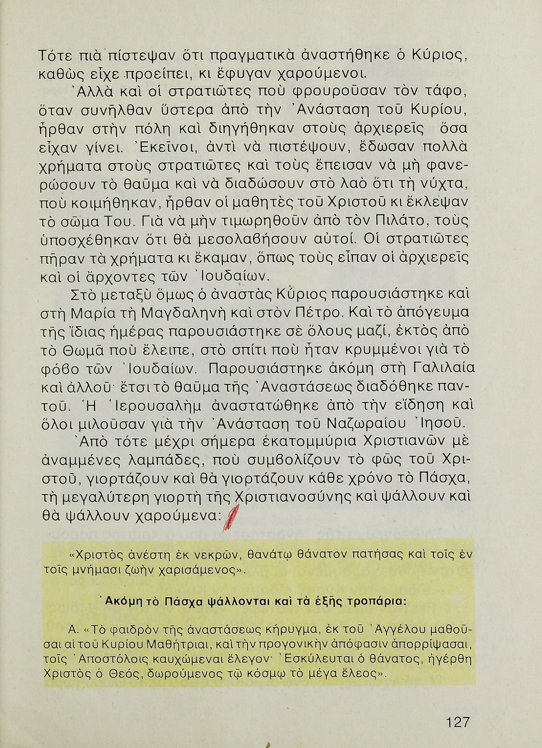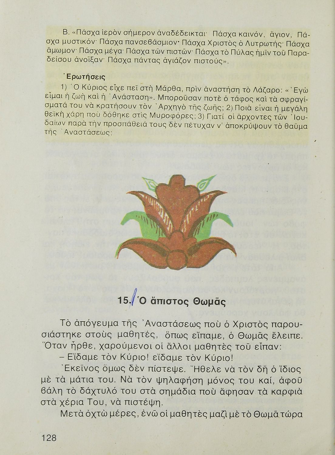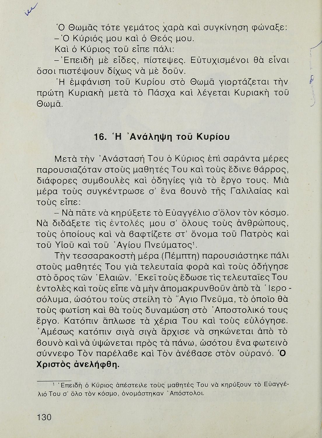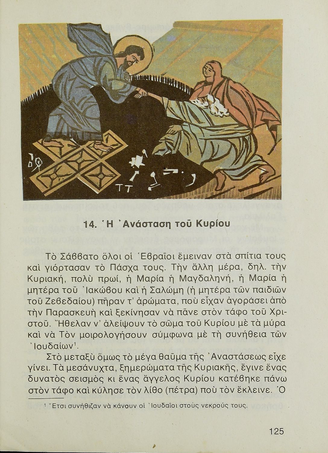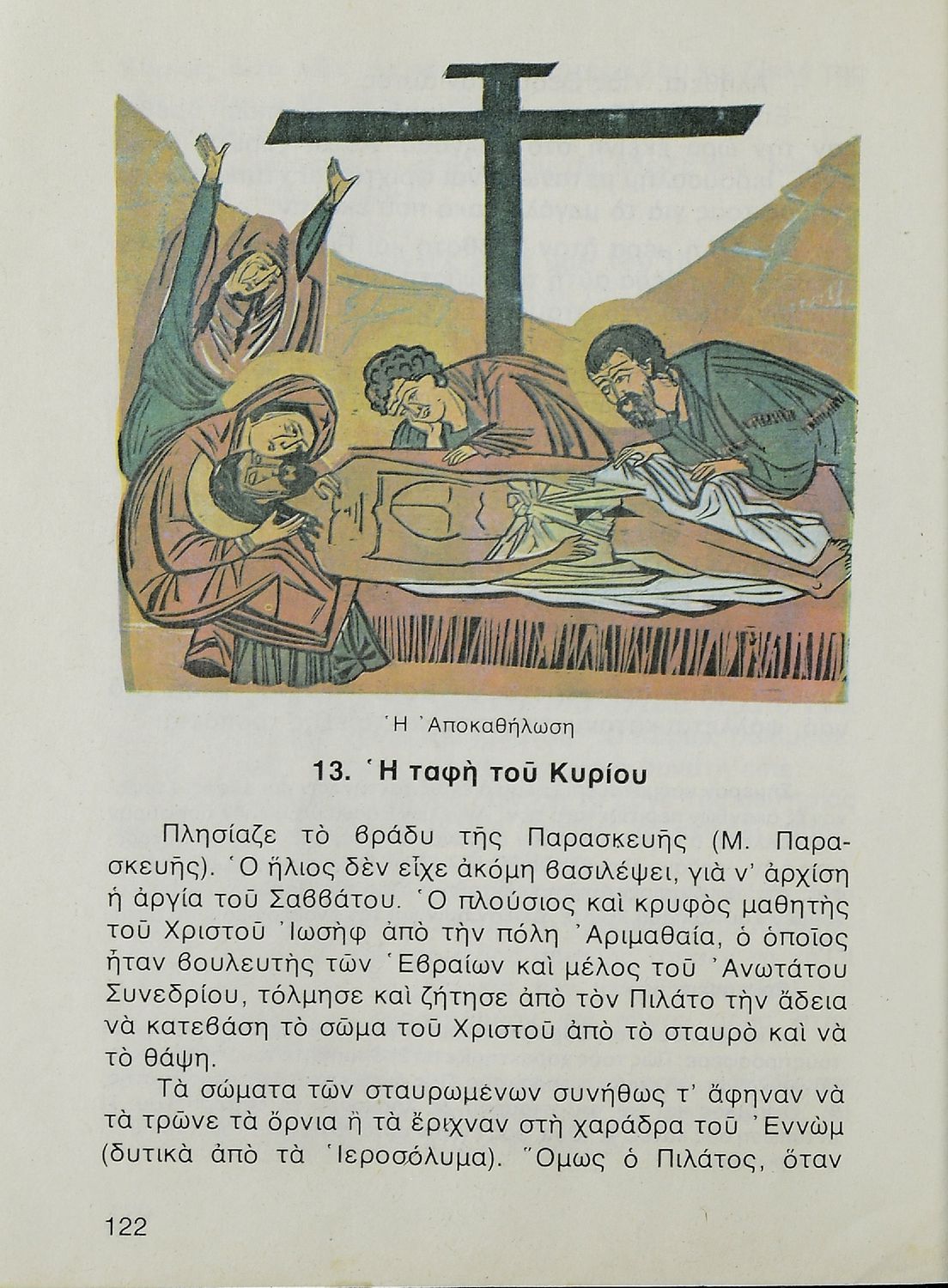 Σχολικό εγχειρίδιο Θρησκευτικών Δ΄ Δημοτικού που αποτελεί μια εξιστόρηση της Καινής Διαθήκης από τη γέννηση της Θεοτόκου μέχρι την ανάληψη του Χριστού. Περιέχει προσευχές και στοιχεία γεωγραφίας της Παλαιστίνης.