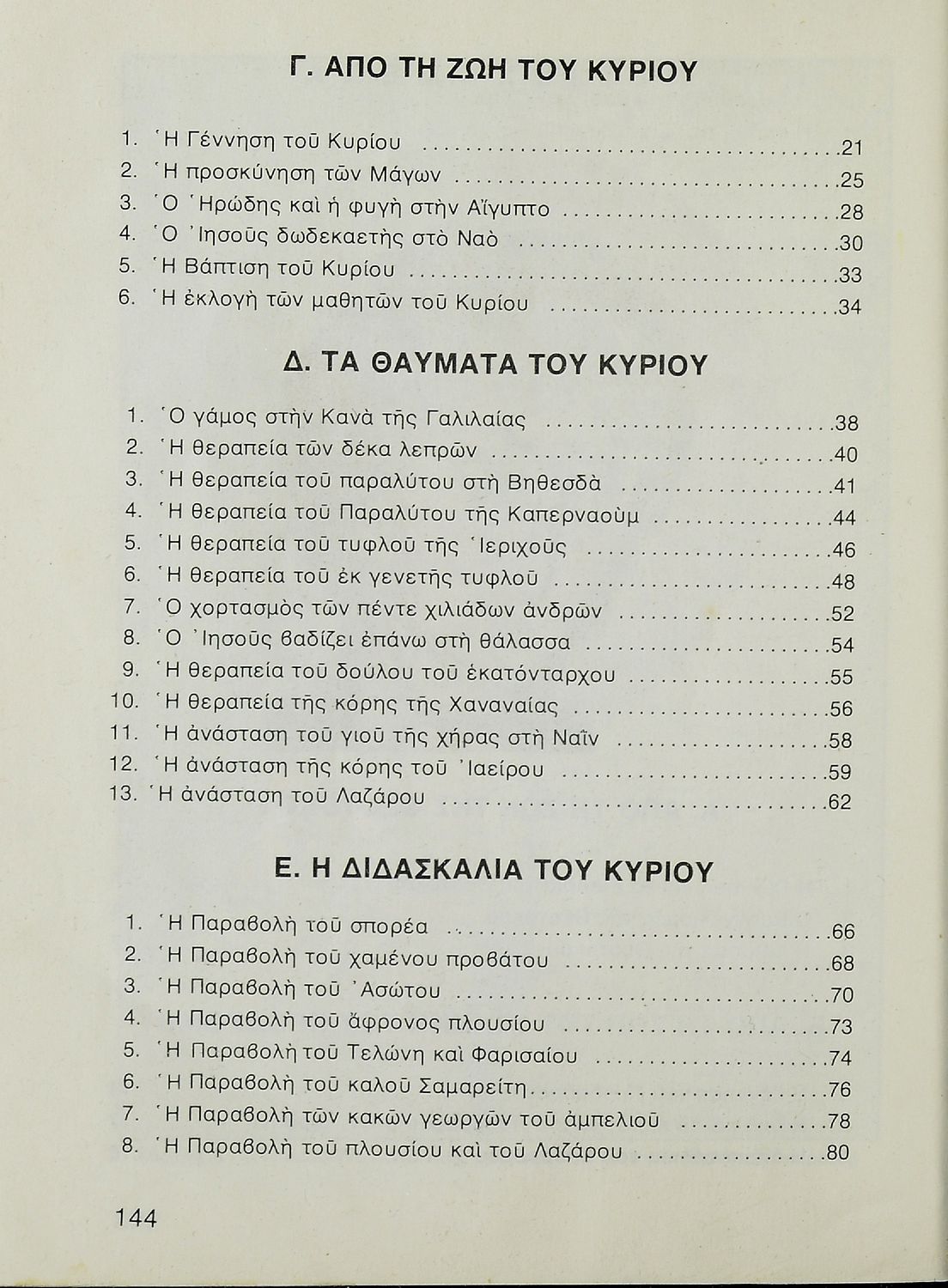 Σχολικό εγχειρίδιο Θρησκευτικών Δ΄ Δημοτικού που αποτελεί μια εξιστόρηση της Καινής Διαθήκης από τη γέννηση της Θεοτόκου μέχρι την ανάληψη του Χριστού. Περιέχει προσευχές και στοιχεία γεωγραφίας της Παλαιστίνης.